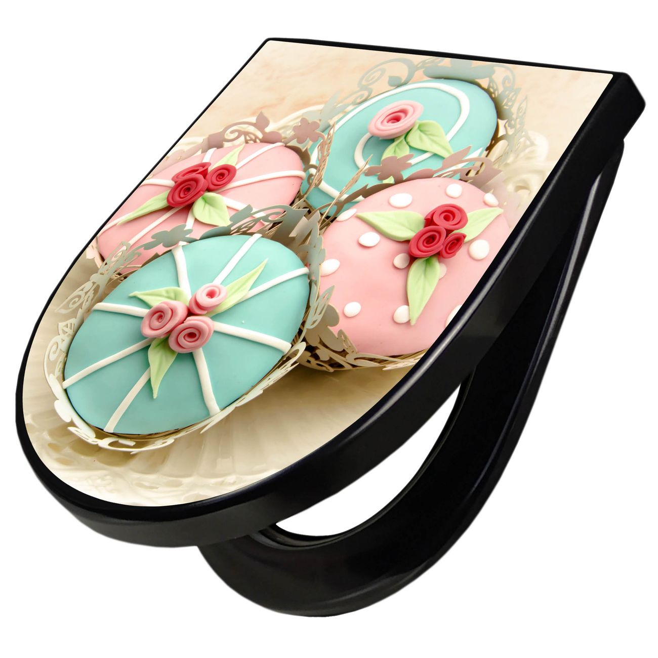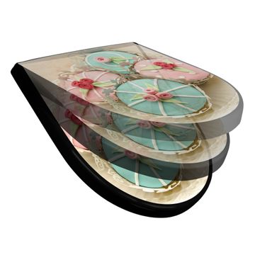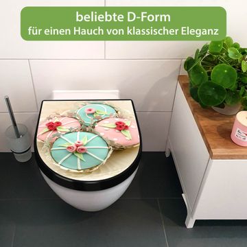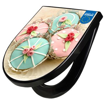 WC Sitz D-Form Schwarz mit Absenkautomatik Motiv Cupcakes