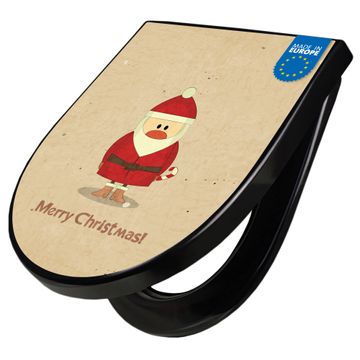 WC Sitz D-Form Schwarz mit Absenkautomatik Motiv Cute Claus