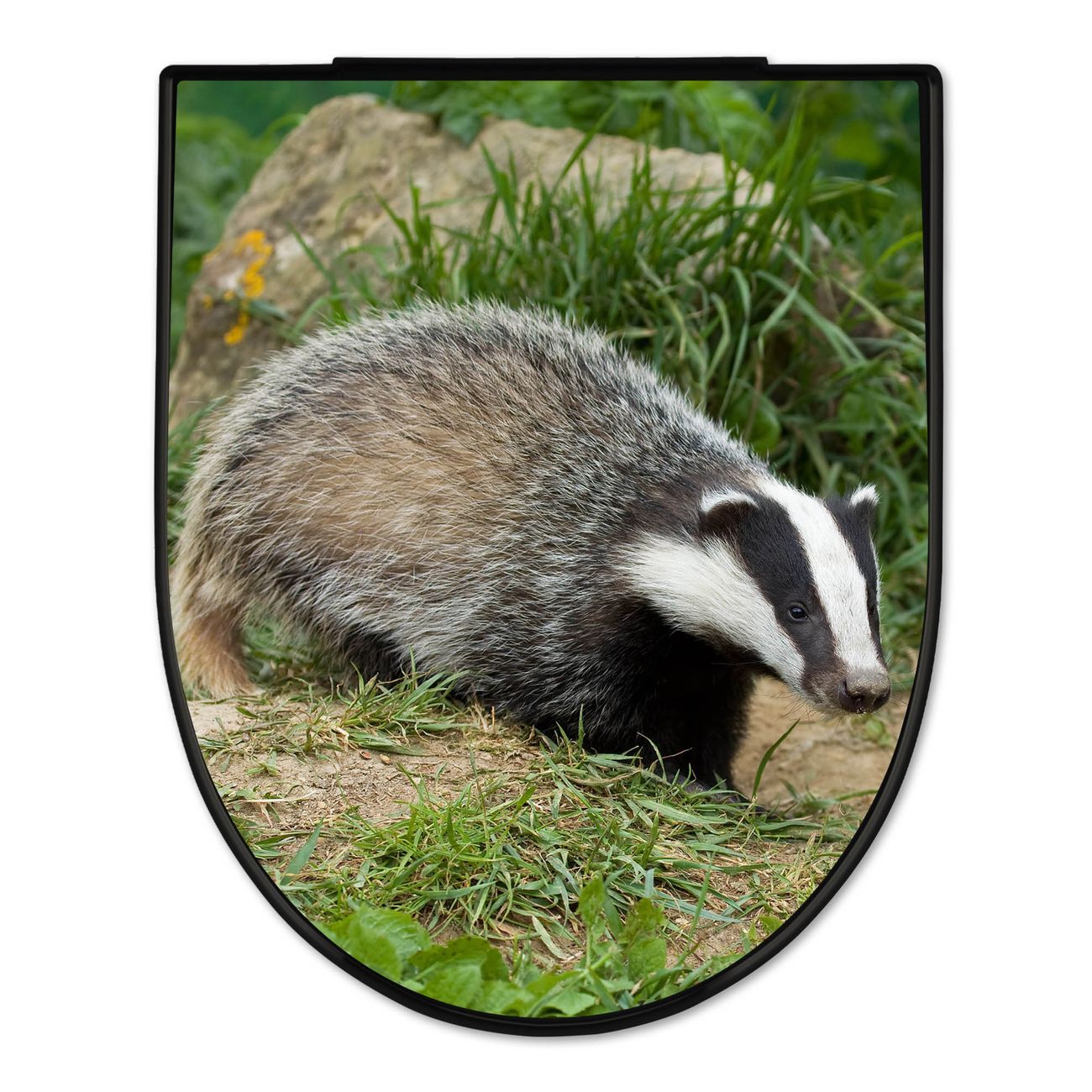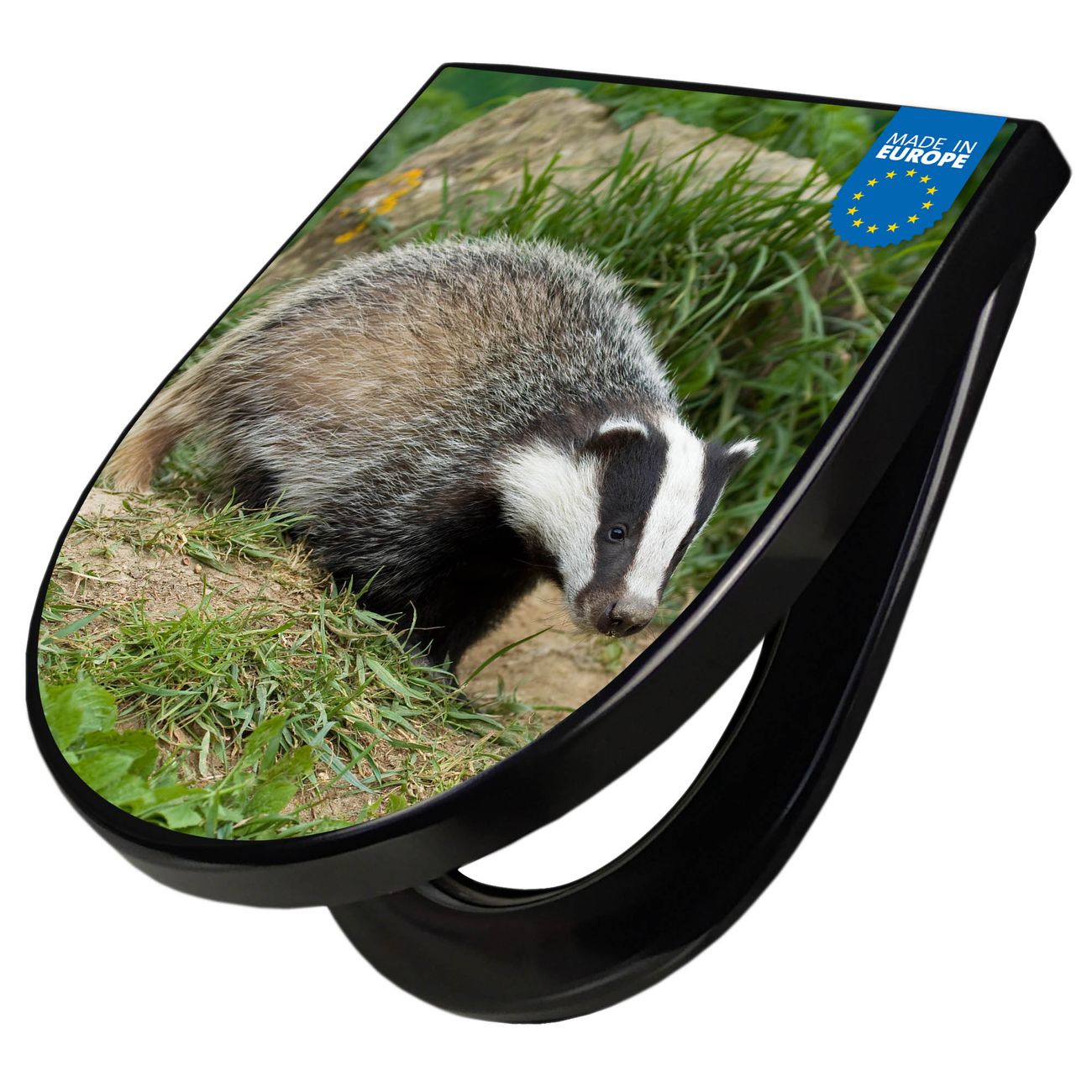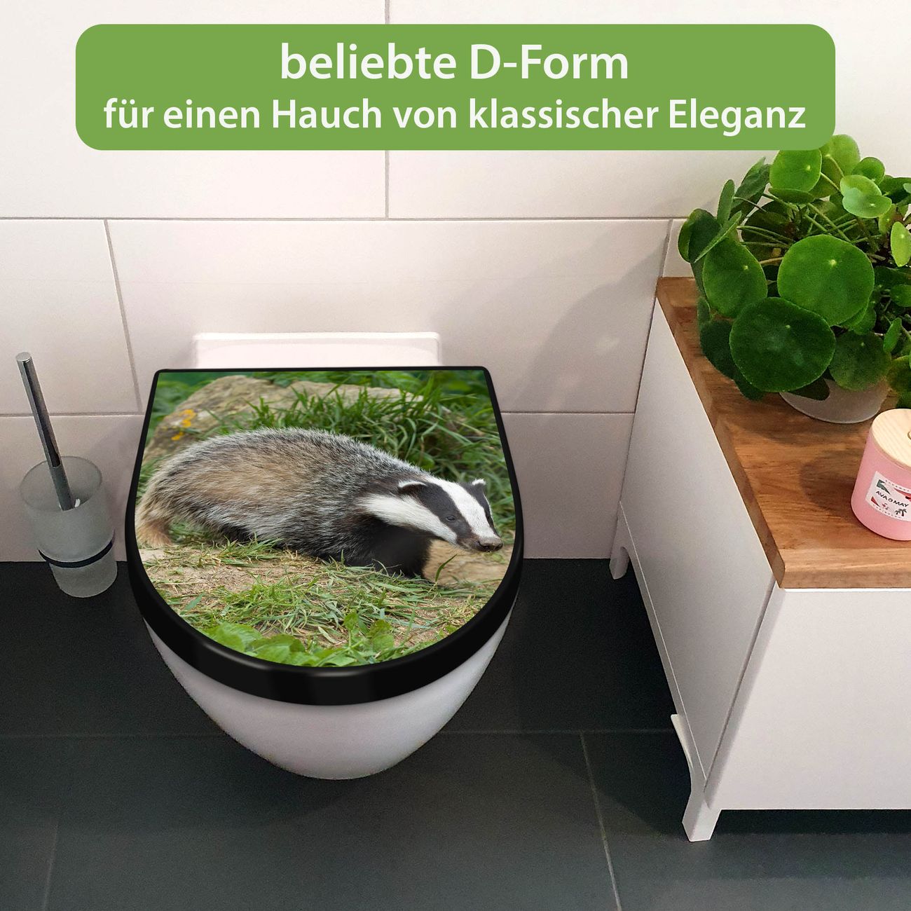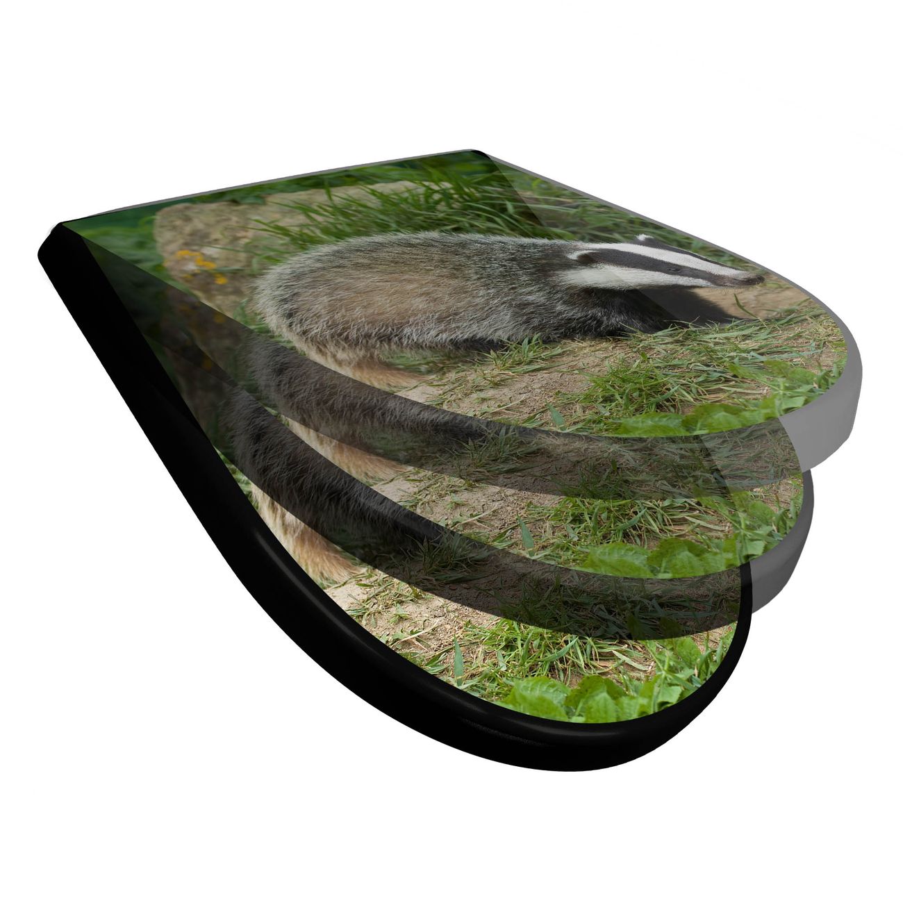 WC Sitz D-Form Schwarz mit Absenkautomatik Motiv Dachs
