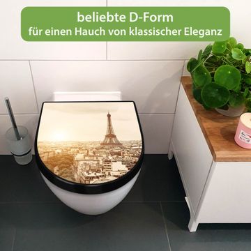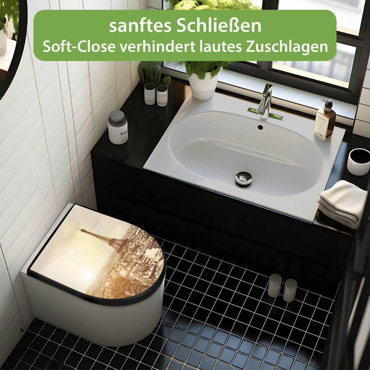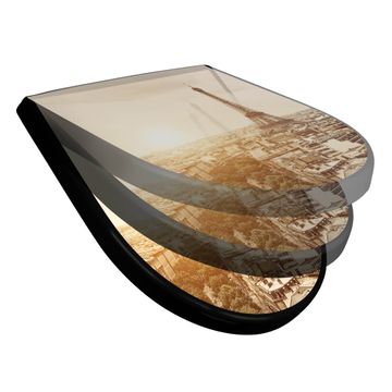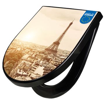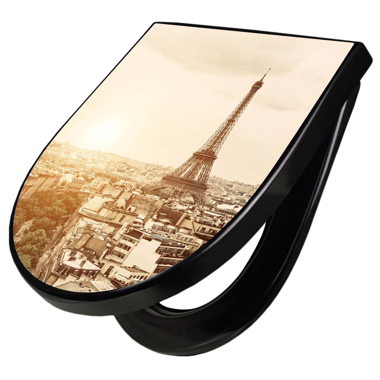 WC Sitz D-Form Schwarz mit Absenkautomatik Motiv Dächer Von Paris