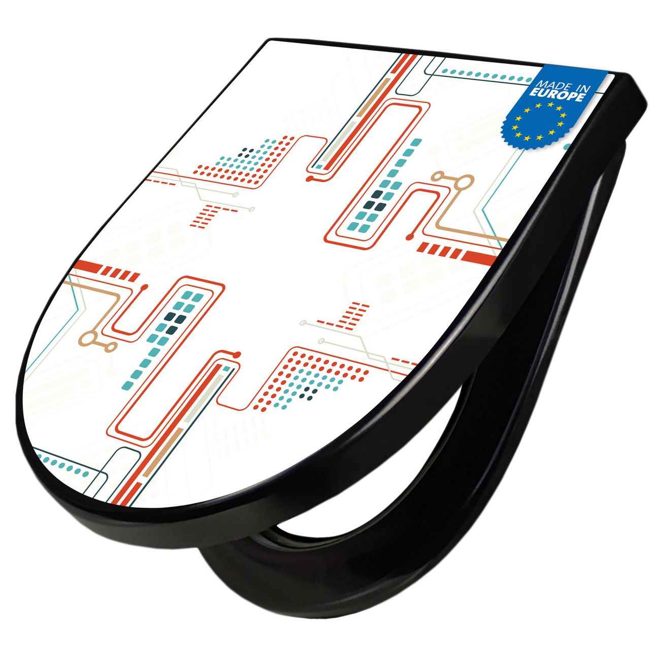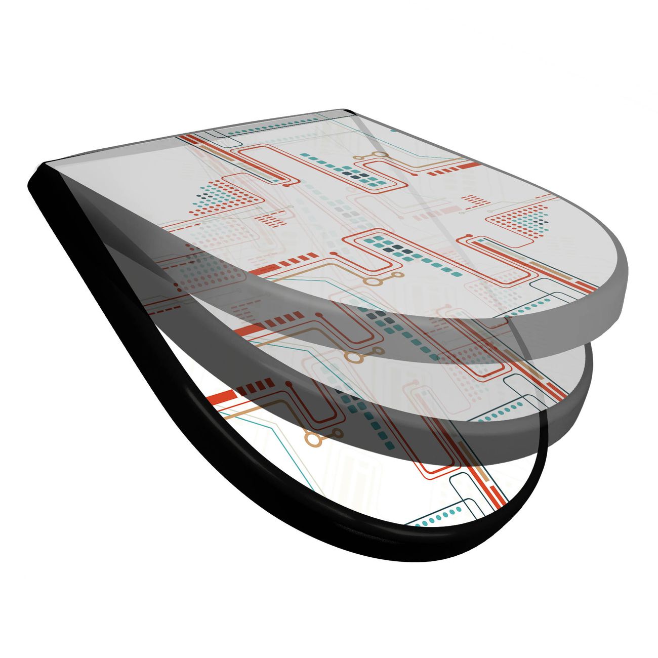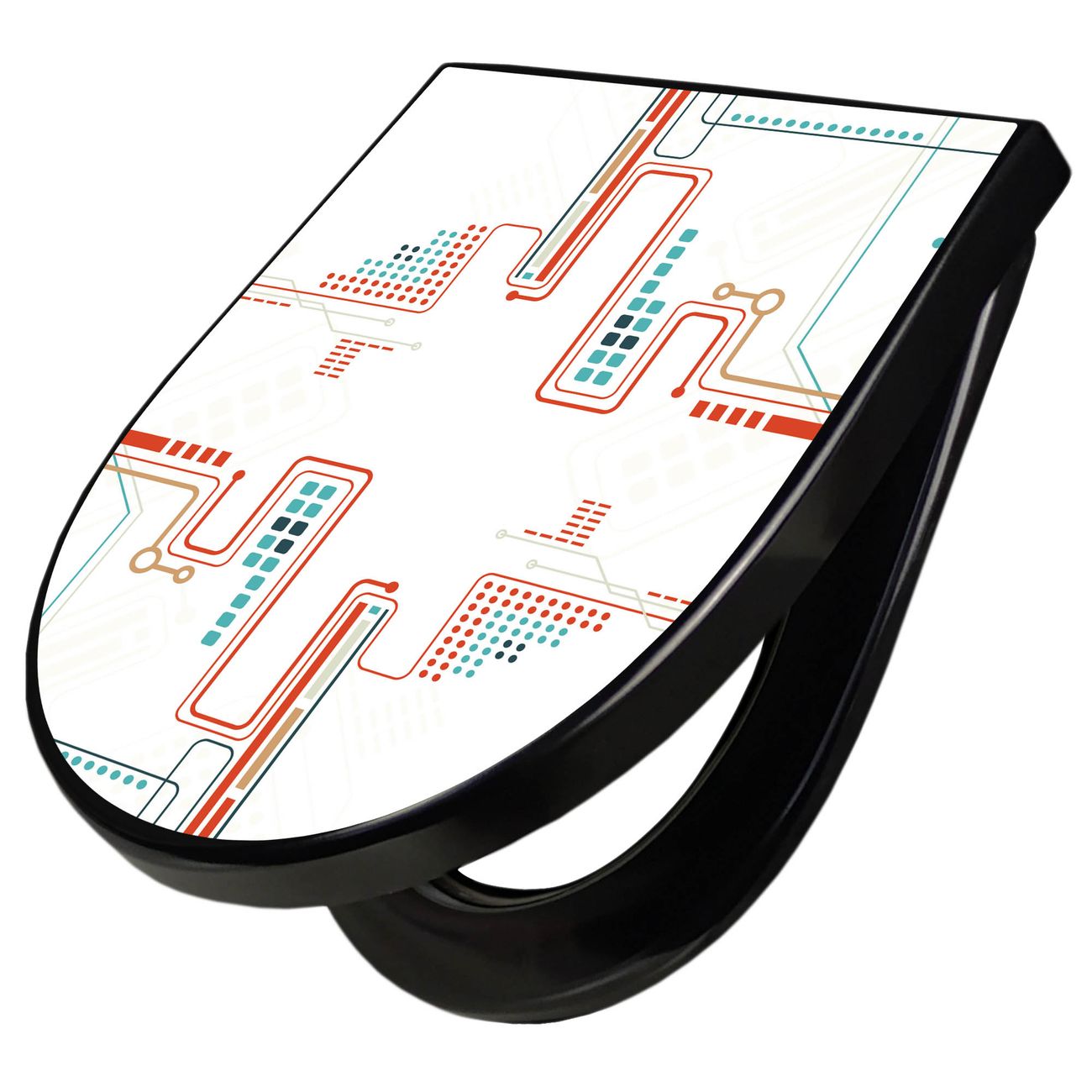 WC Sitz D-Form Schwarz mit Absenkautomatik Motiv Digitales Netzwerk 2