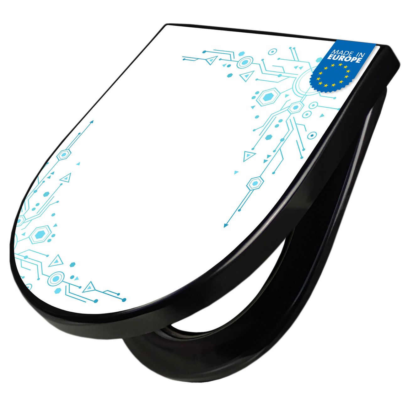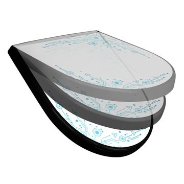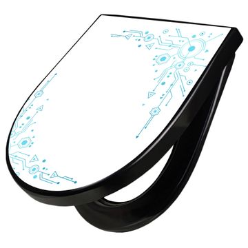 WC Sitz D-Form Schwarz mit Absenkautomatik Motiv Digitales Netzwerk