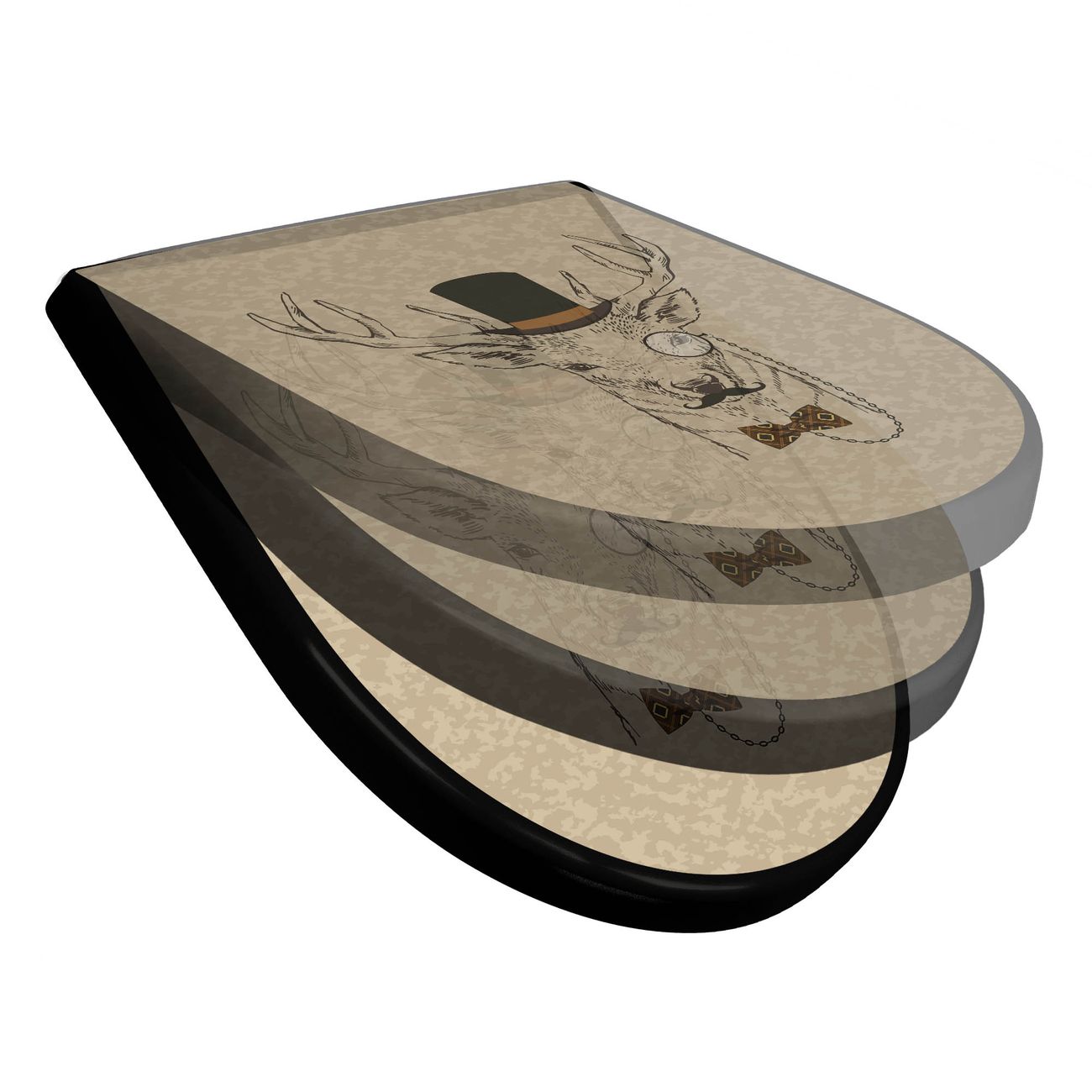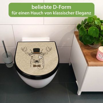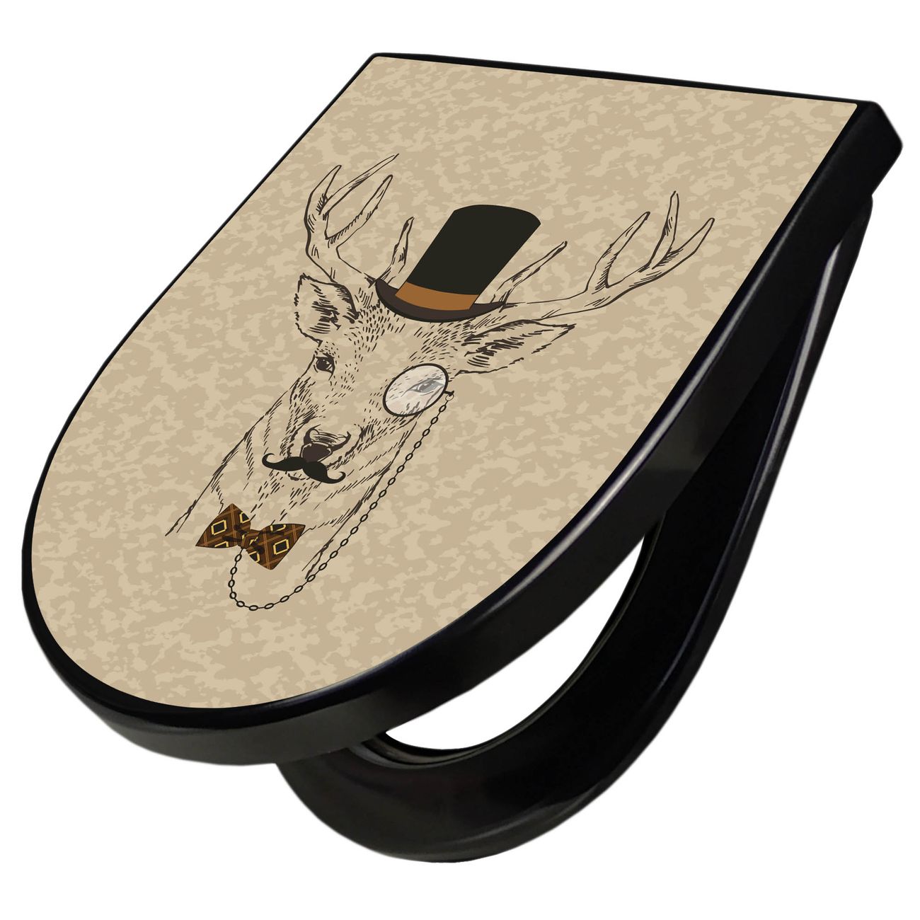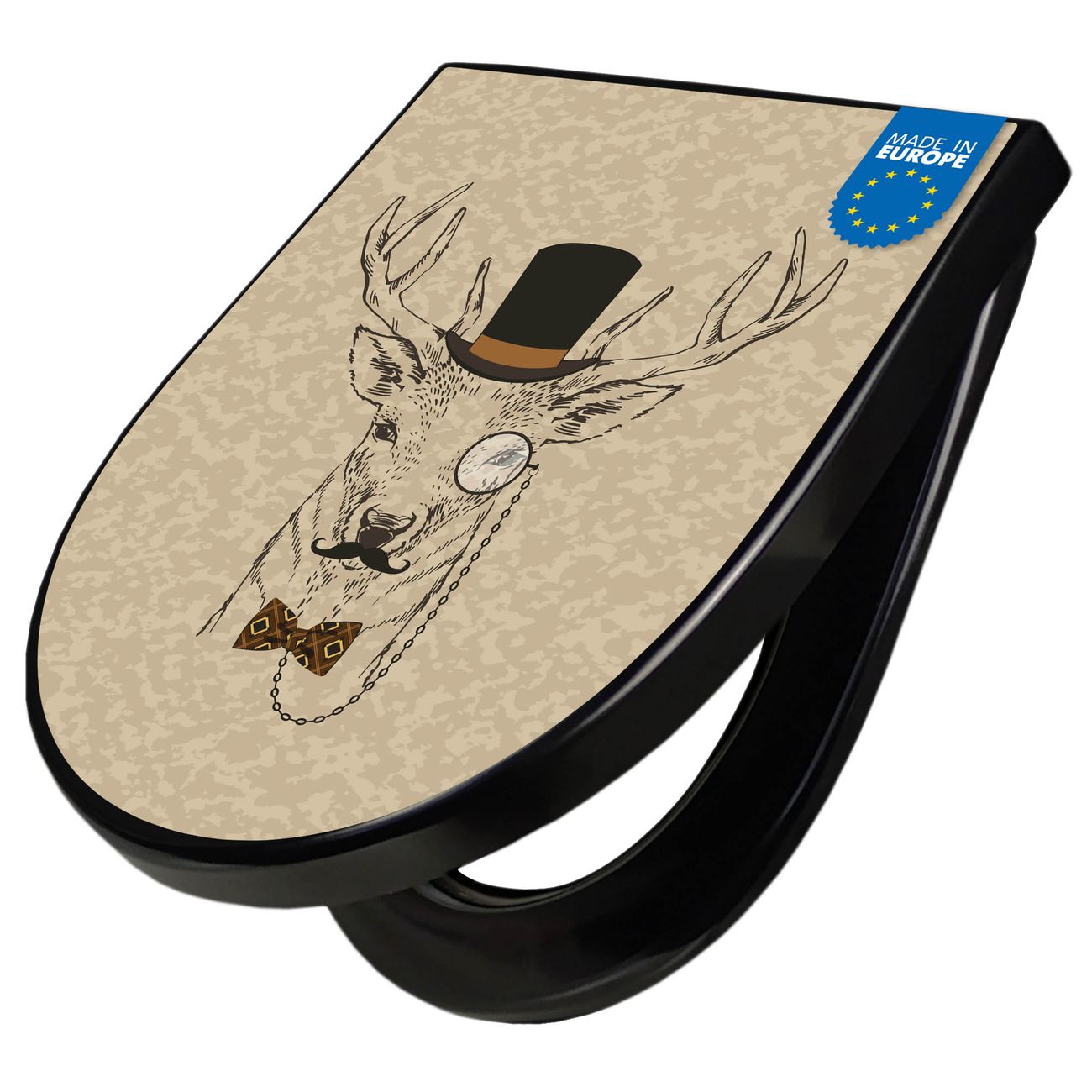 WC Sitz D-Form Schwarz mit Absenkautomatik Motiv Direktor Hirsch