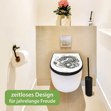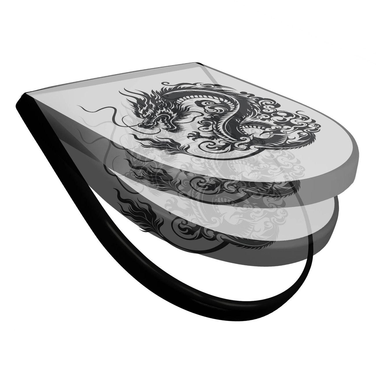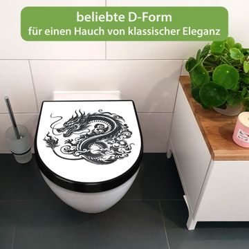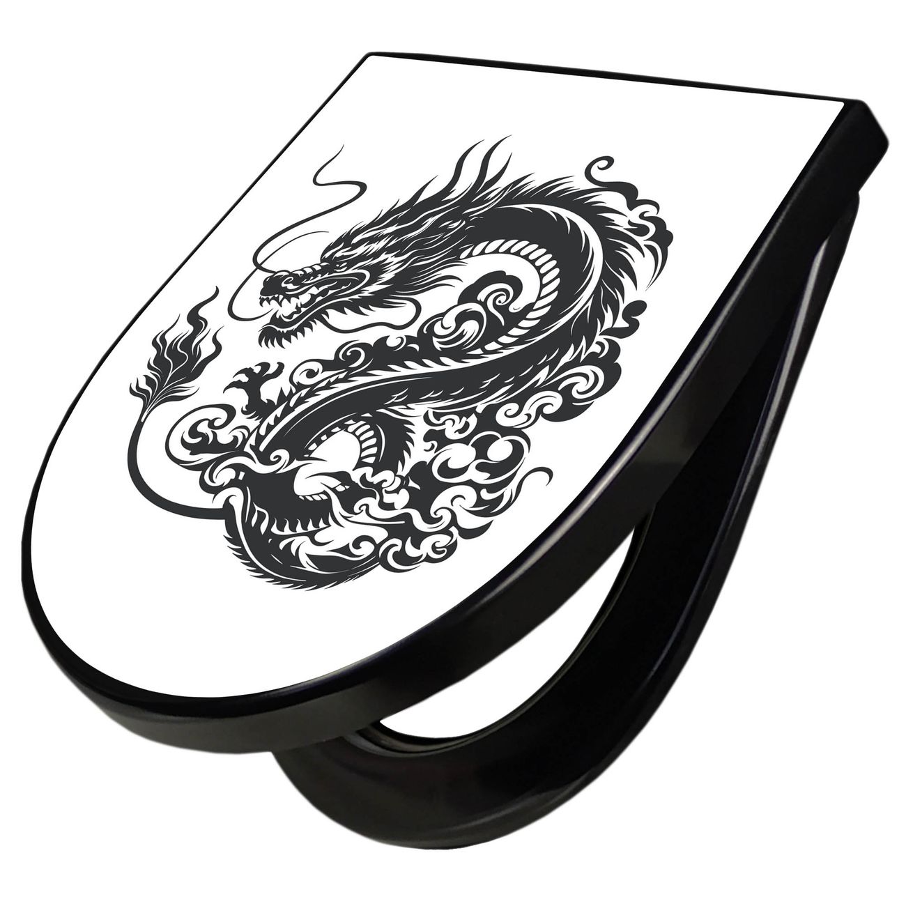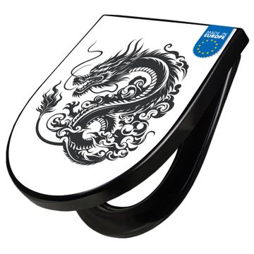 WC Sitz D-Form Schwarz mit Absenkautomatik Motiv Drachen Silhouette