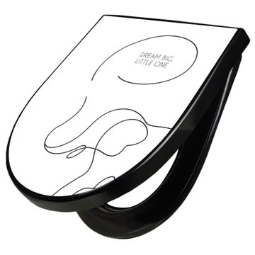 WC Sitz D-Form Schwarz mit Absenkautomatik Motiv Dream big, little One