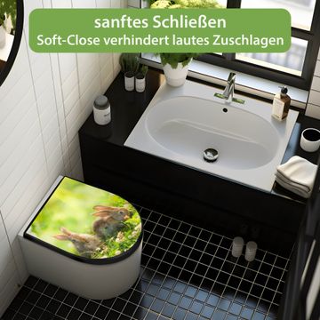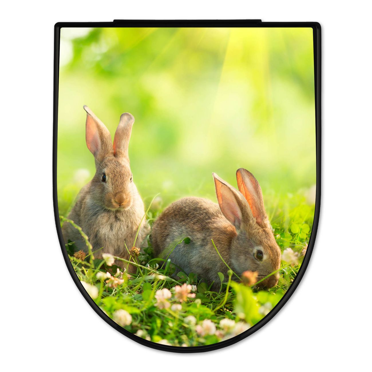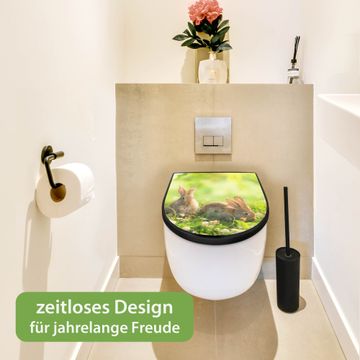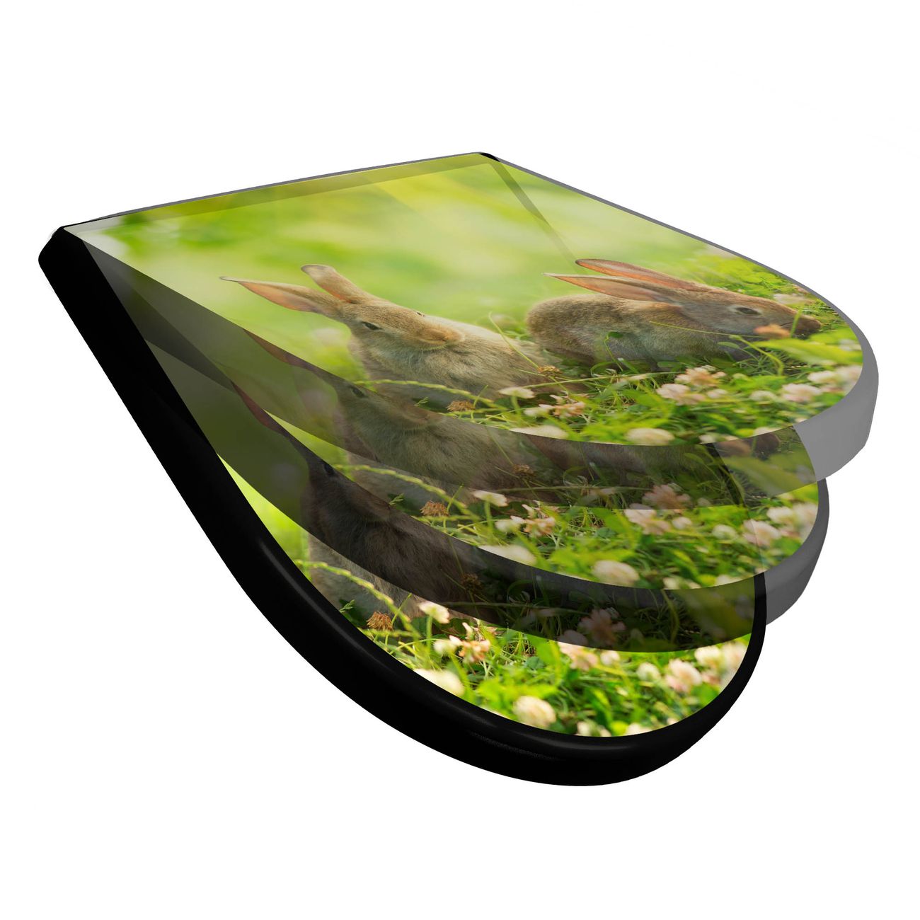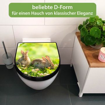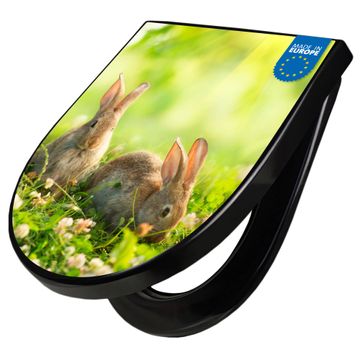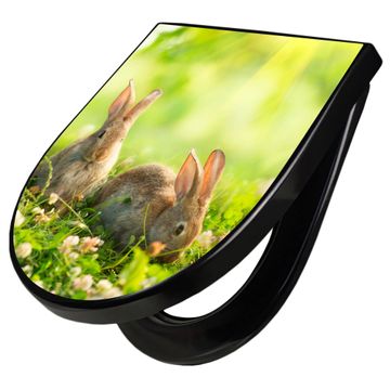 WC Sitz D-Form Schwarz mit Absenkautomatik Motiv Drei Hasen