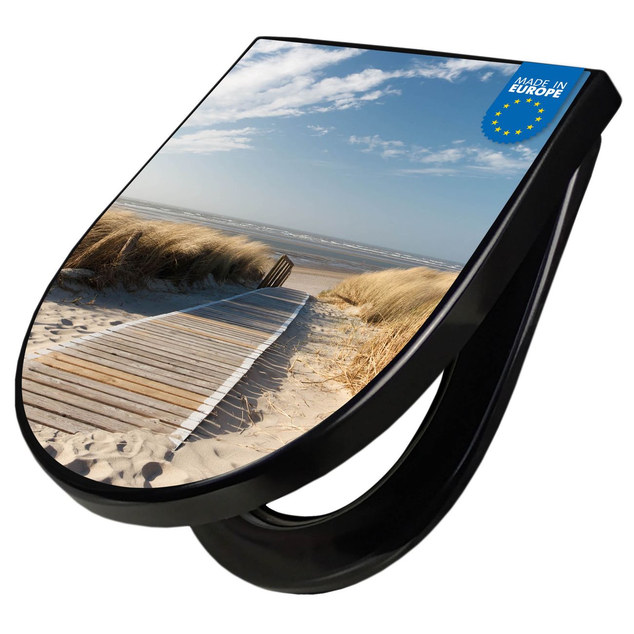 Der WC-Deckel wird in Europa gefertigt und im Herzen von Sachsen für Sie mit dem gewünschten Motiv veredelt. Die hierfür verwendete Folie ist lösungsmittelfrei und schutzlaminiert.