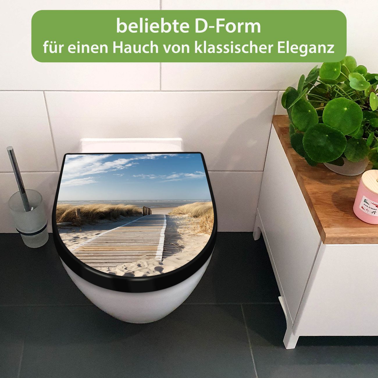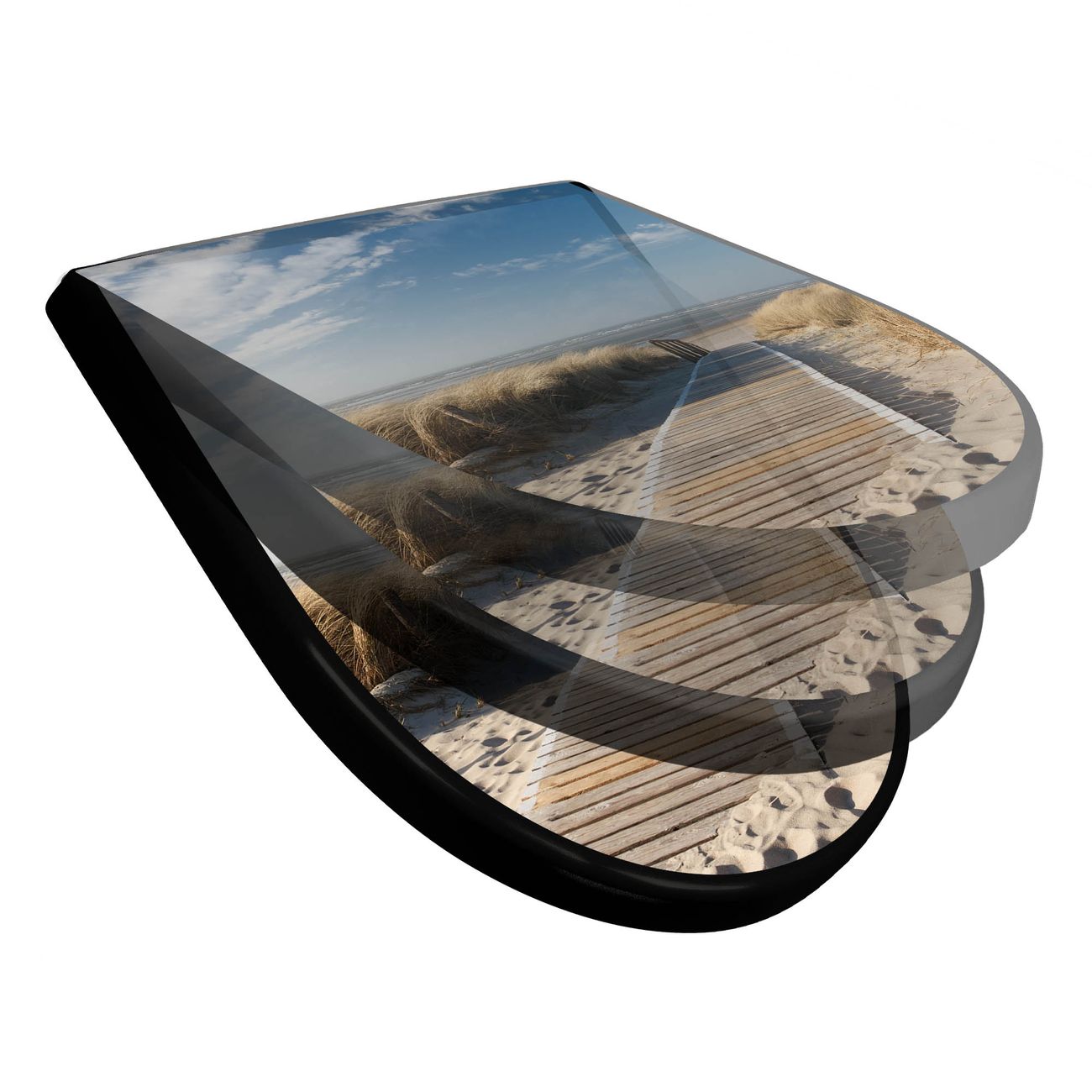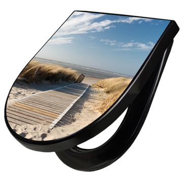 WC Sitz D-Form Schwarz mit Absenkautomatik Motiv Dünen