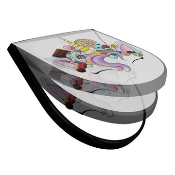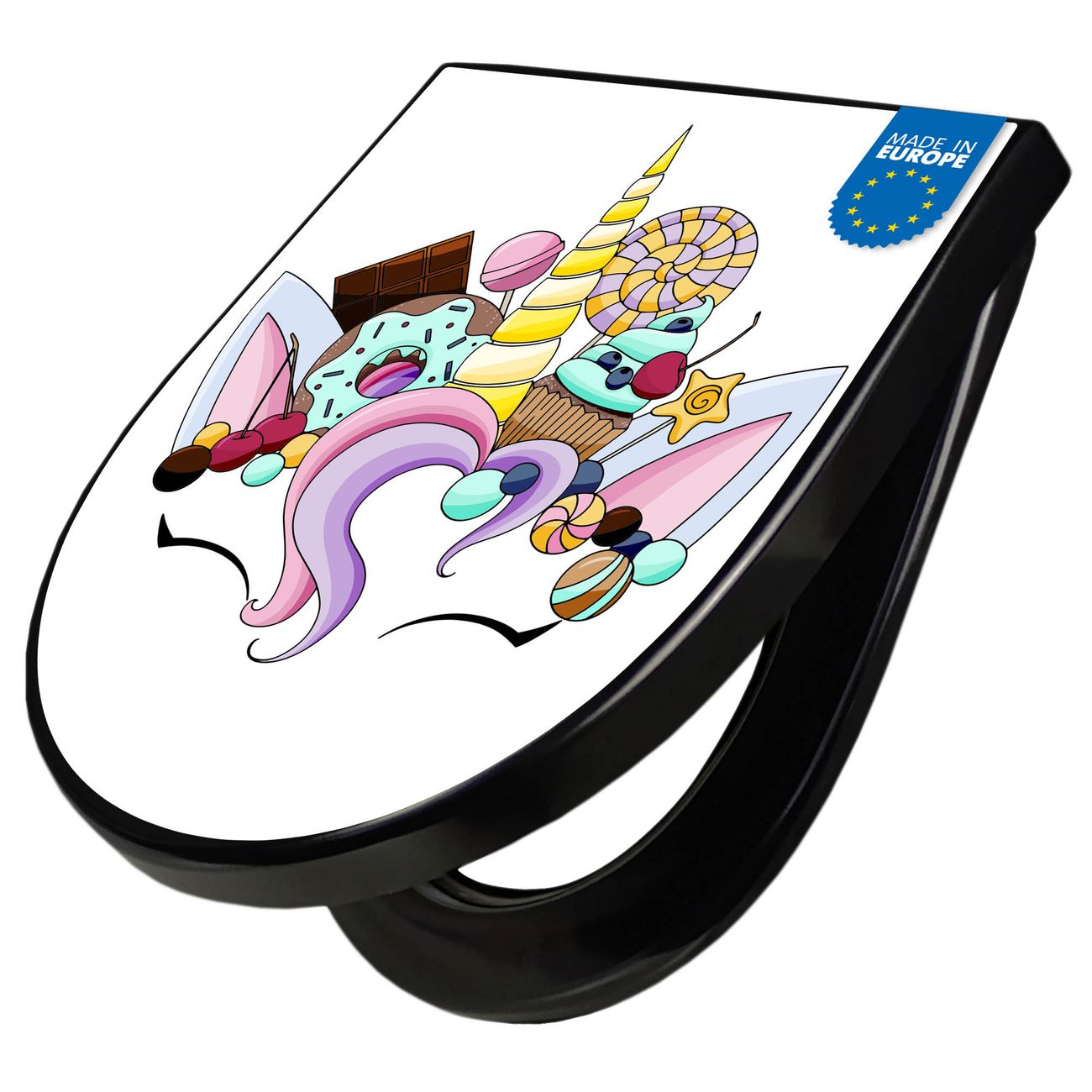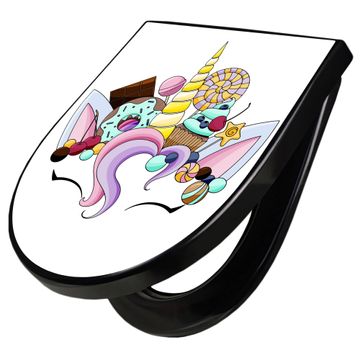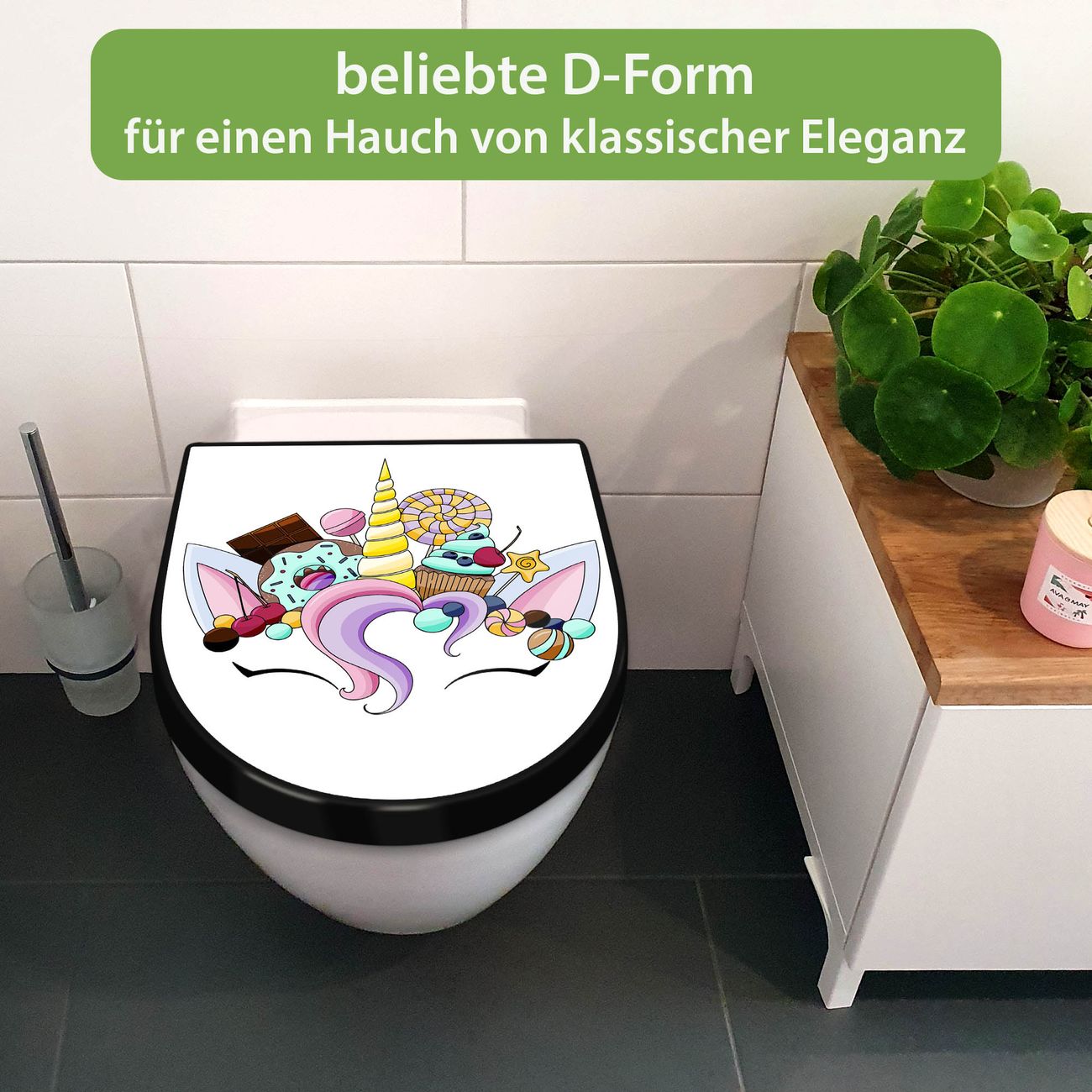 WC Sitz D-Form Schwarz mit Absenkautomatik Motiv Einhorn Maske