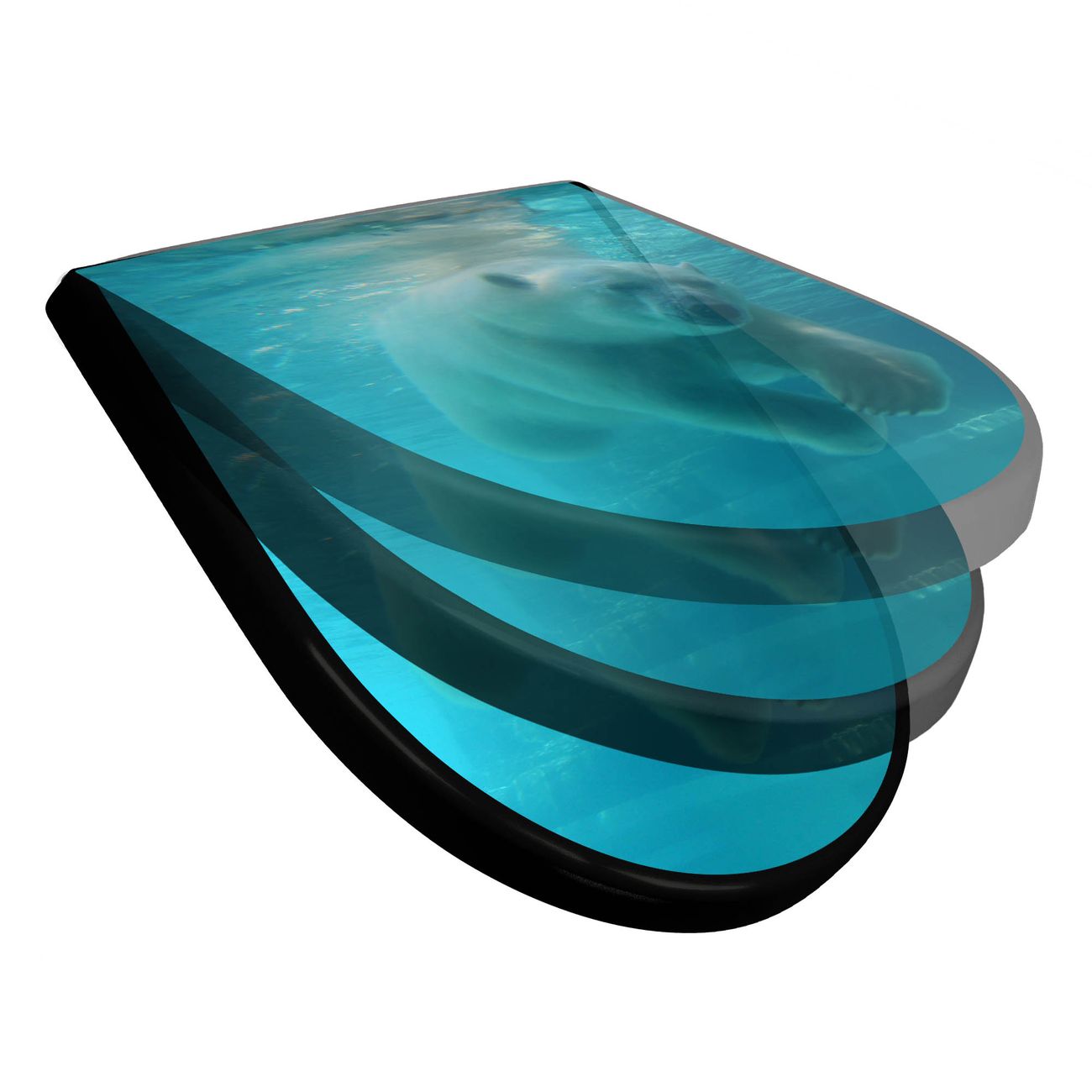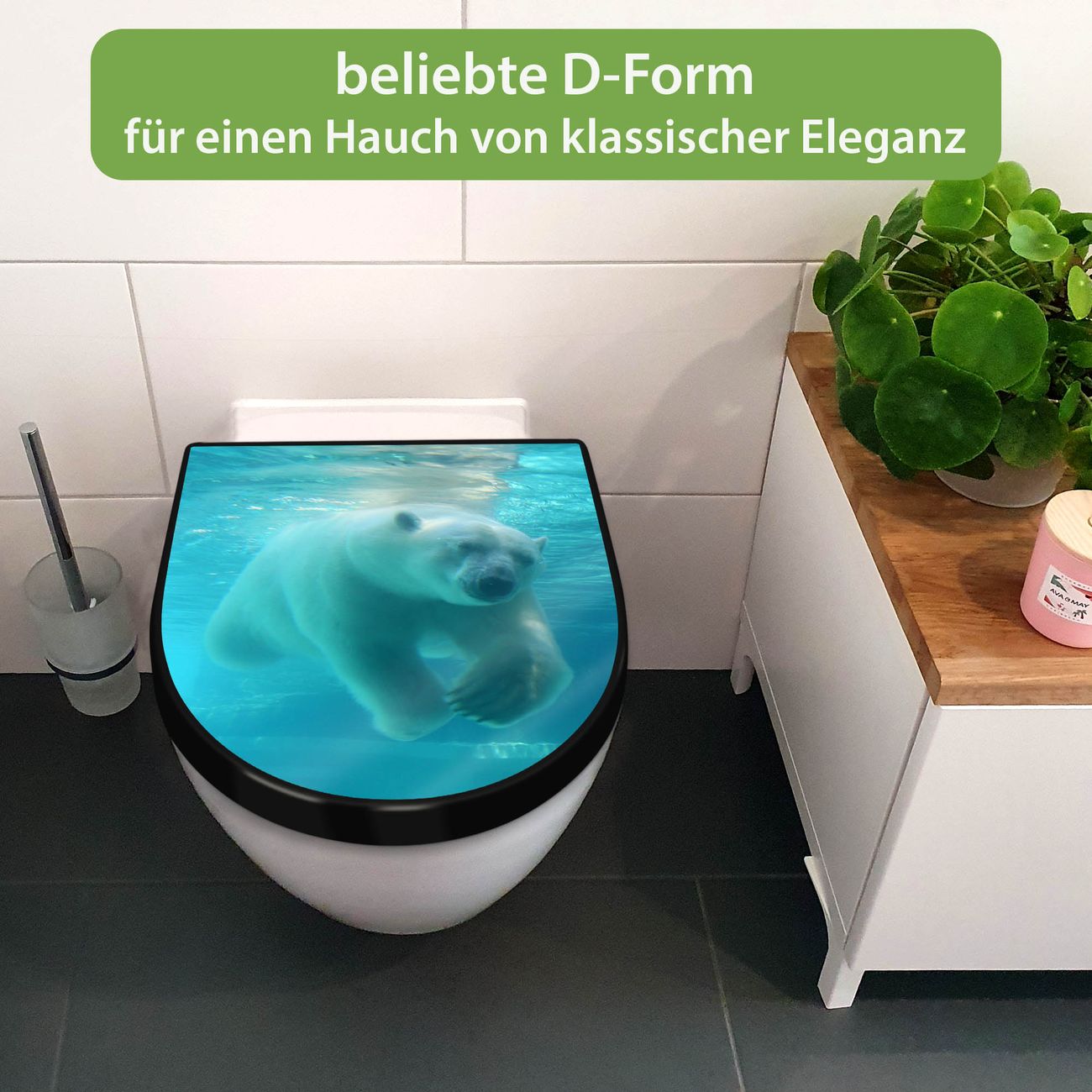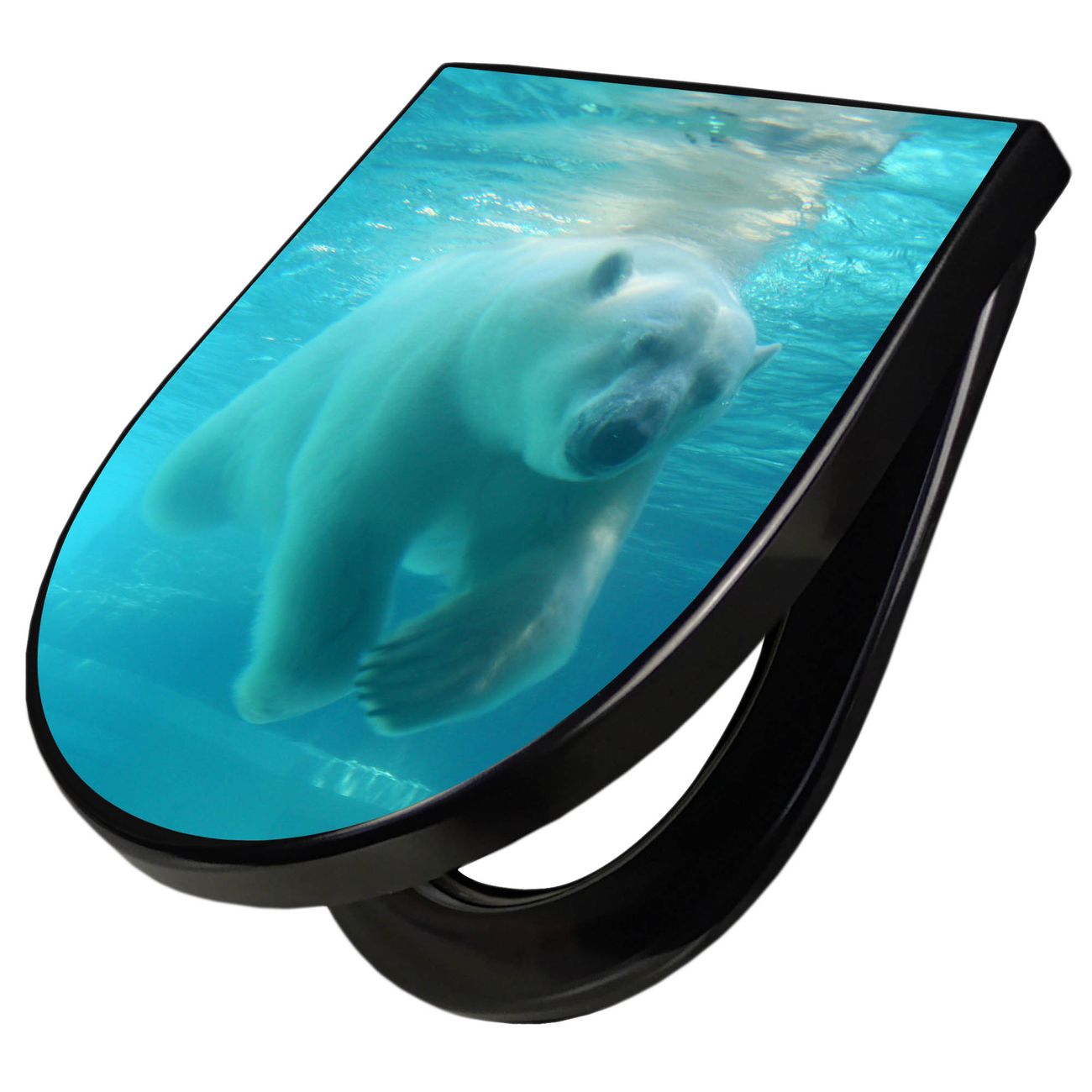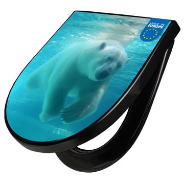 WC Sitz D-Form Schwarz mit Absenkautomatik Motiv Eisbär unter Wasser