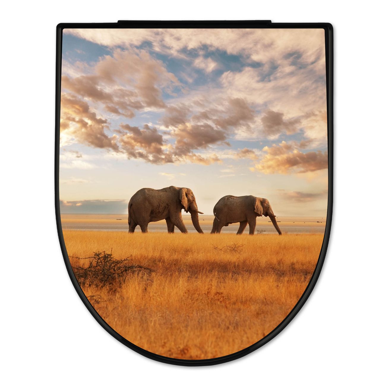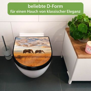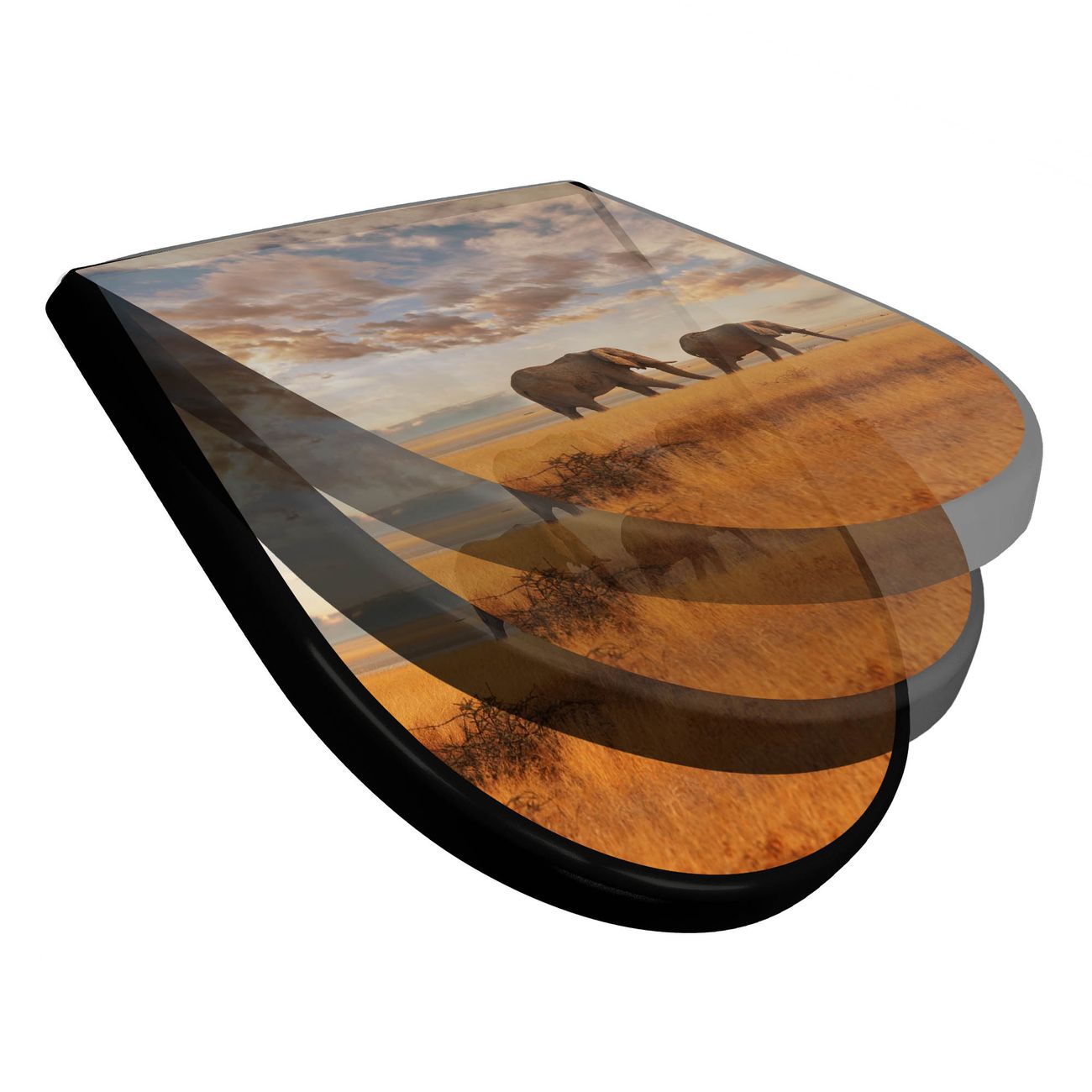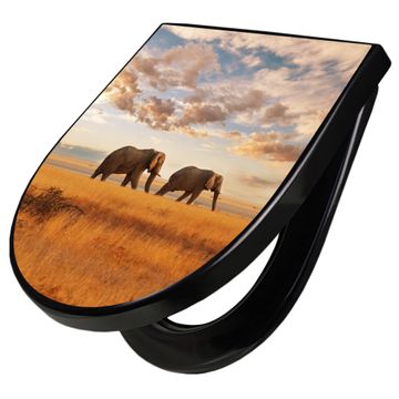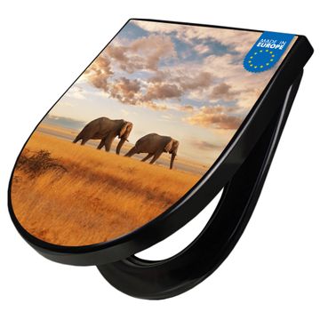 WC Sitz D-Form Schwarz mit Absenkautomatik Motiv Elefanten
