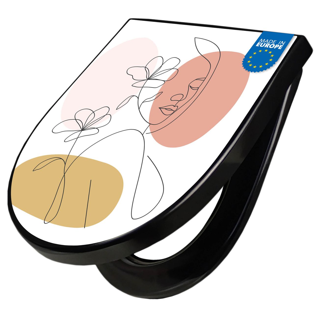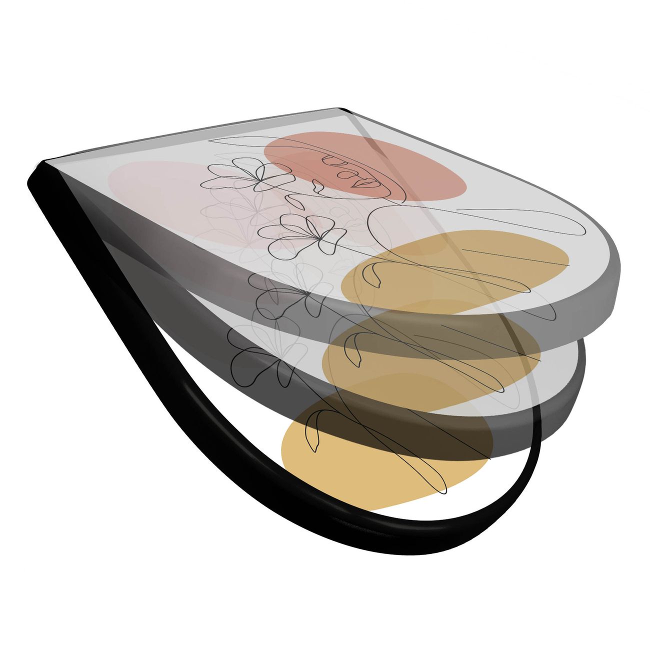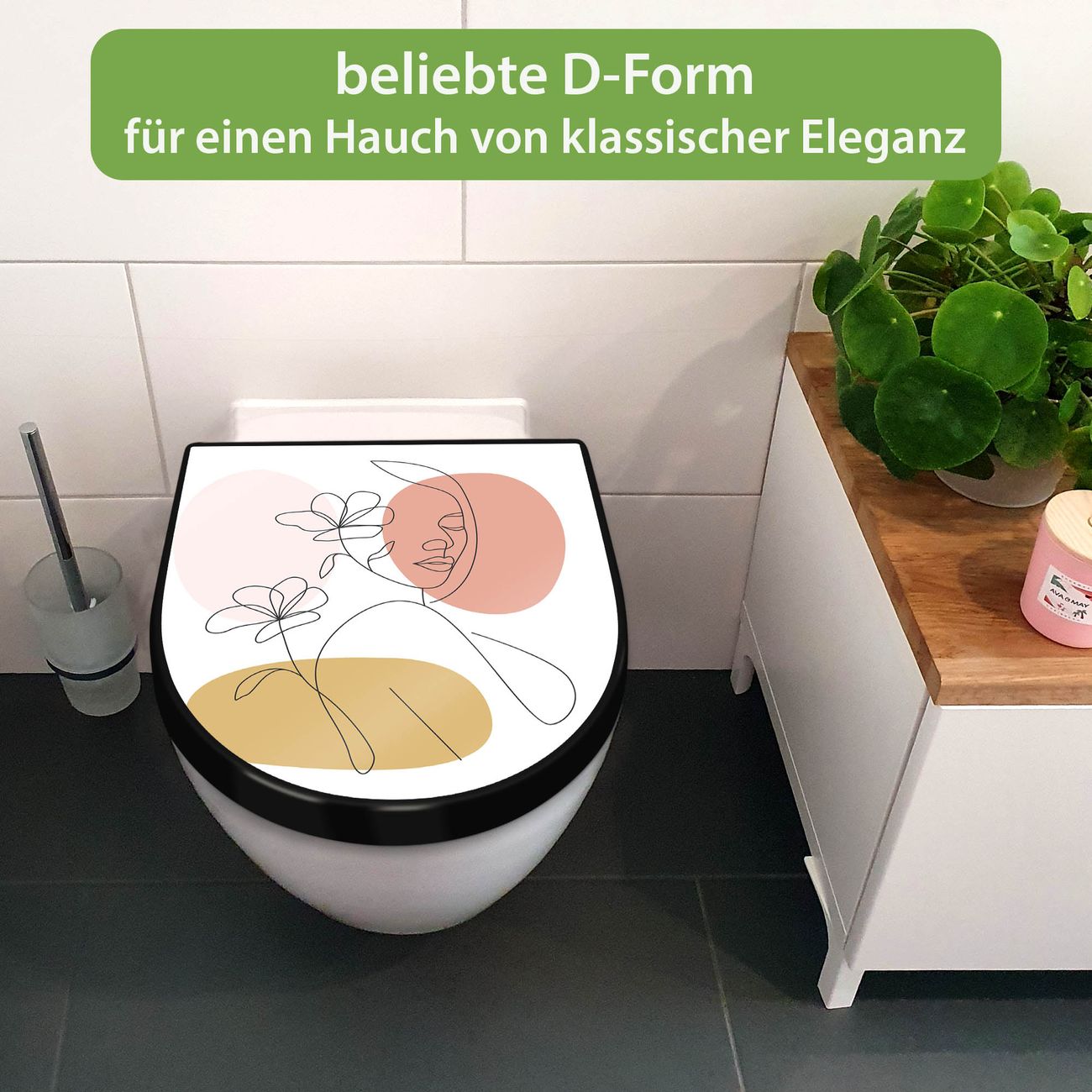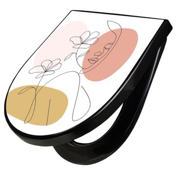 WC Sitz D-Form Schwarz mit Absenkautomatik Motiv Elegante Weibliche Lineart