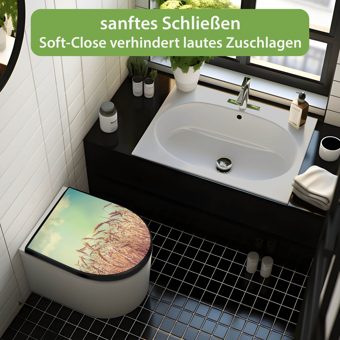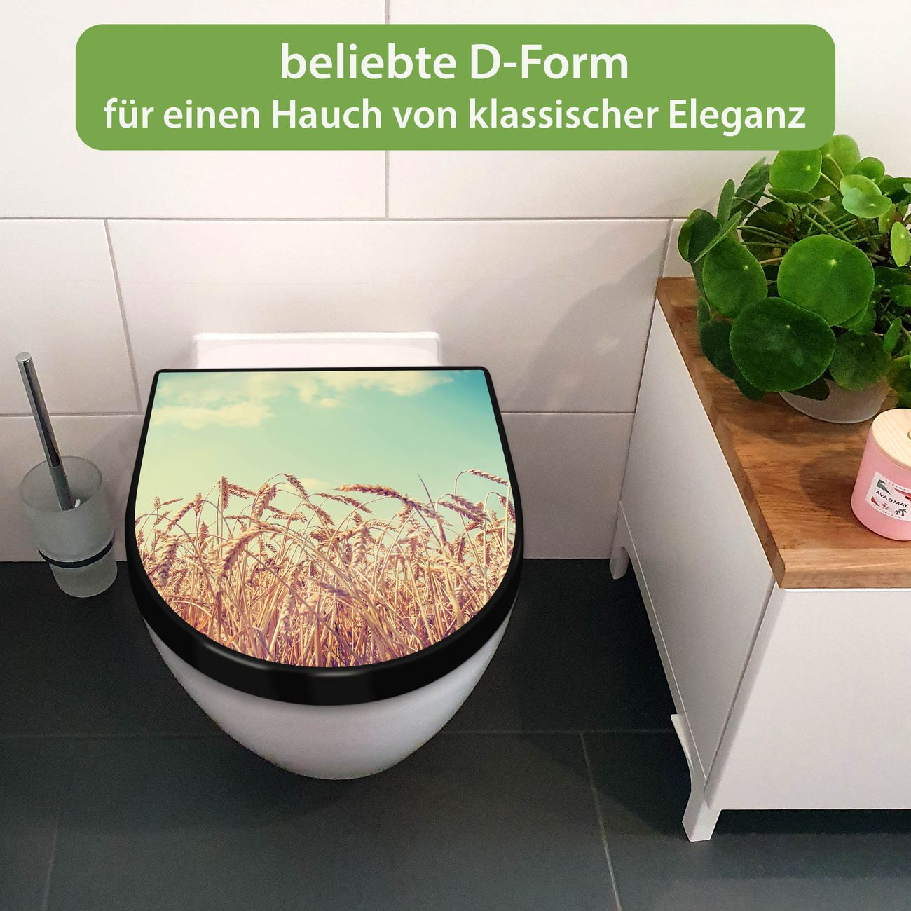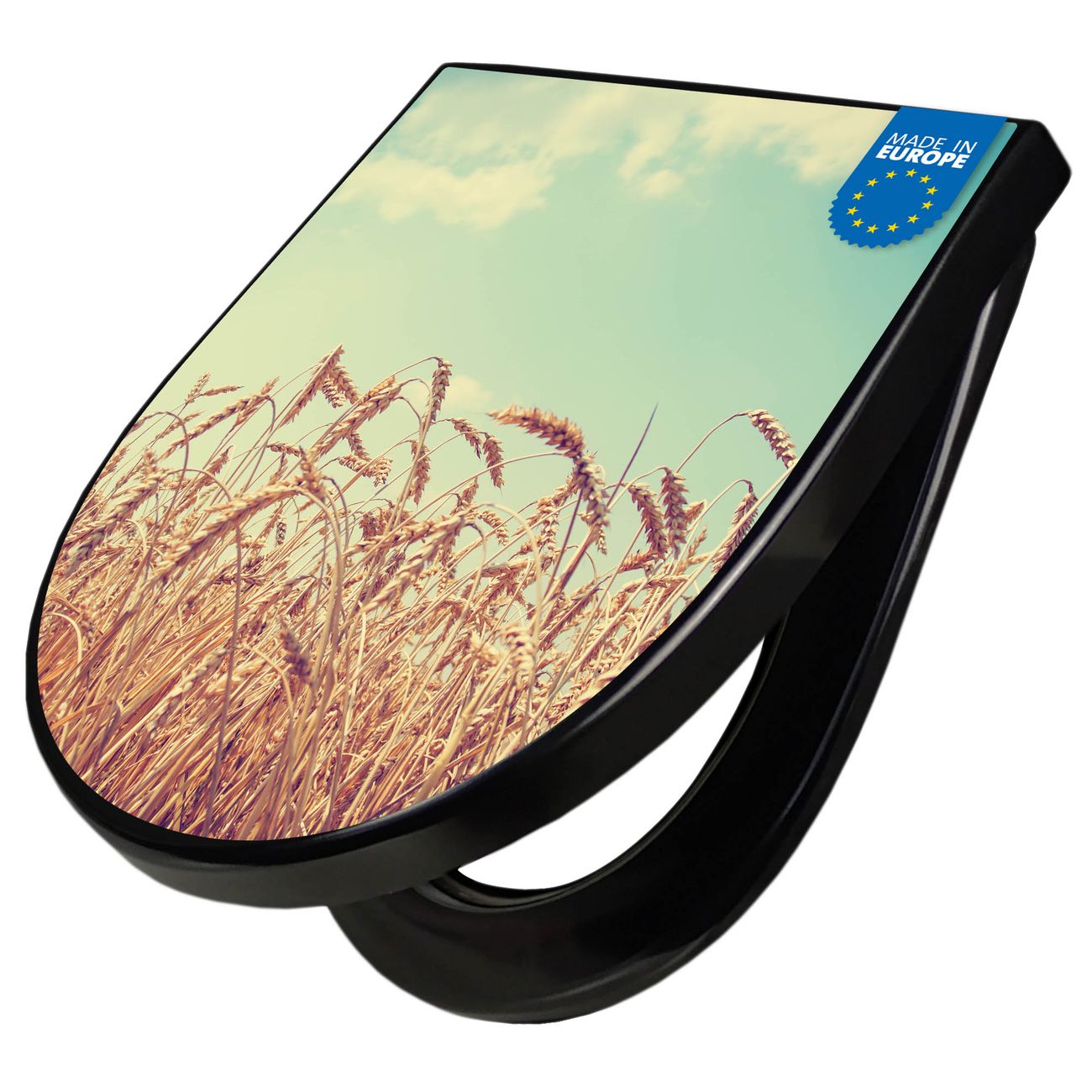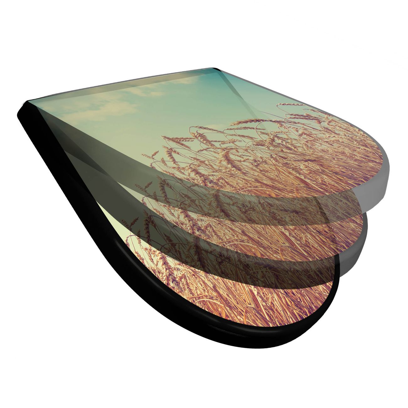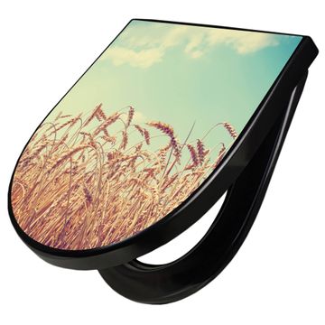 WC Sitz D-Form Schwarz mit Absenkautomatik Motiv Erntezeit