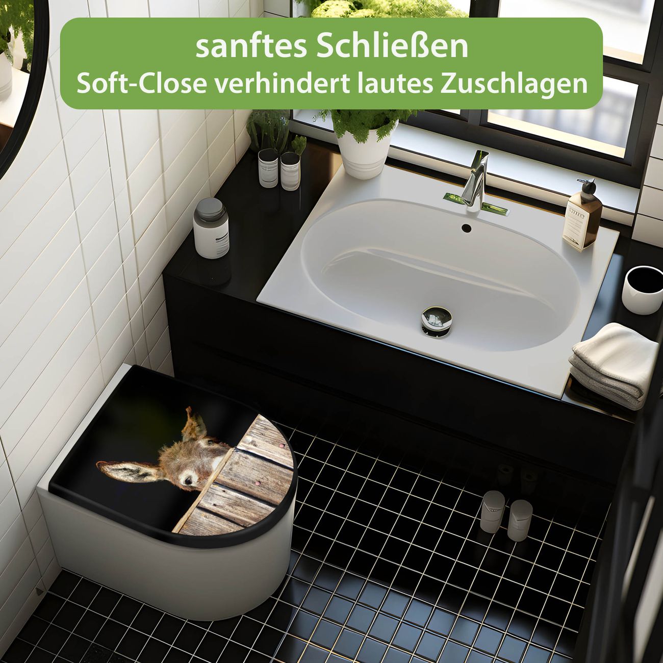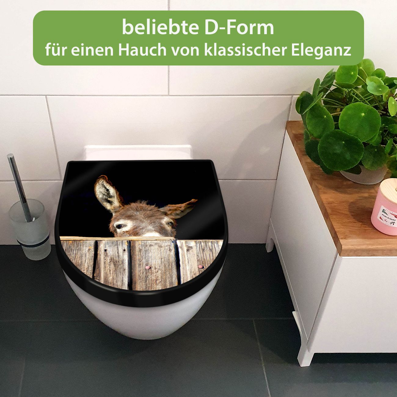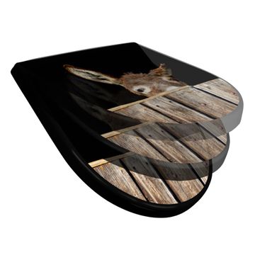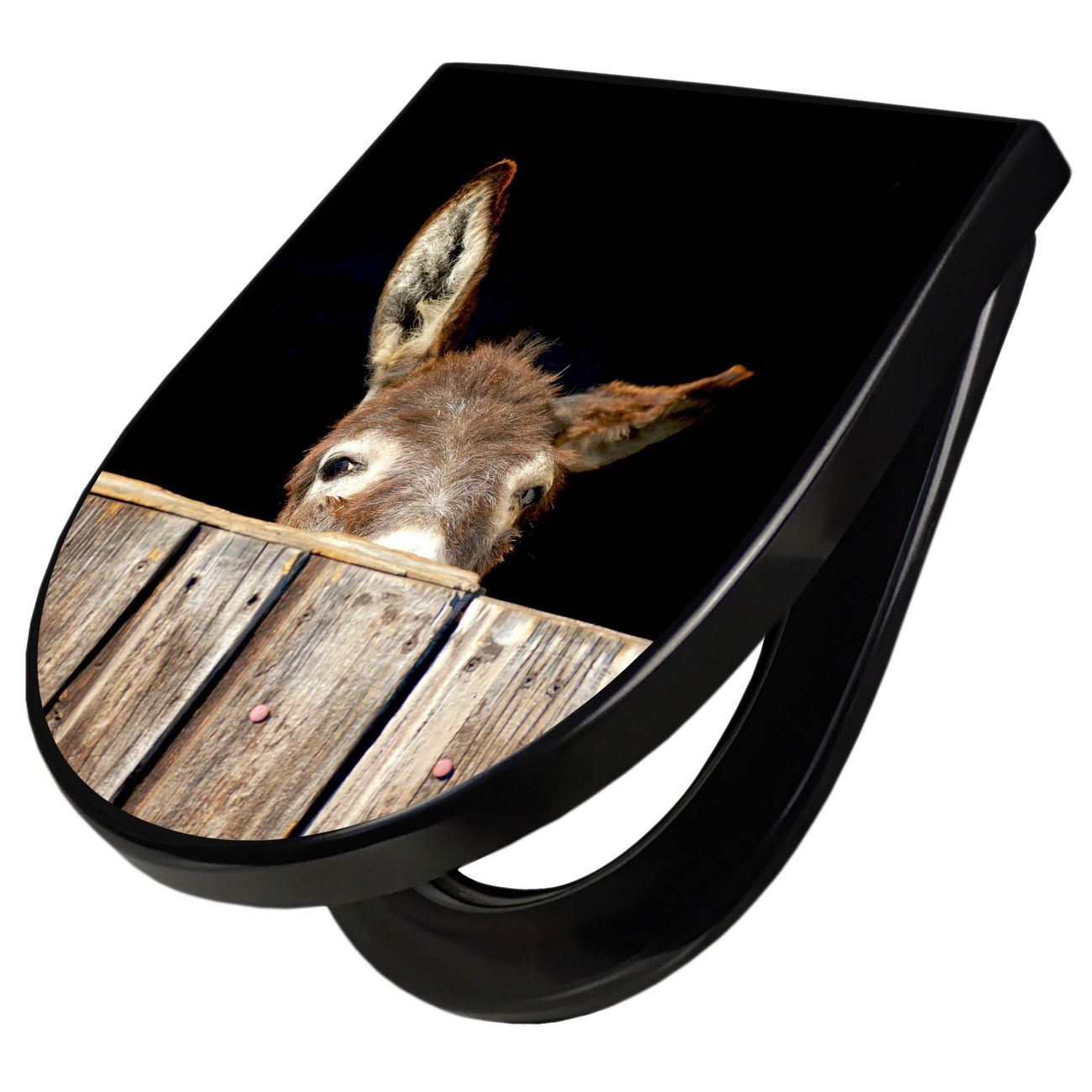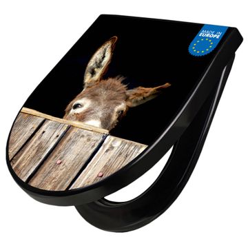 WC Sitz D-Form Schwarz mit Absenkautomatik Motiv Esel