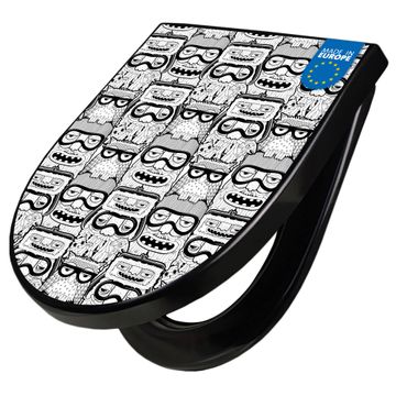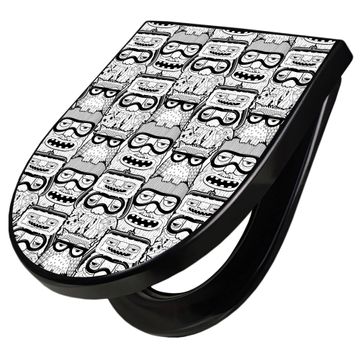 WC Sitz D-Form Schwarz mit Absenkautomatik Motiv Eule und Olaf