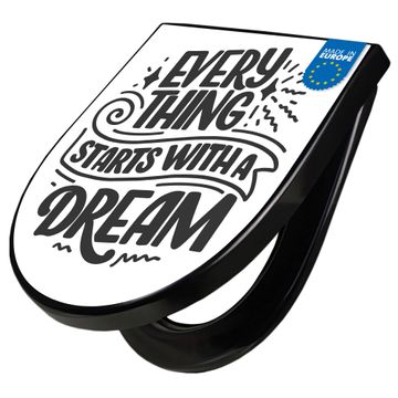 WC Sitz D-Form Schwarz mit Absenkautomatik Motiv Everything starts with a Dream 2