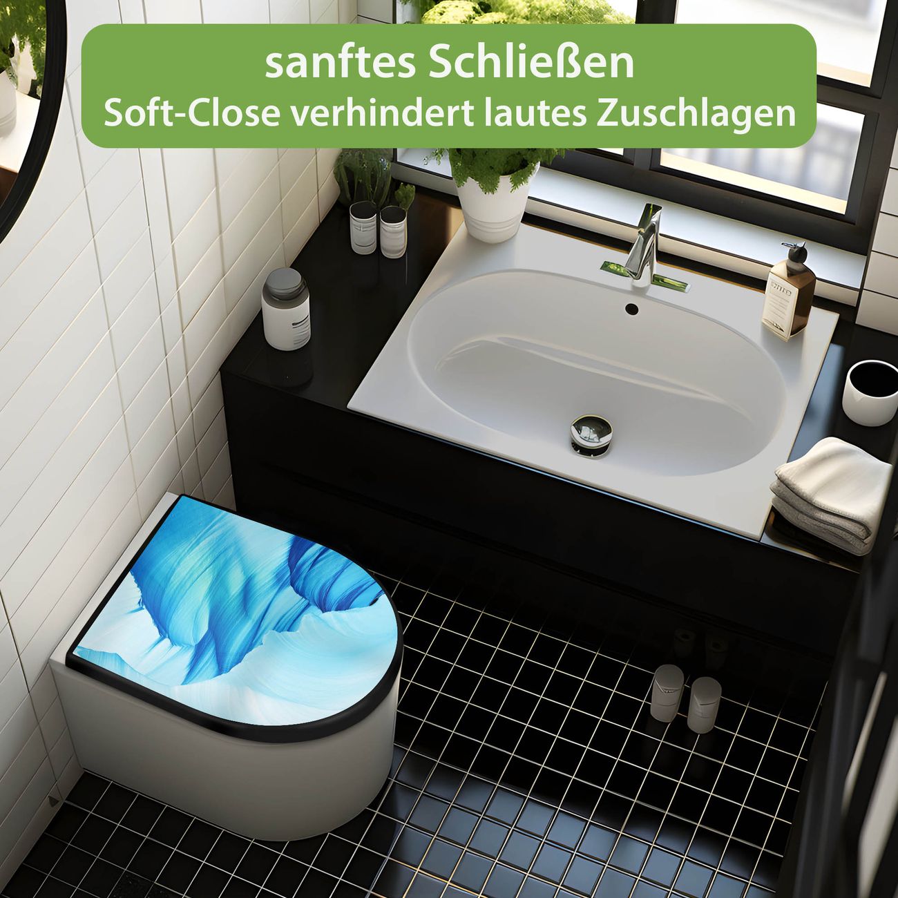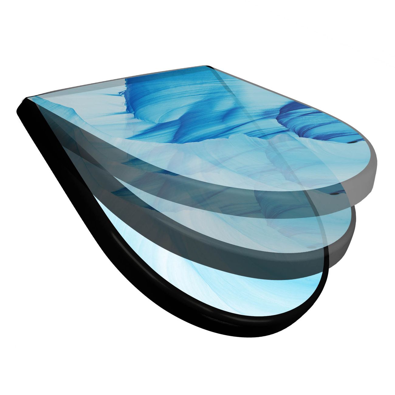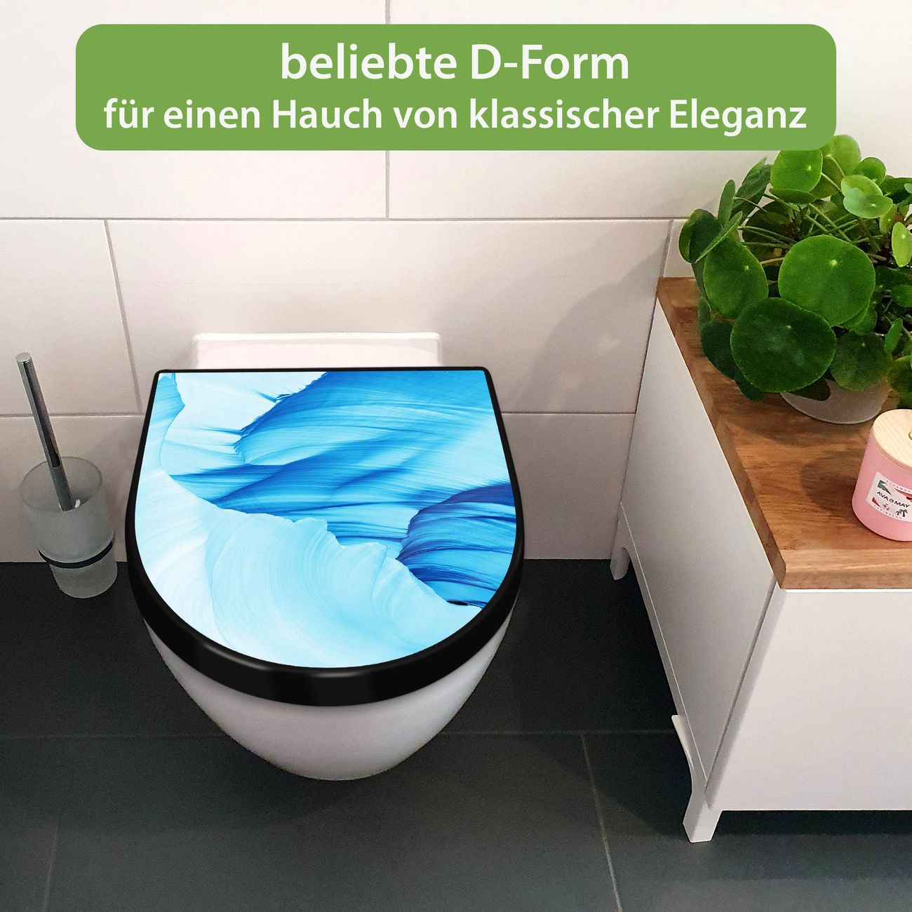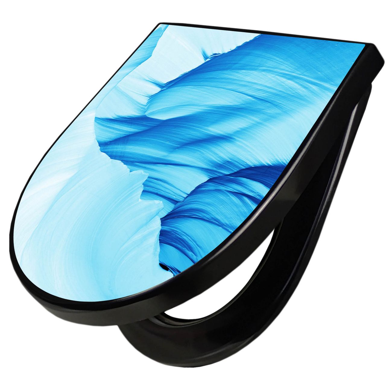 WC Sitz D-Form Schwarz mit Absenkautomatik Motiv Ewiges Eis