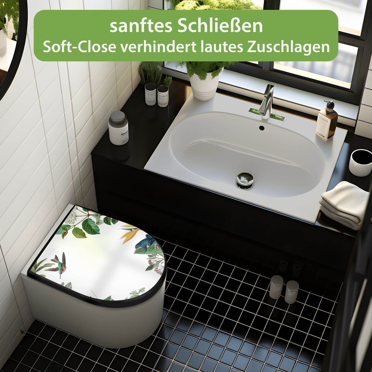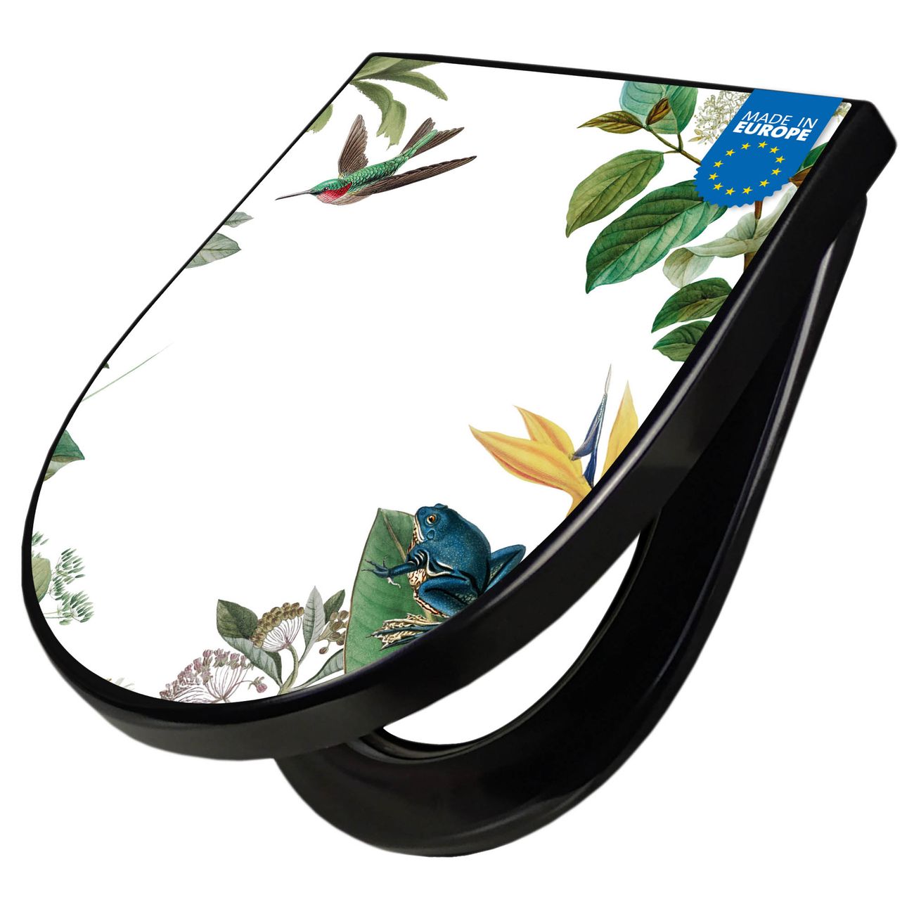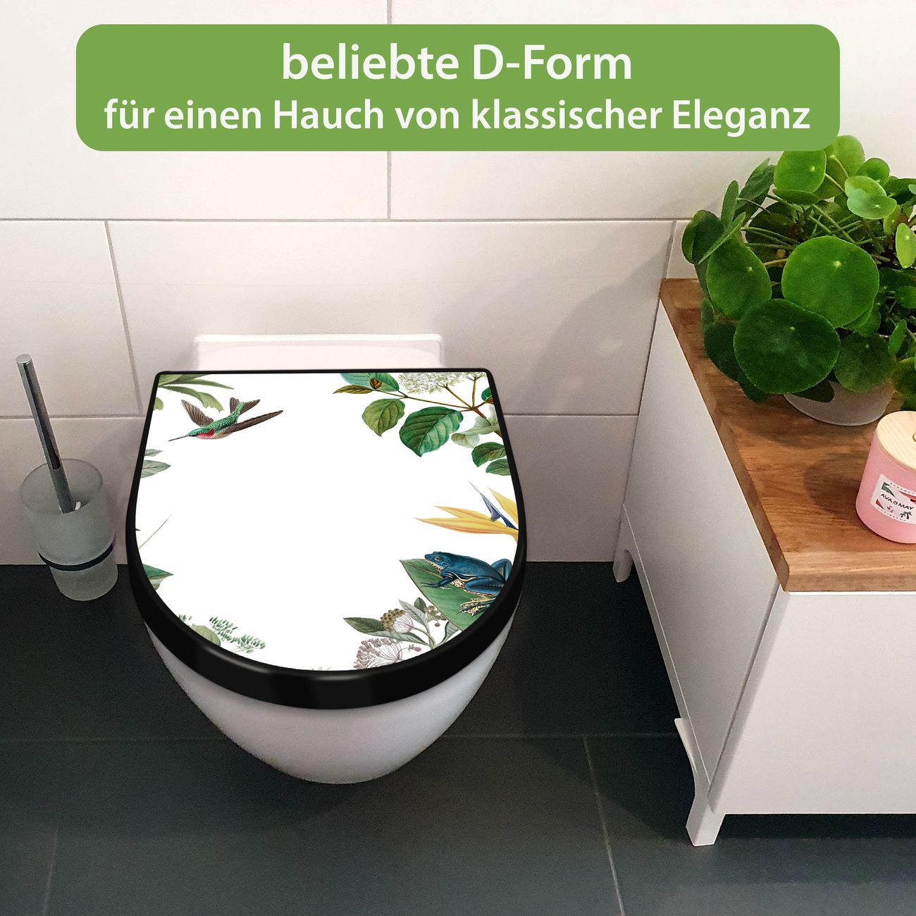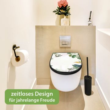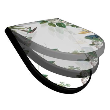 WC Sitz D-Form Schwarz mit Absenkautomatik Motiv Exotisches Paradies