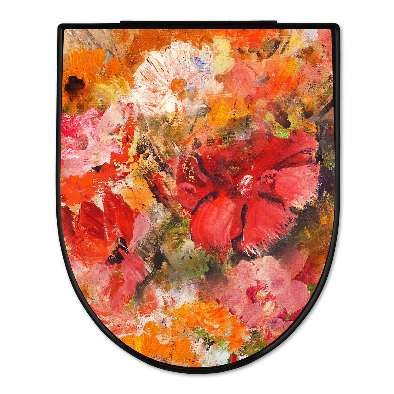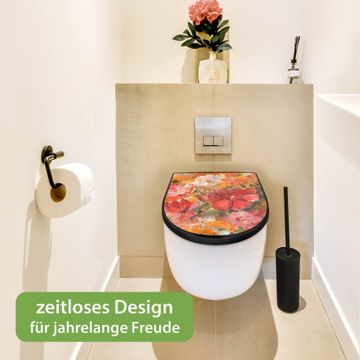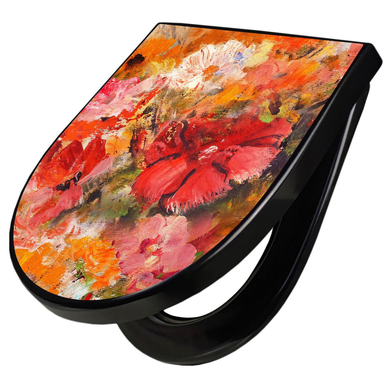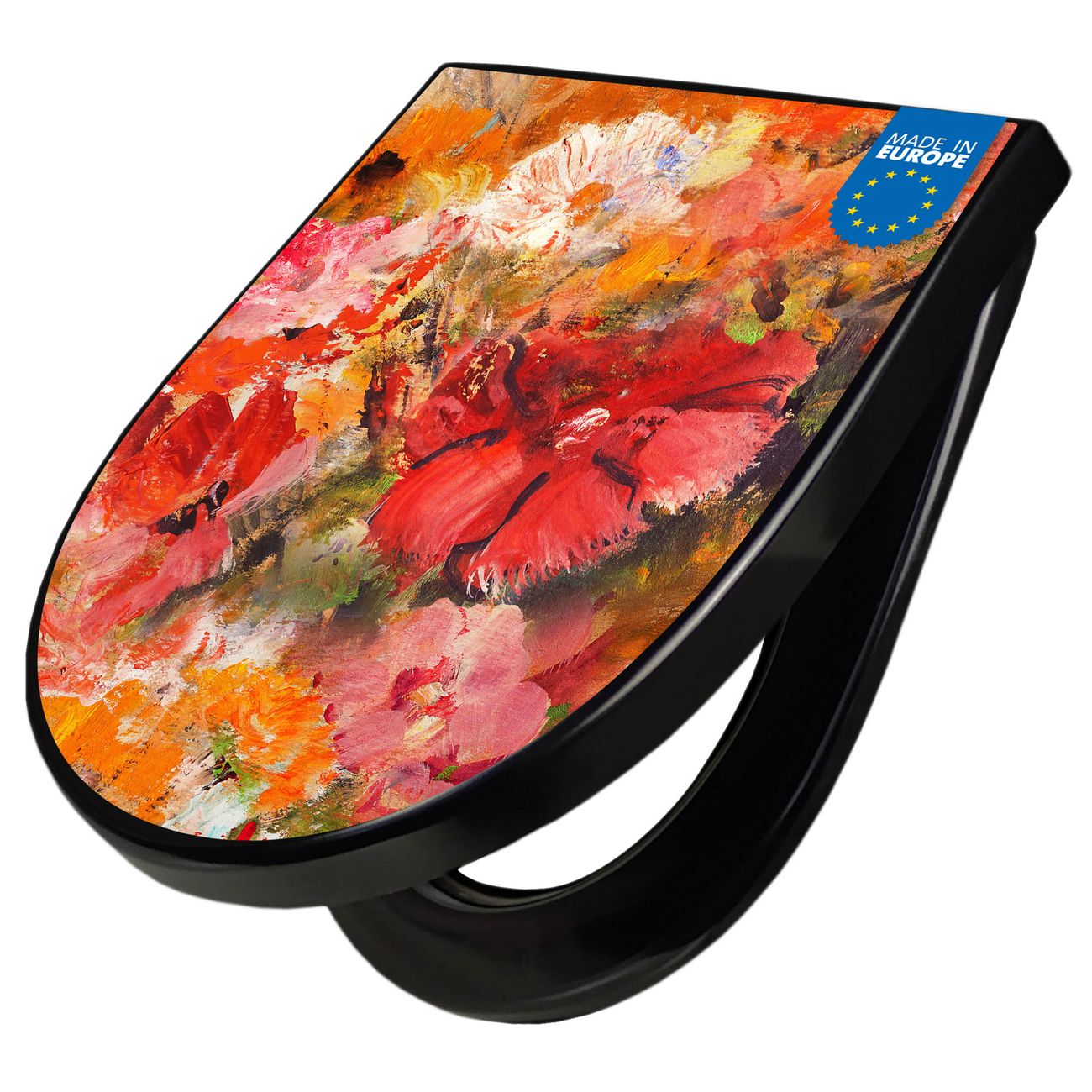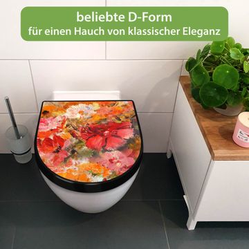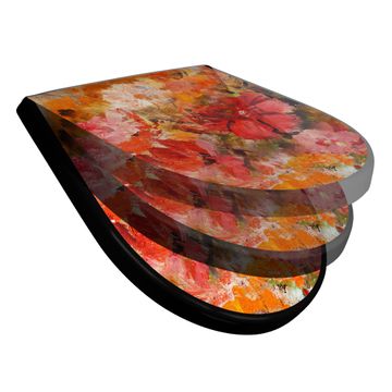 WC Sitz D-Form Schwarz mit Absenkautomatik Motiv Fallende Blumen