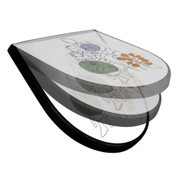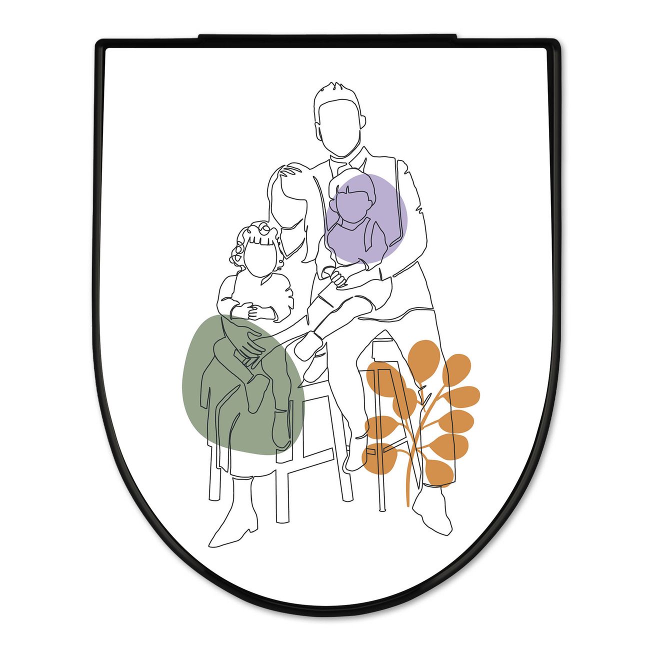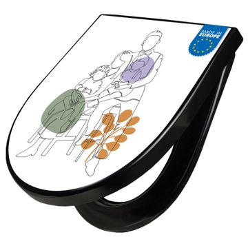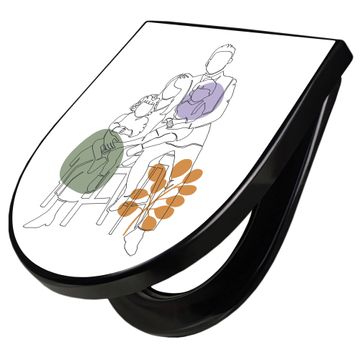 WC Sitz D-Form Schwarz mit Absenkautomatik Motiv Familienglück Lineart