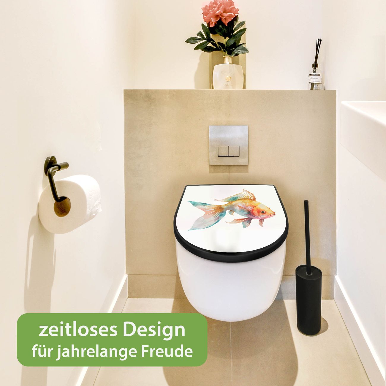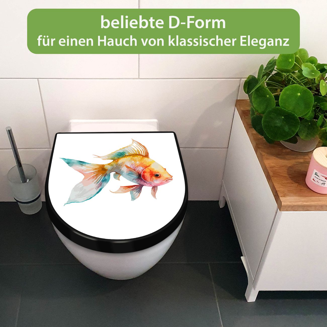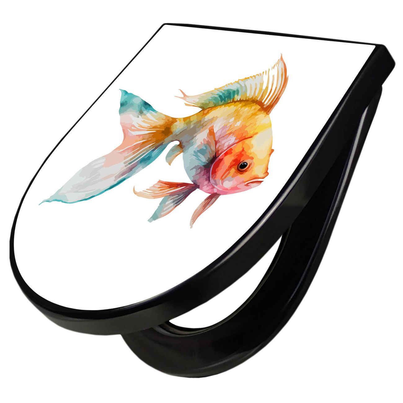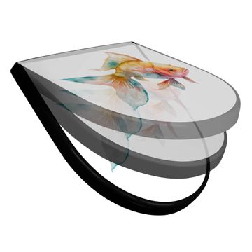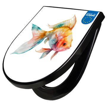 WC Sitz D-Form Schwarz mit Absenkautomatik Motiv Farbenfroher Goldfisch