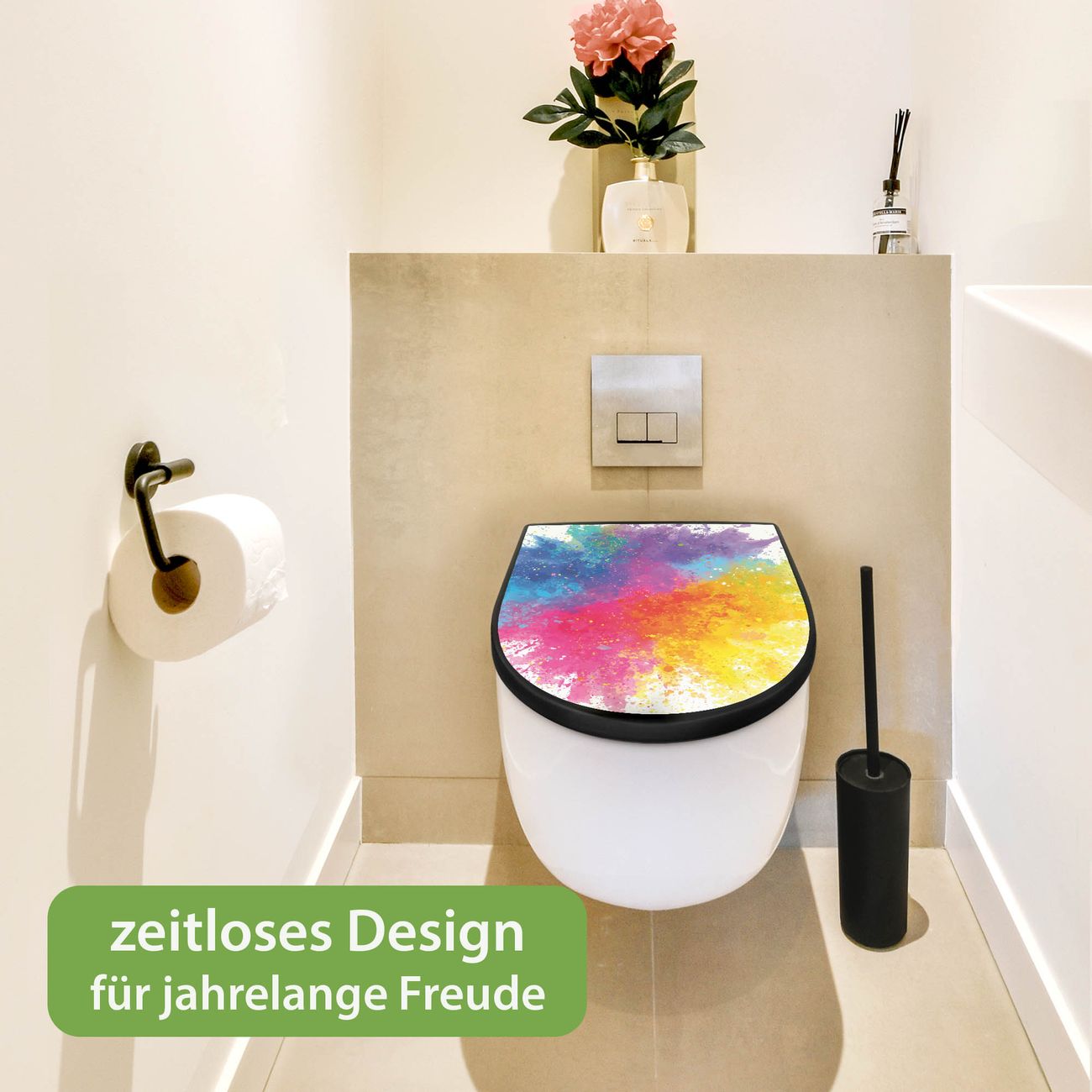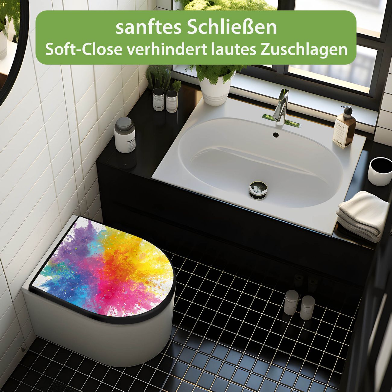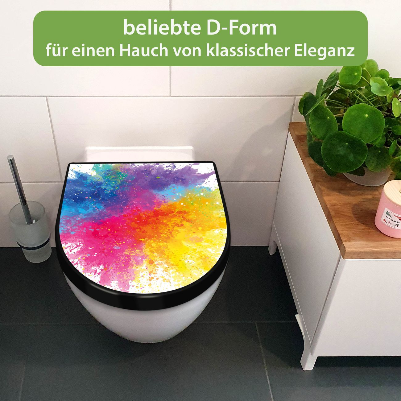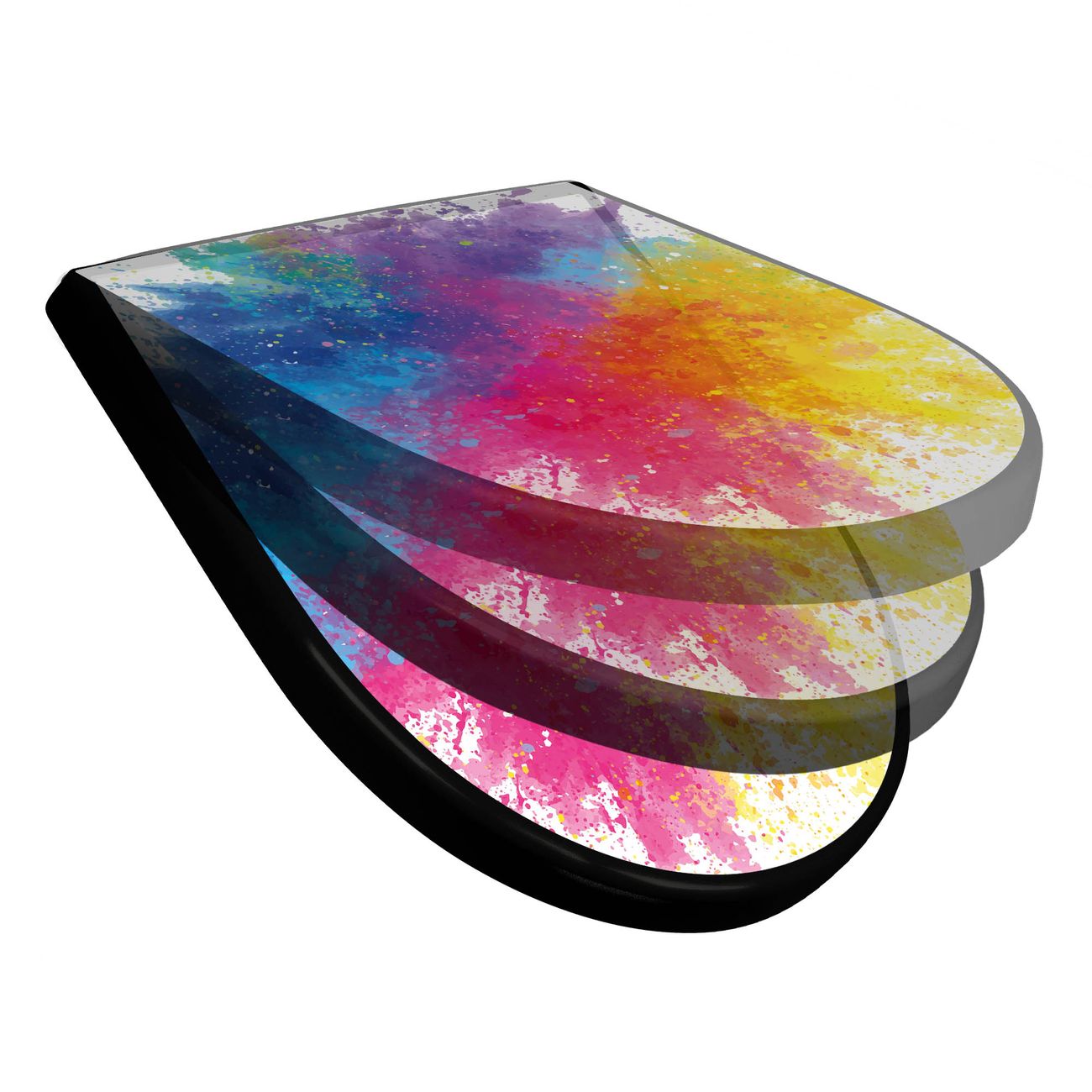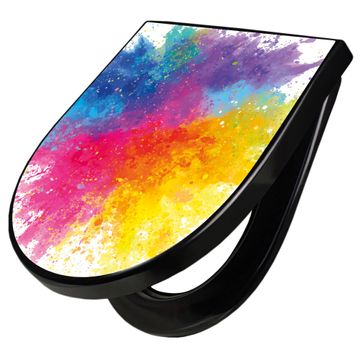 WC Sitz D-Form Schwarz mit Absenkautomatik Motiv Farbexplosion 2