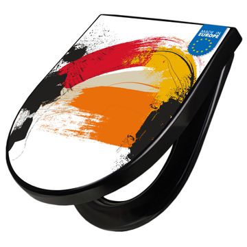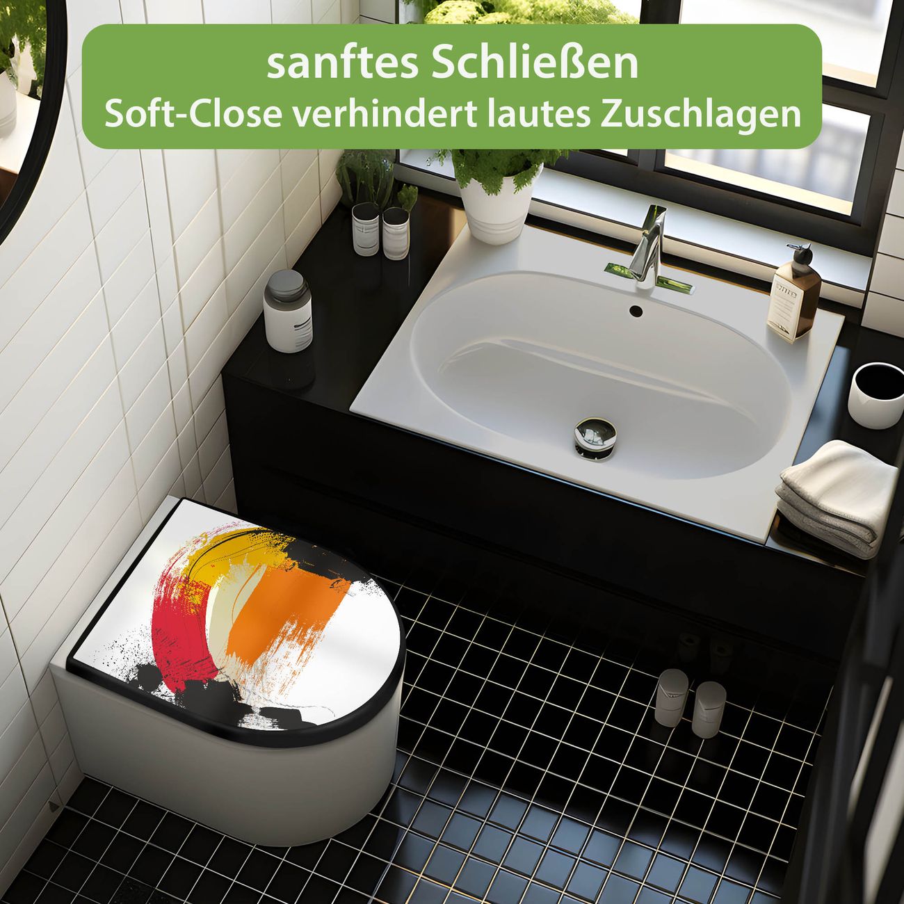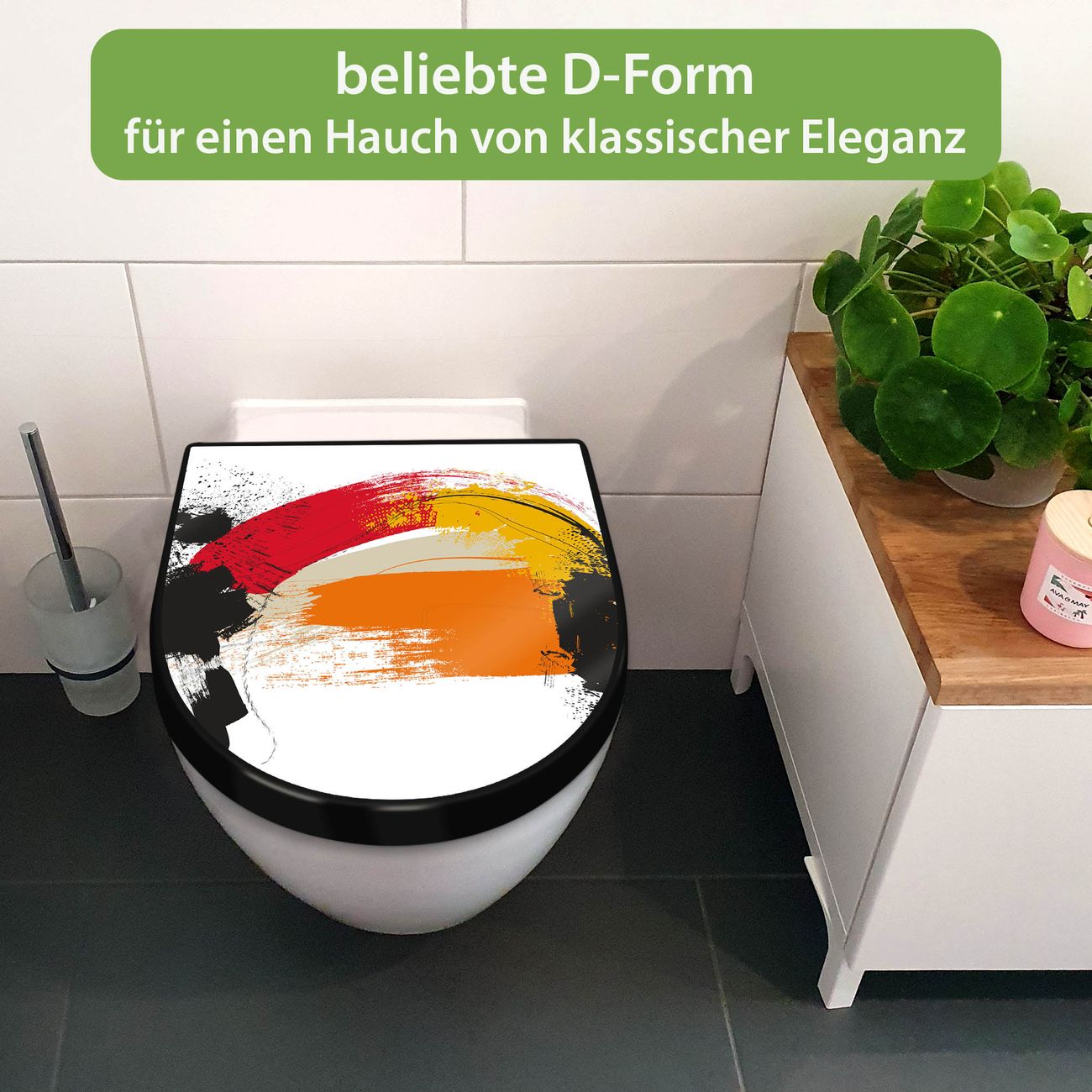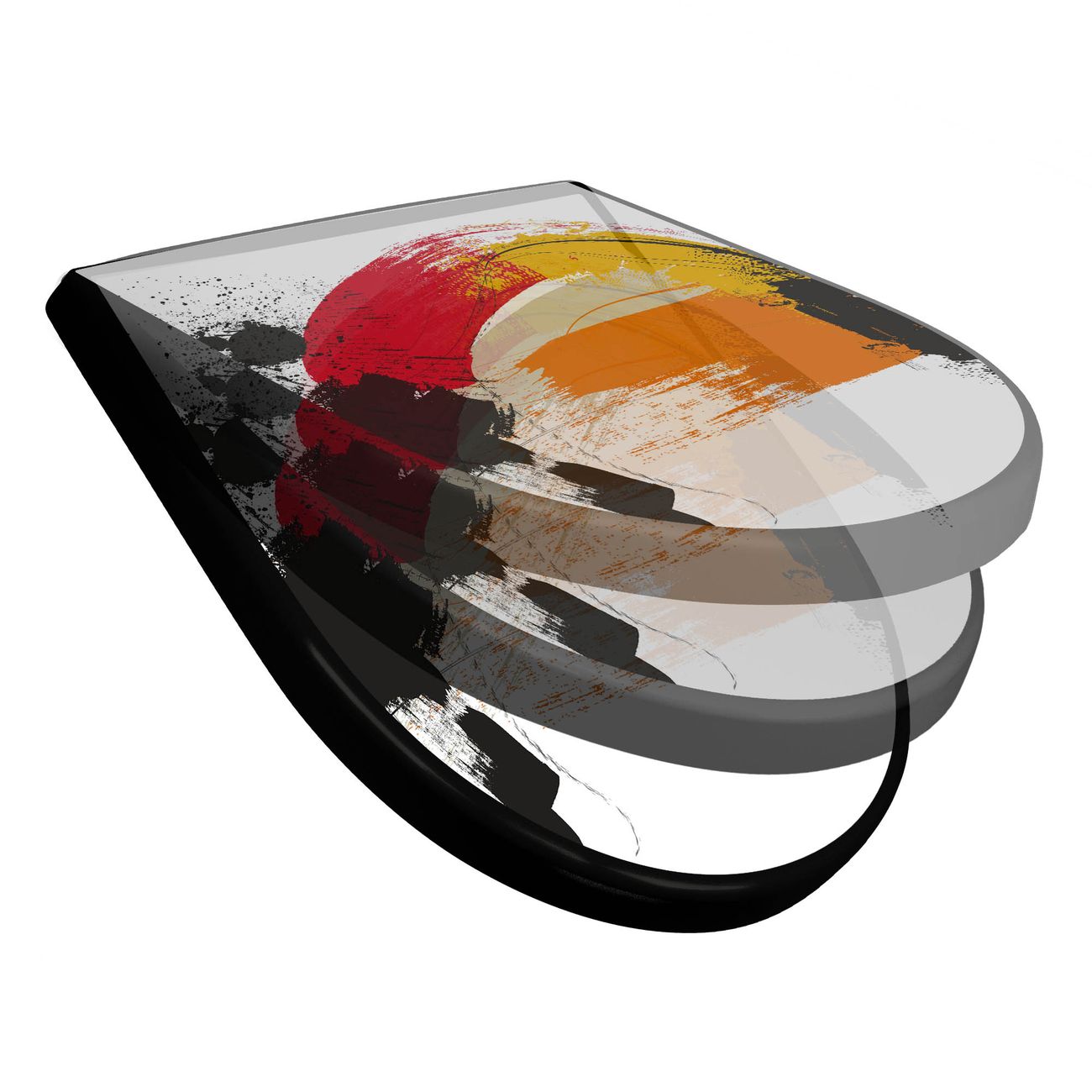 WC Sitz D-Form Schwarz mit Absenkautomatik Motiv Farbexplosion