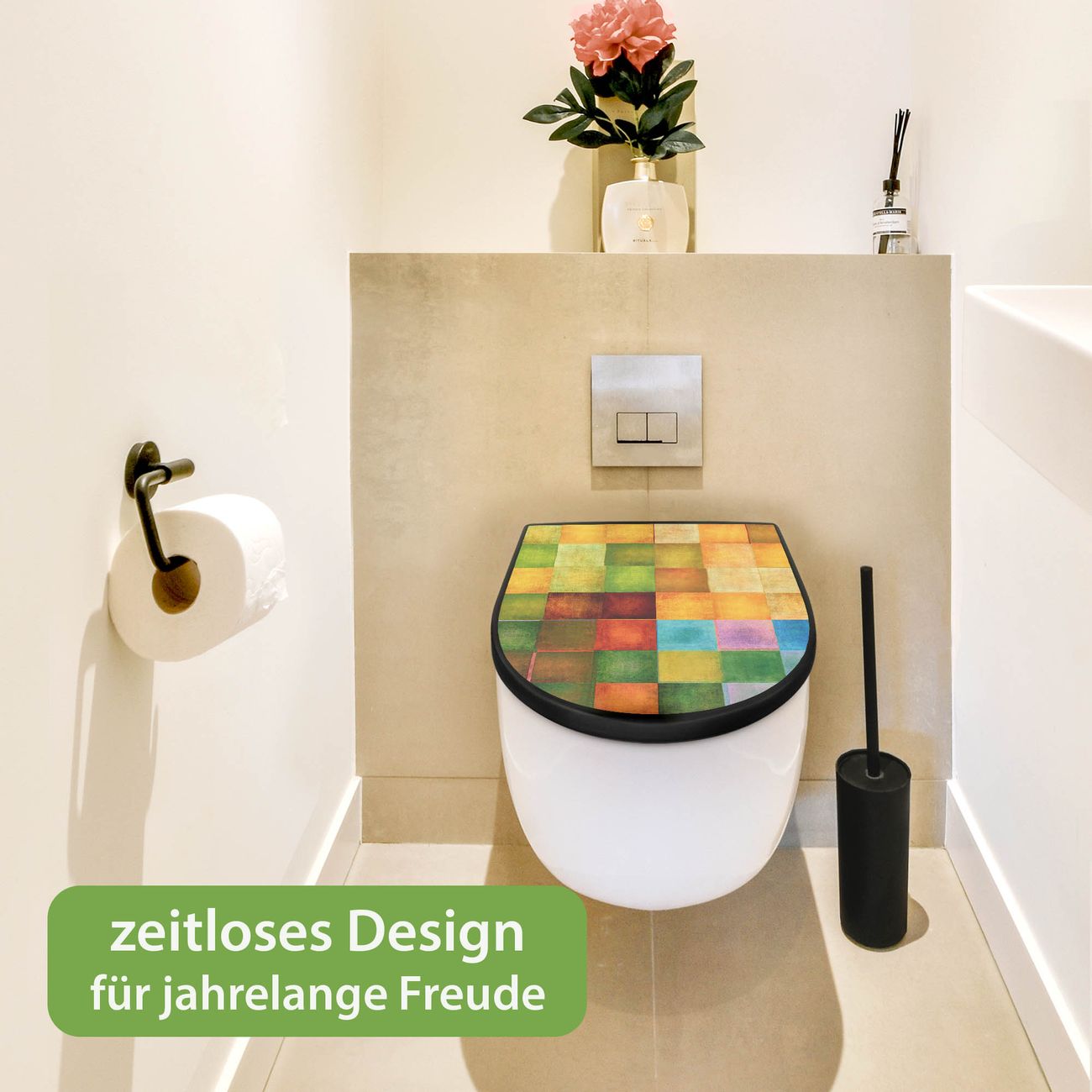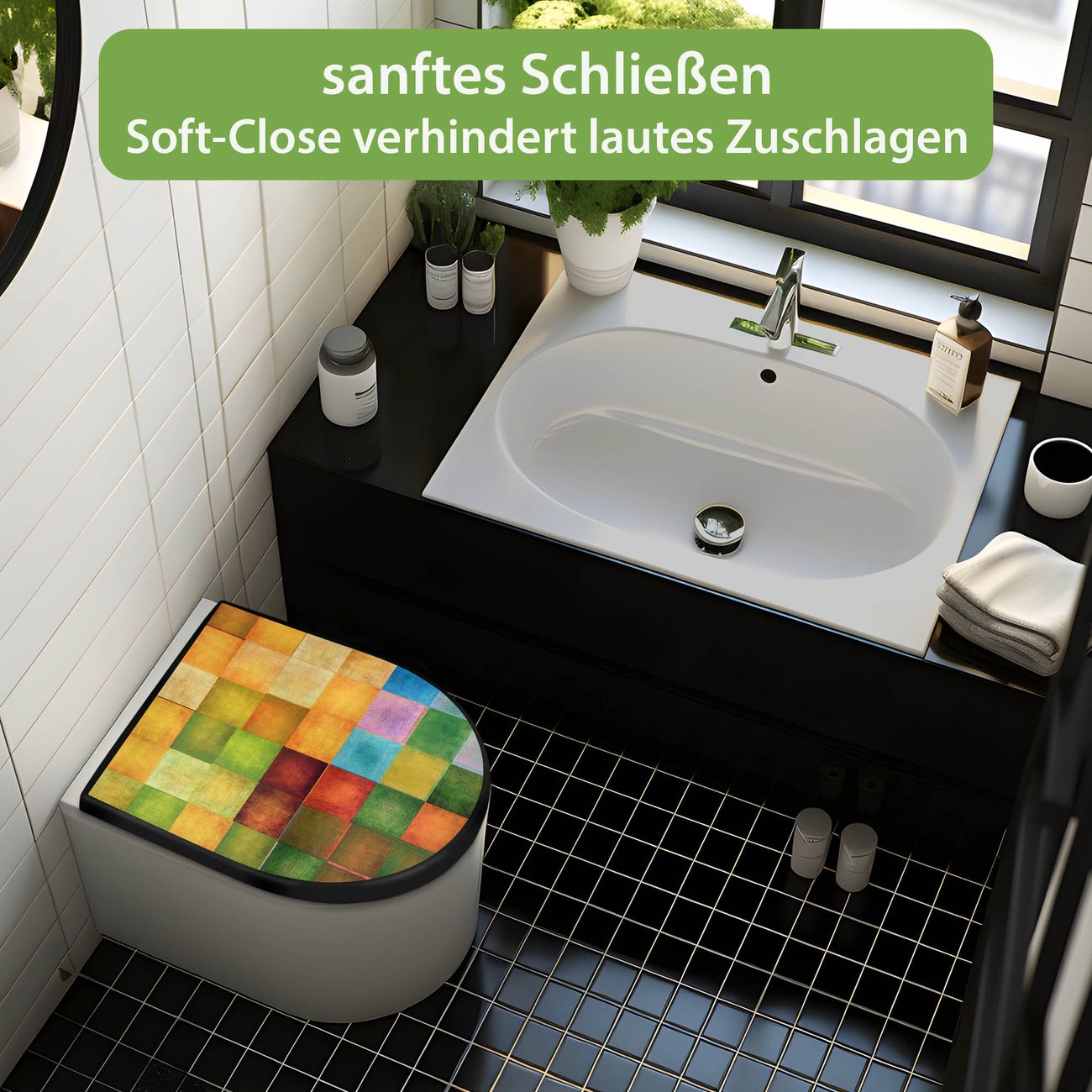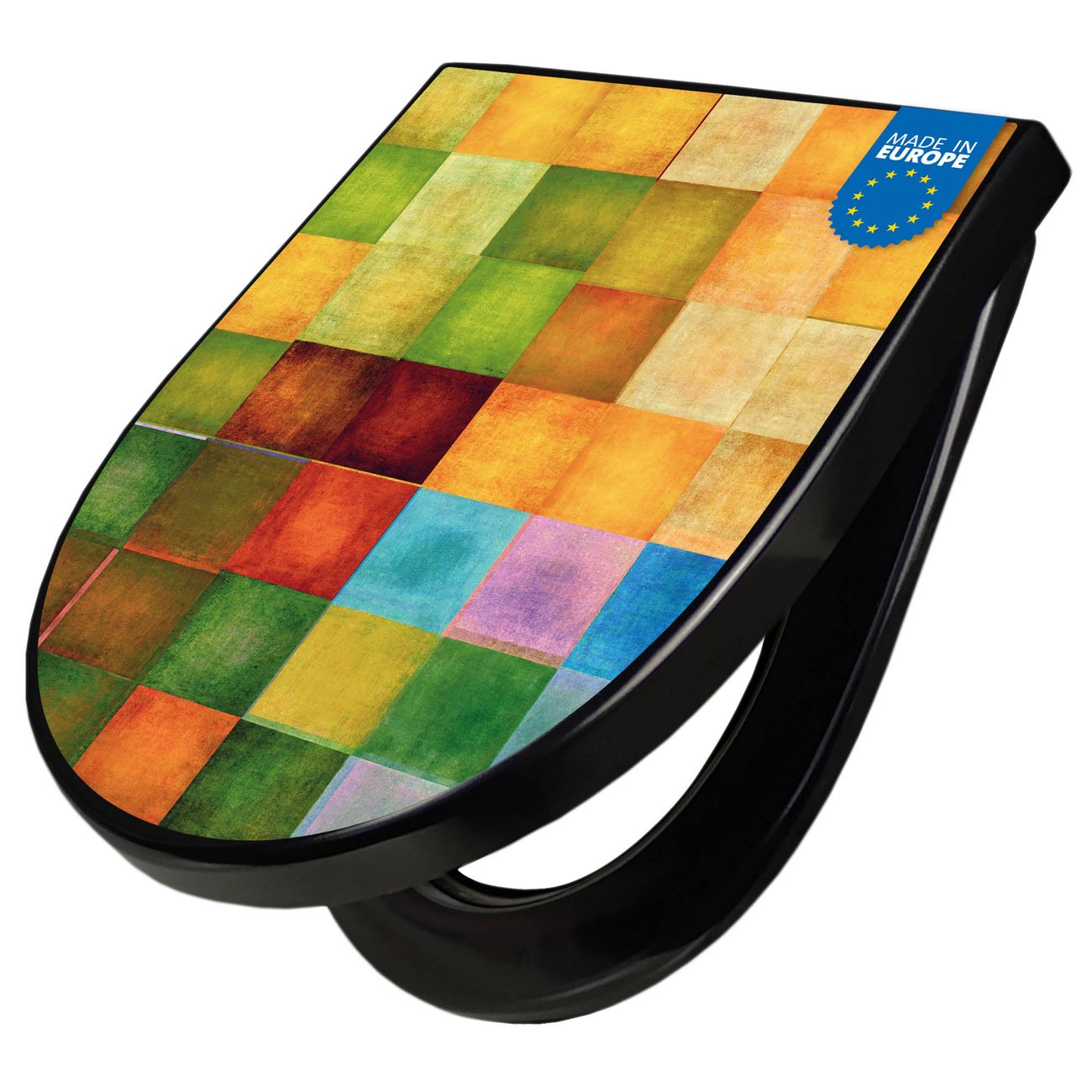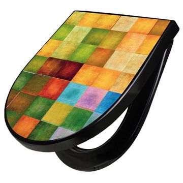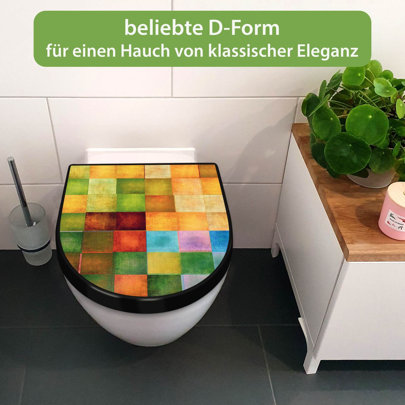 WC Sitz D-Form Schwarz mit Absenkautomatik Motiv Farbkasten 2