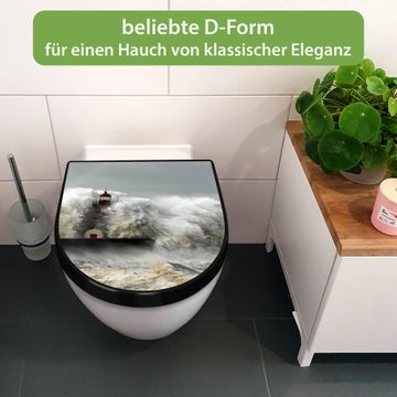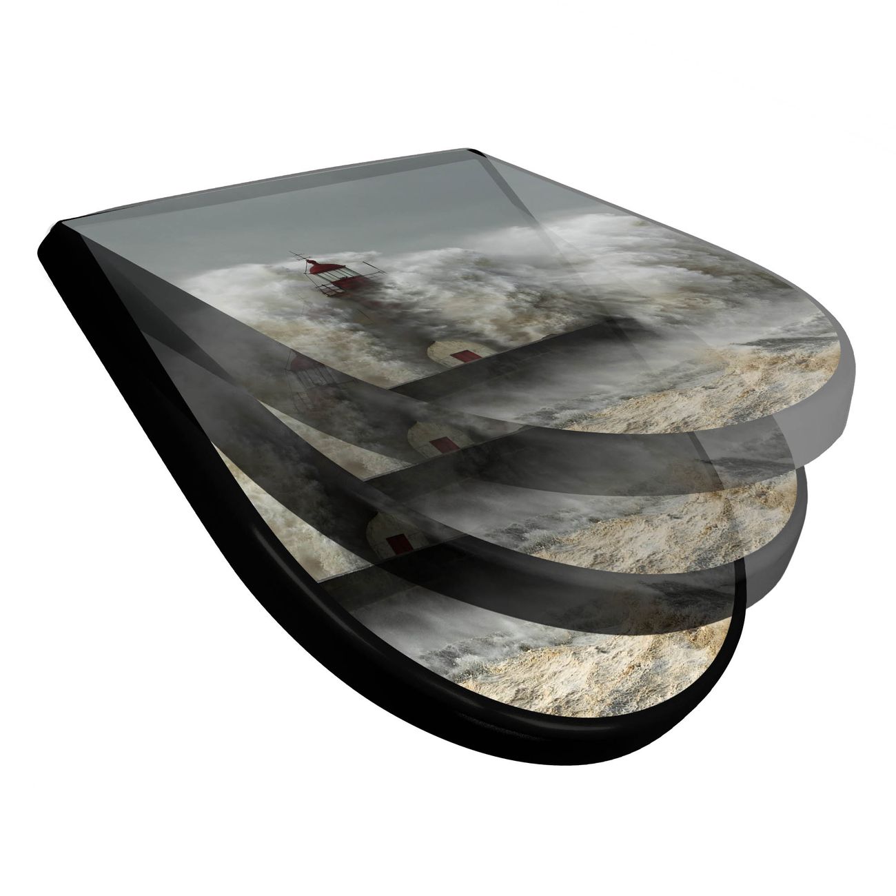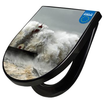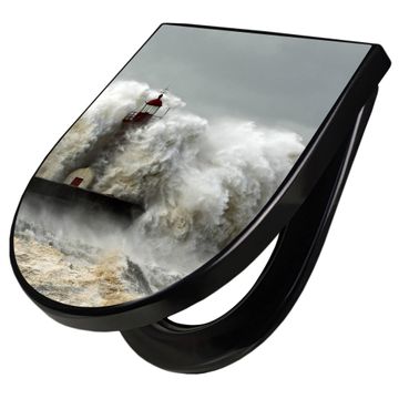 WC Sitz D-Form Schwarz mit Absenkautomatik Motiv Fels In Der Brandung