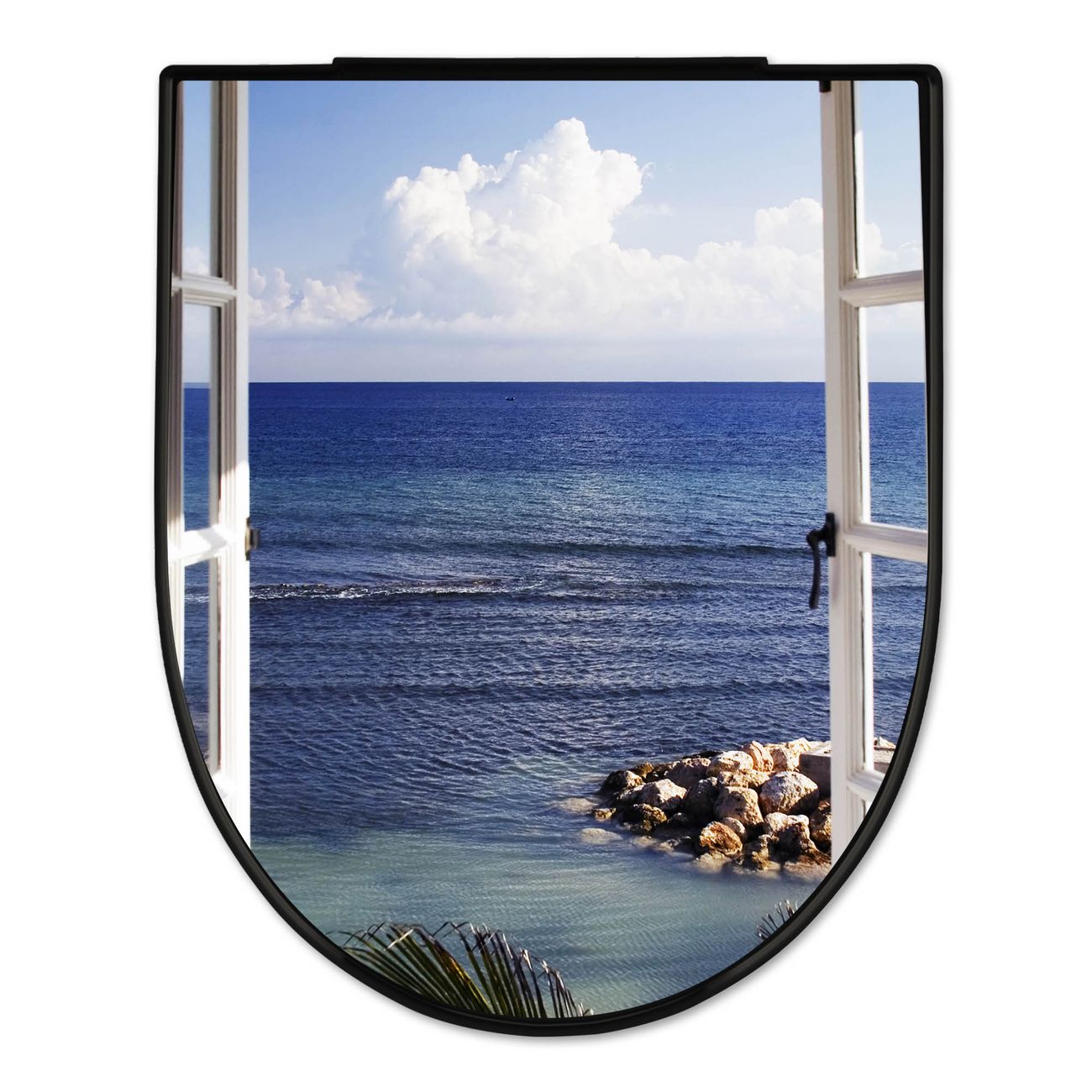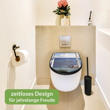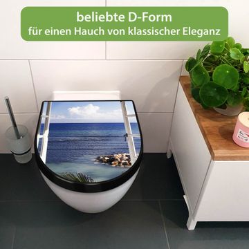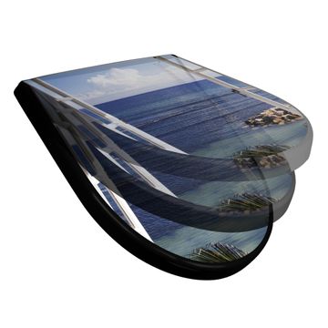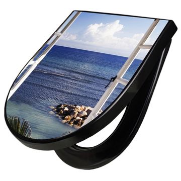 WC Sitz D-Form Schwarz mit Absenkautomatik Motiv Fensterpanorama
