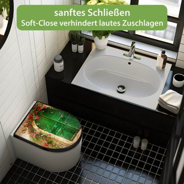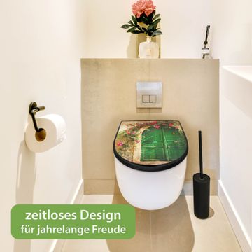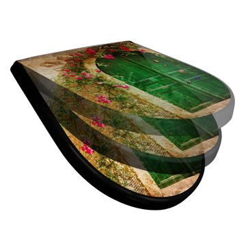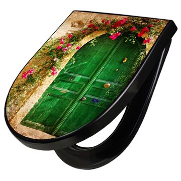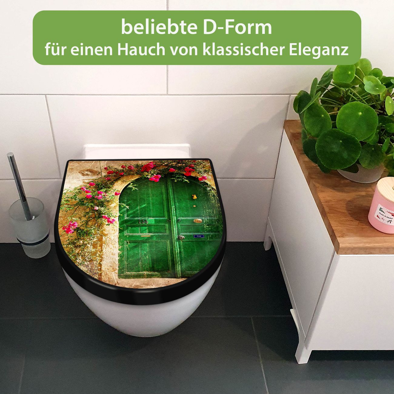 WC Sitz D-Form Schwarz mit Absenkautomatik Motiv Ferienhaus
