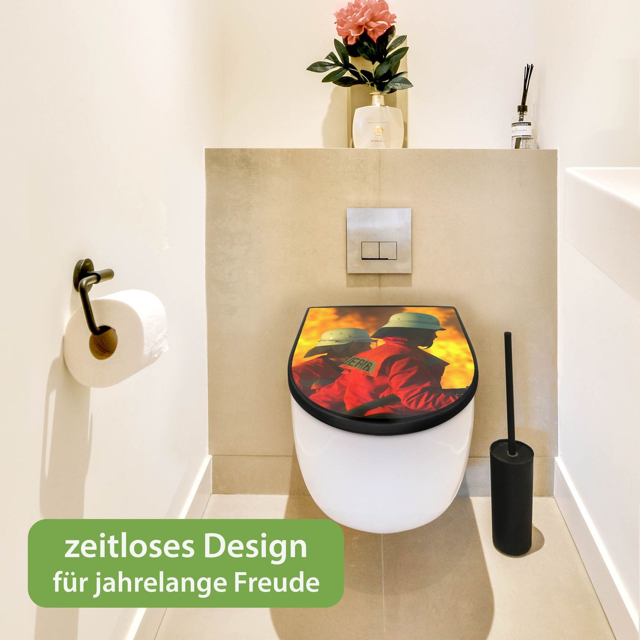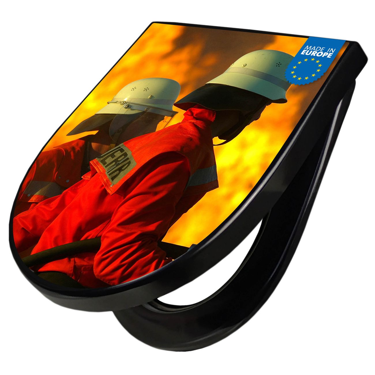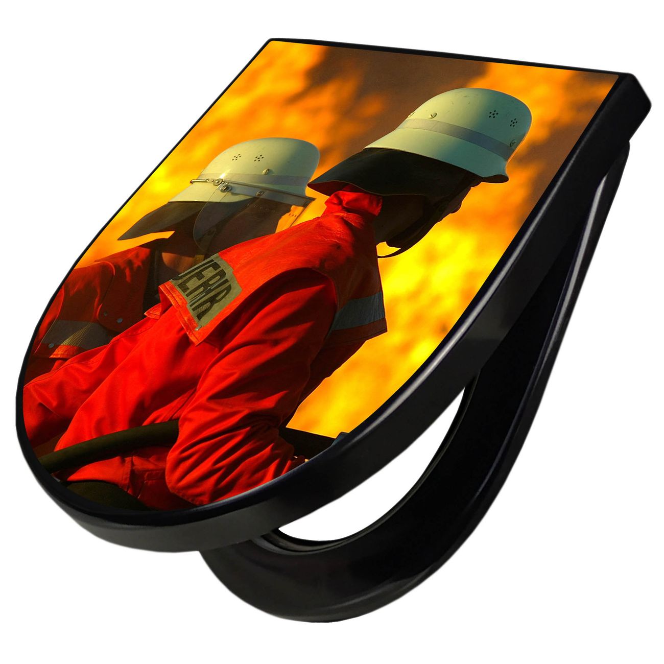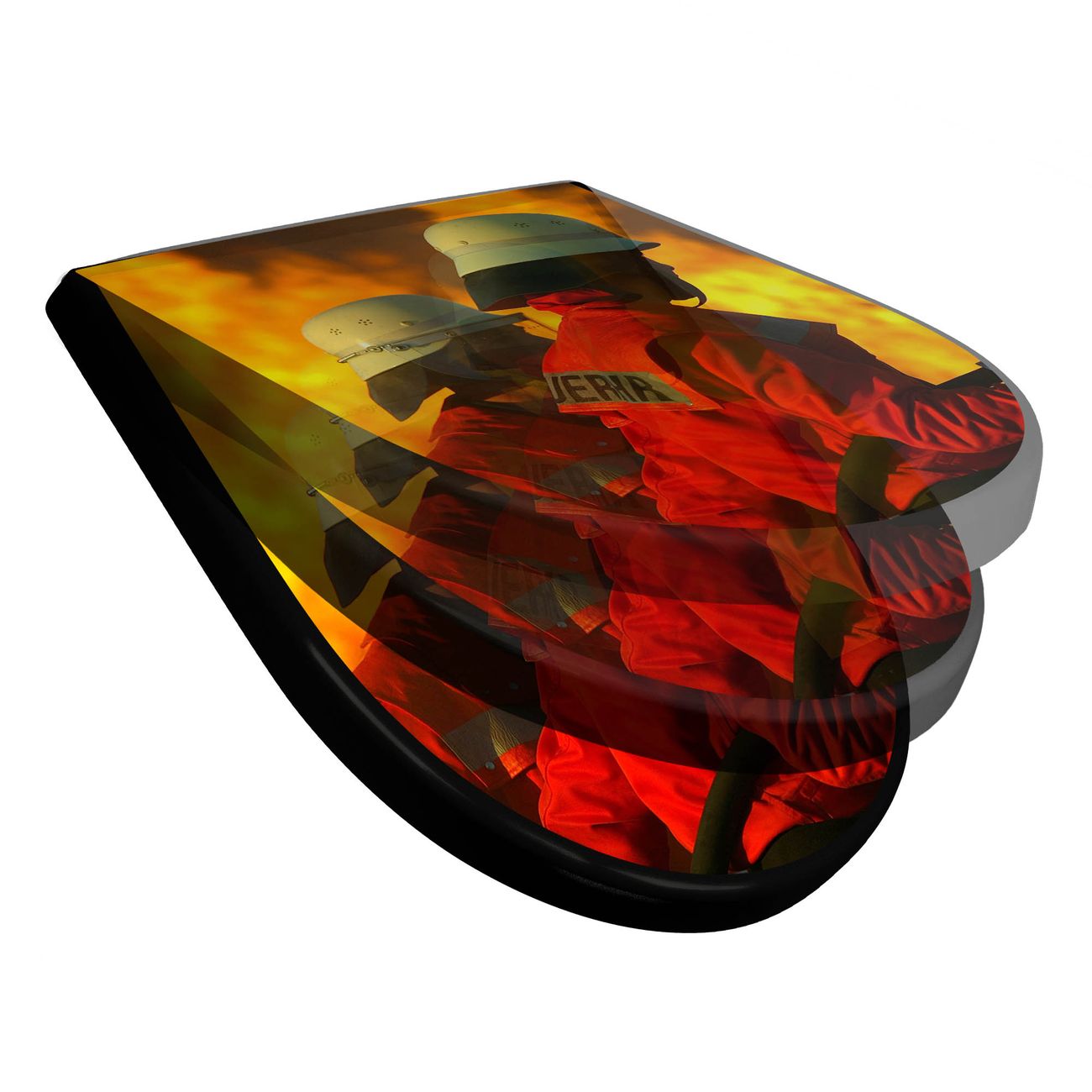 WC Sitz D-Form Schwarz mit Absenkautomatik Motiv Feuer