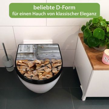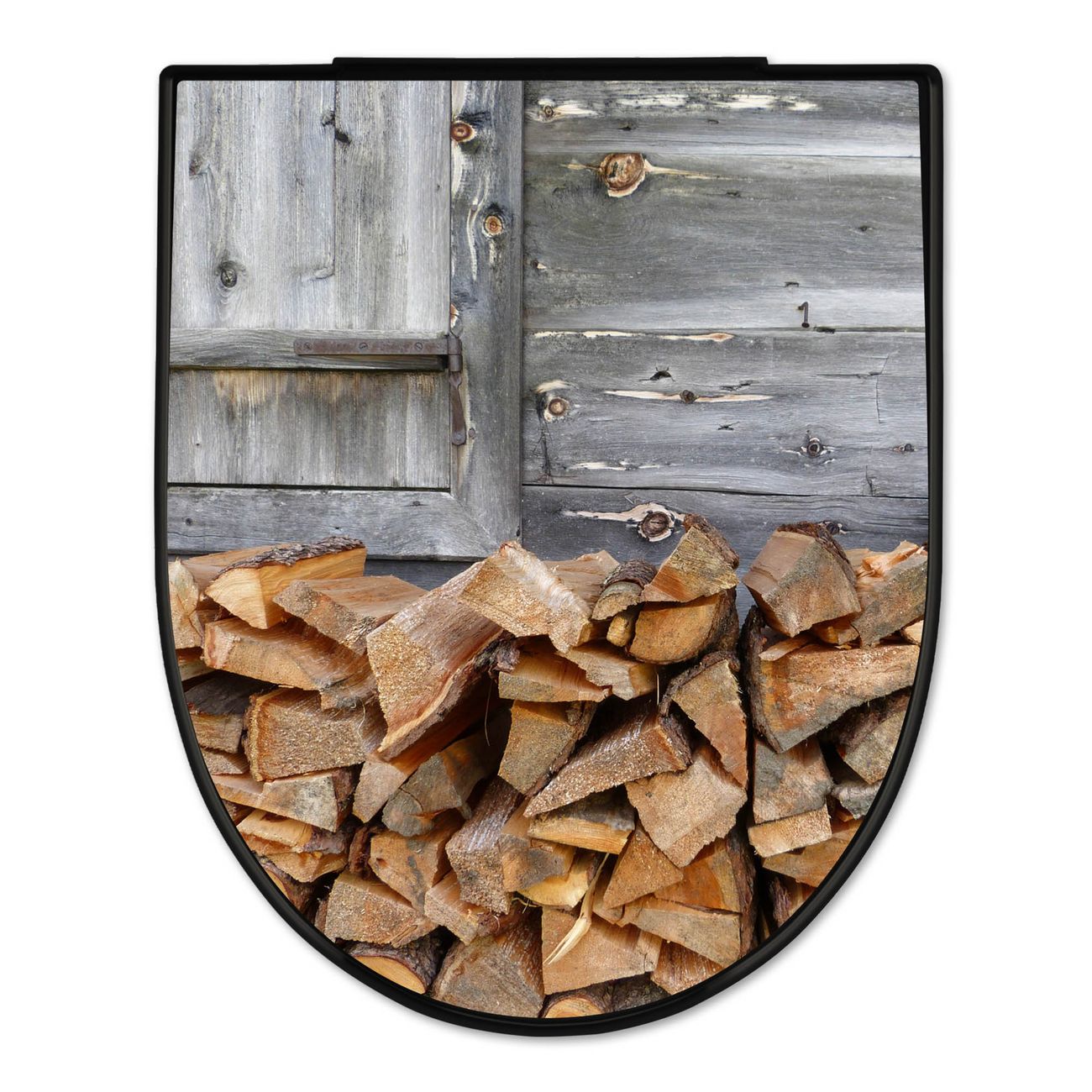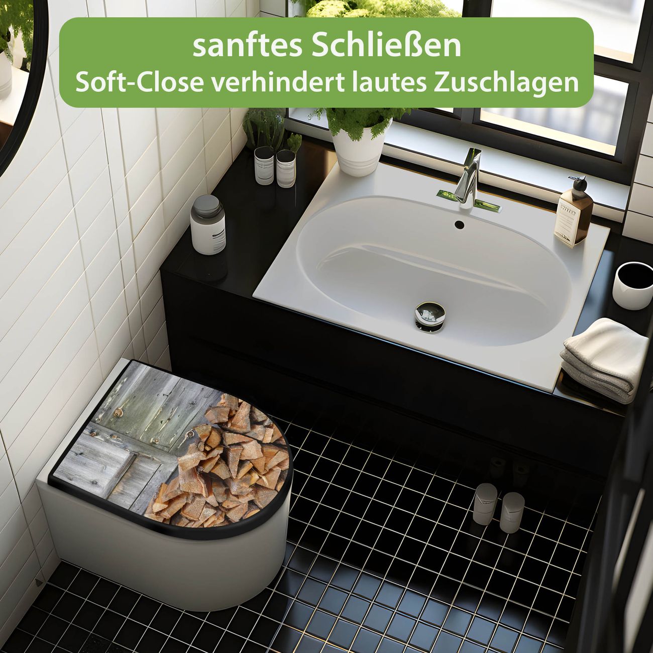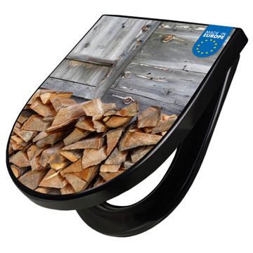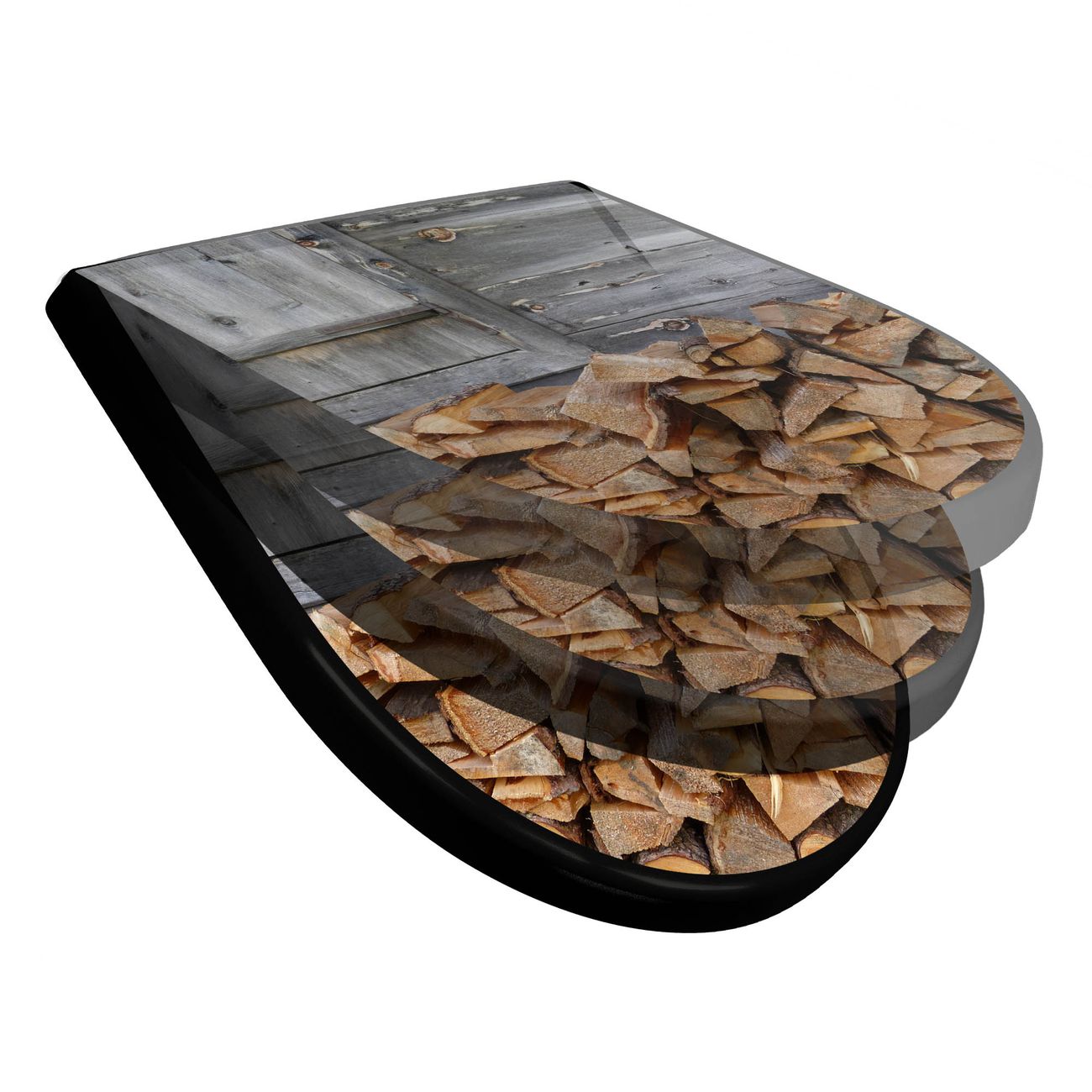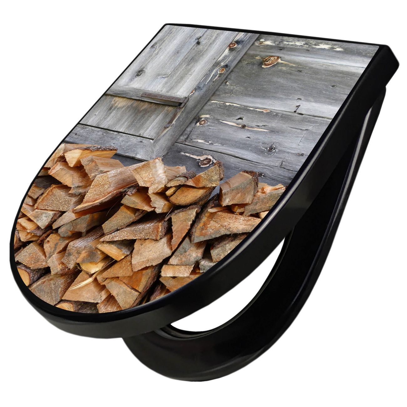 WC Sitz D-Form Schwarz mit Absenkautomatik Motiv Feuerholz