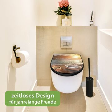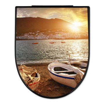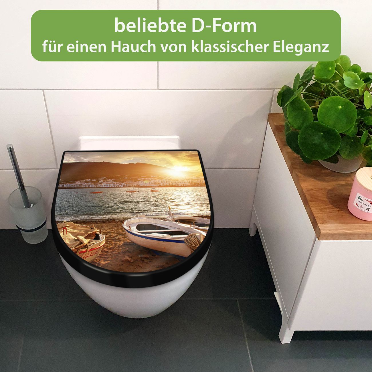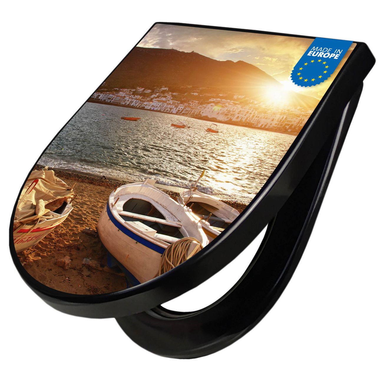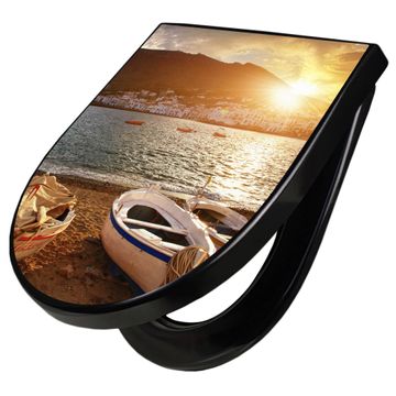WC Sitz D-Form Schwarz mit Absenkautomatik Motiv Fischerboote