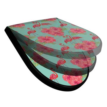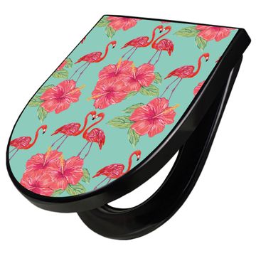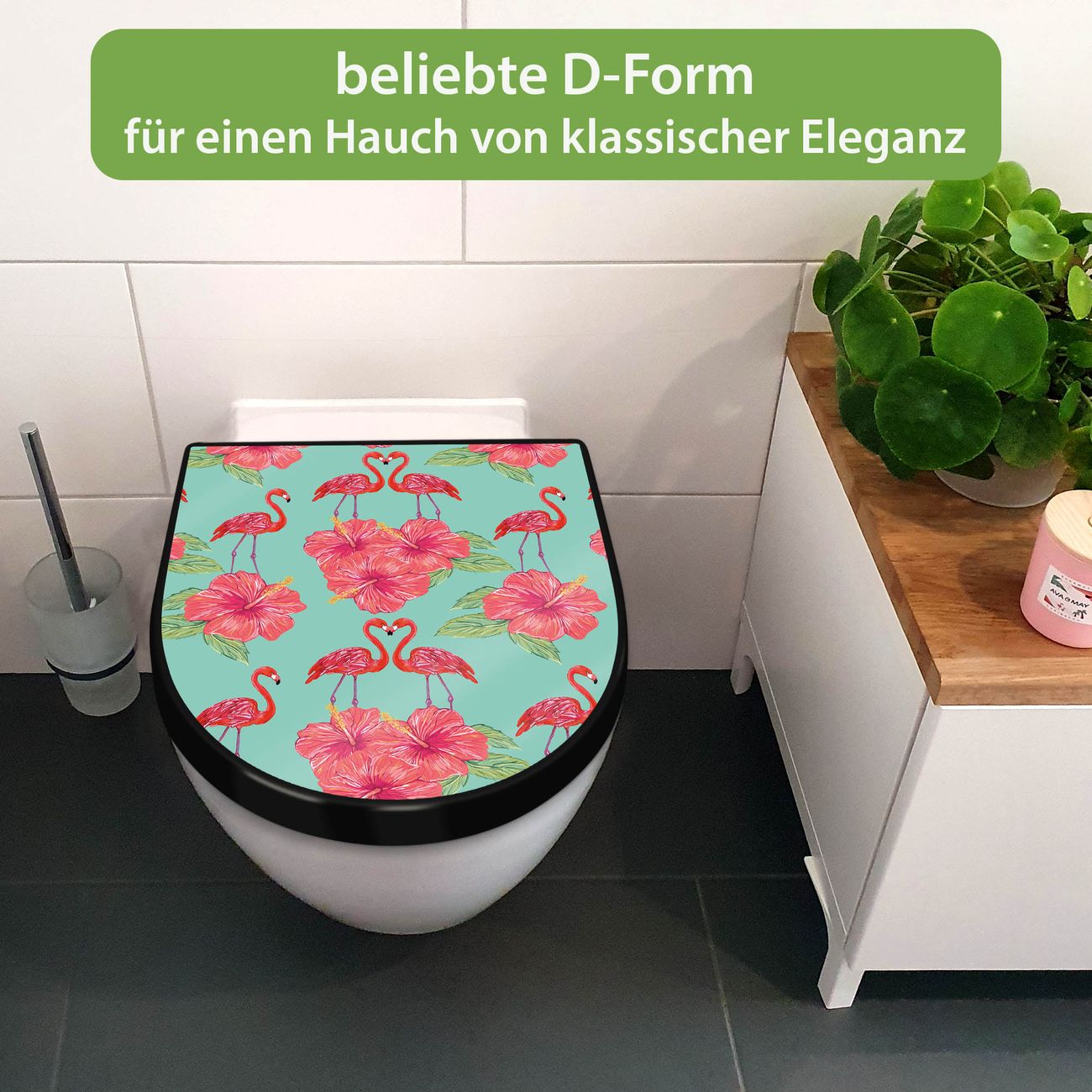 WC Sitz D-Form Schwarz mit Absenkautomatik Motiv Flamingo Liebe