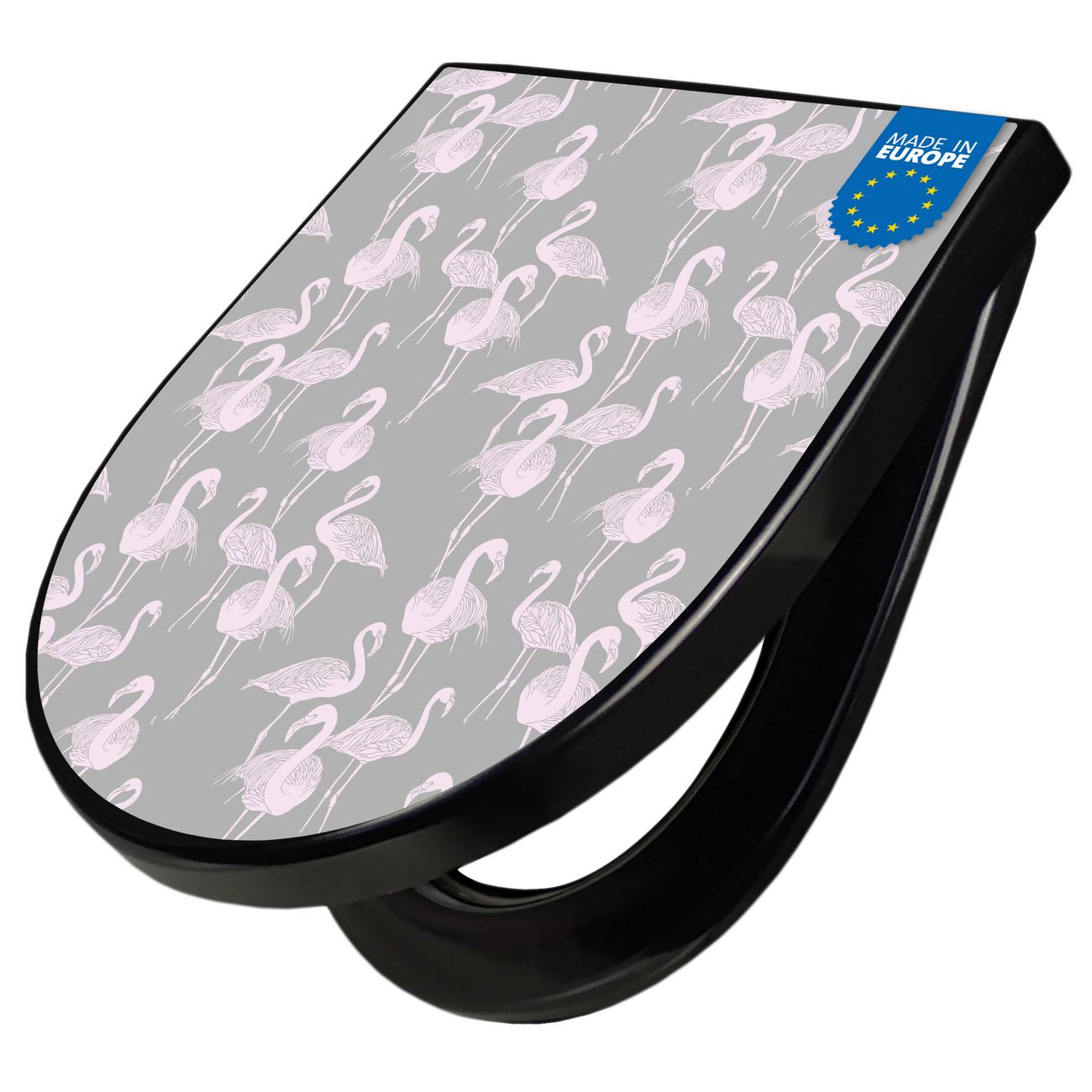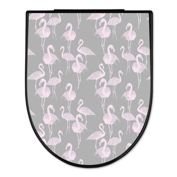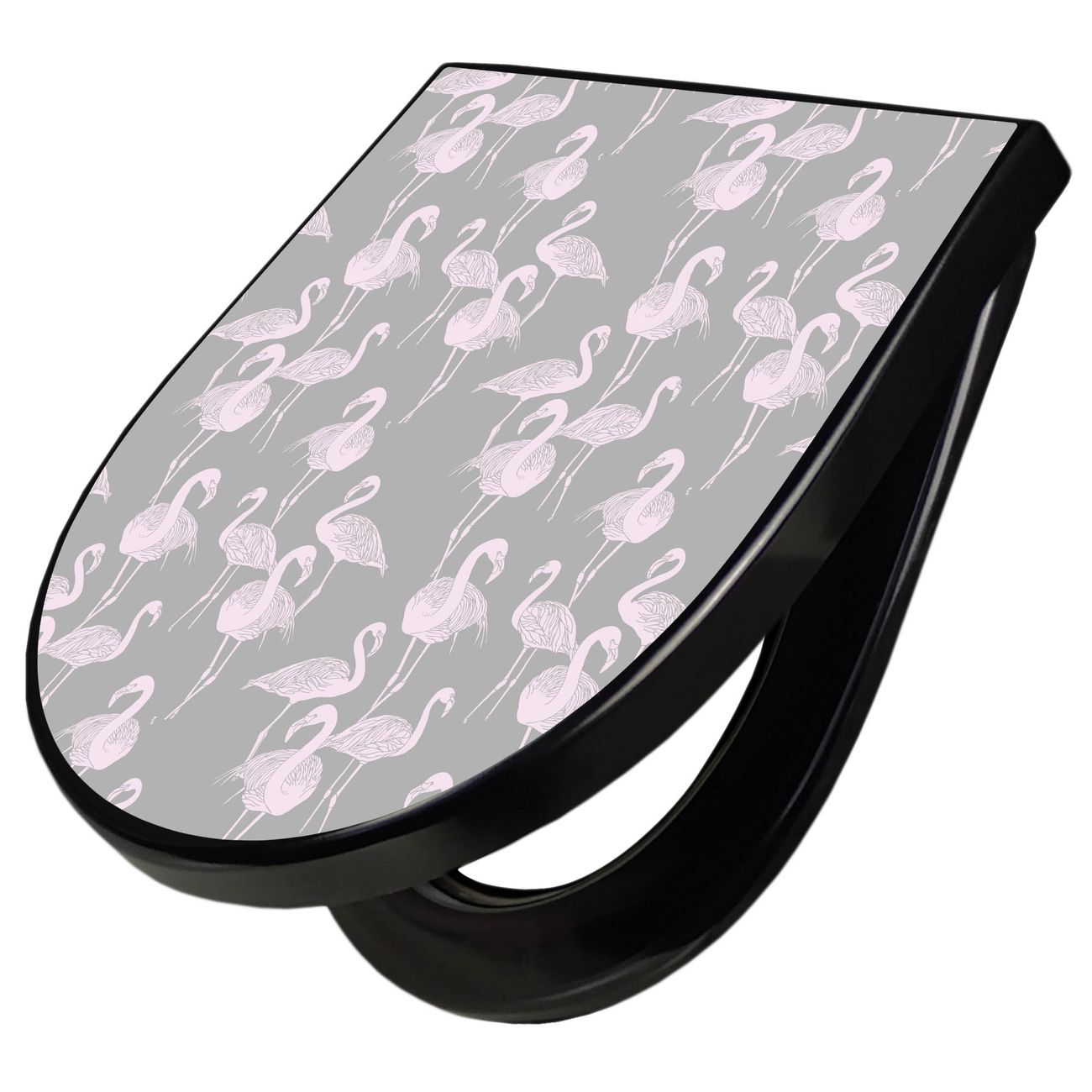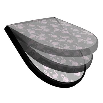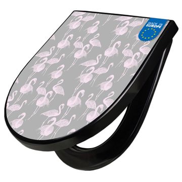 WC Sitz D-Form Schwarz mit Absenkautomatik Motiv Flamingos Blass