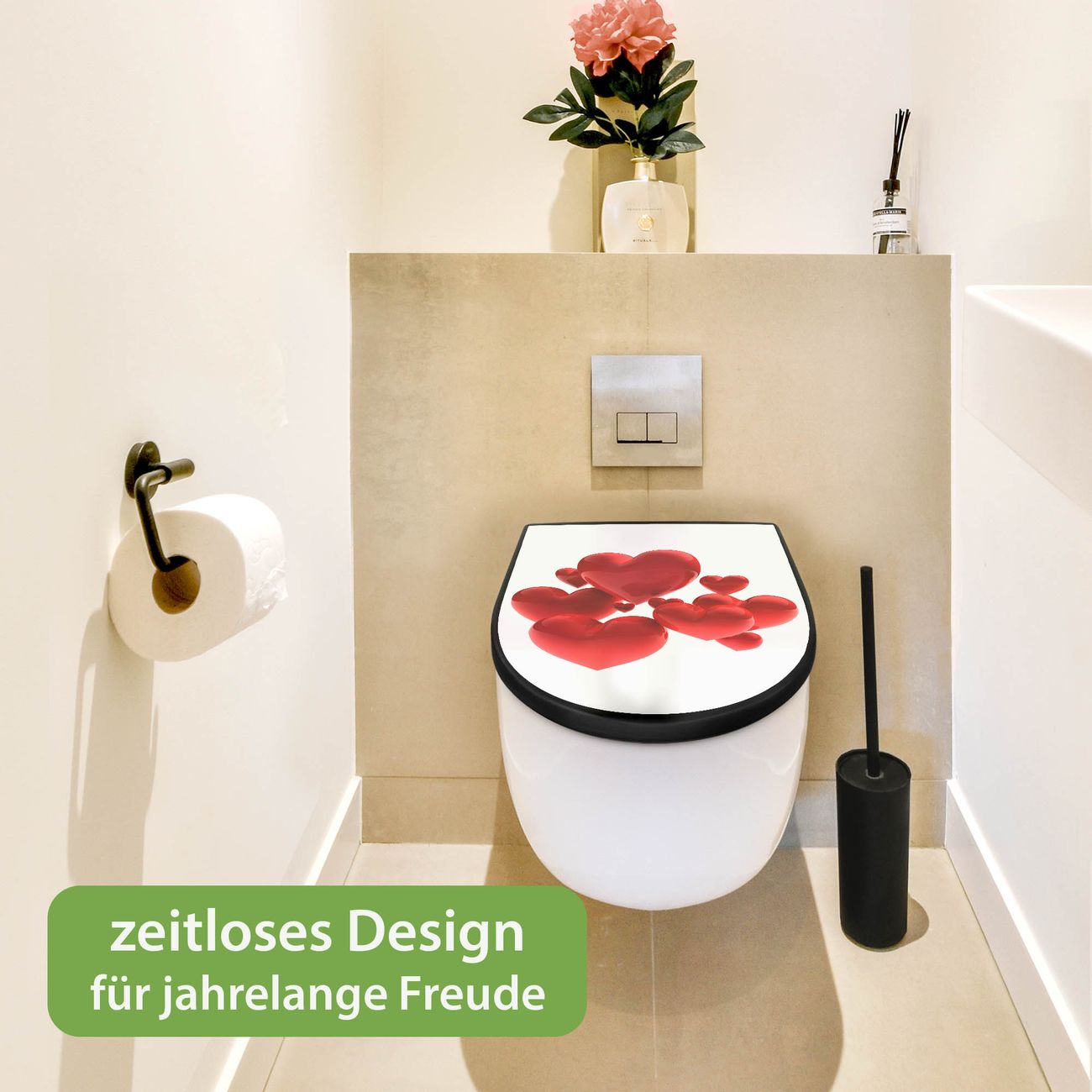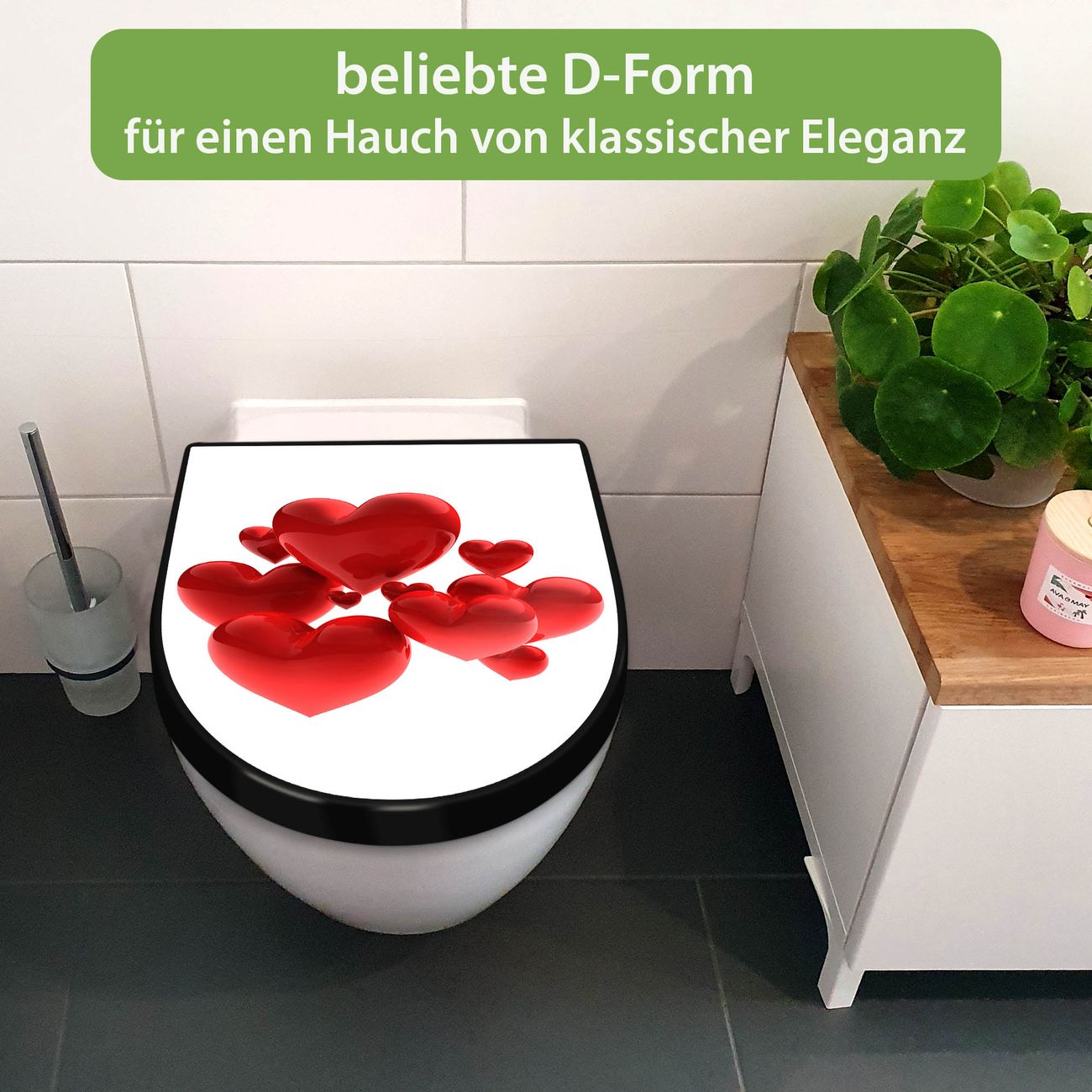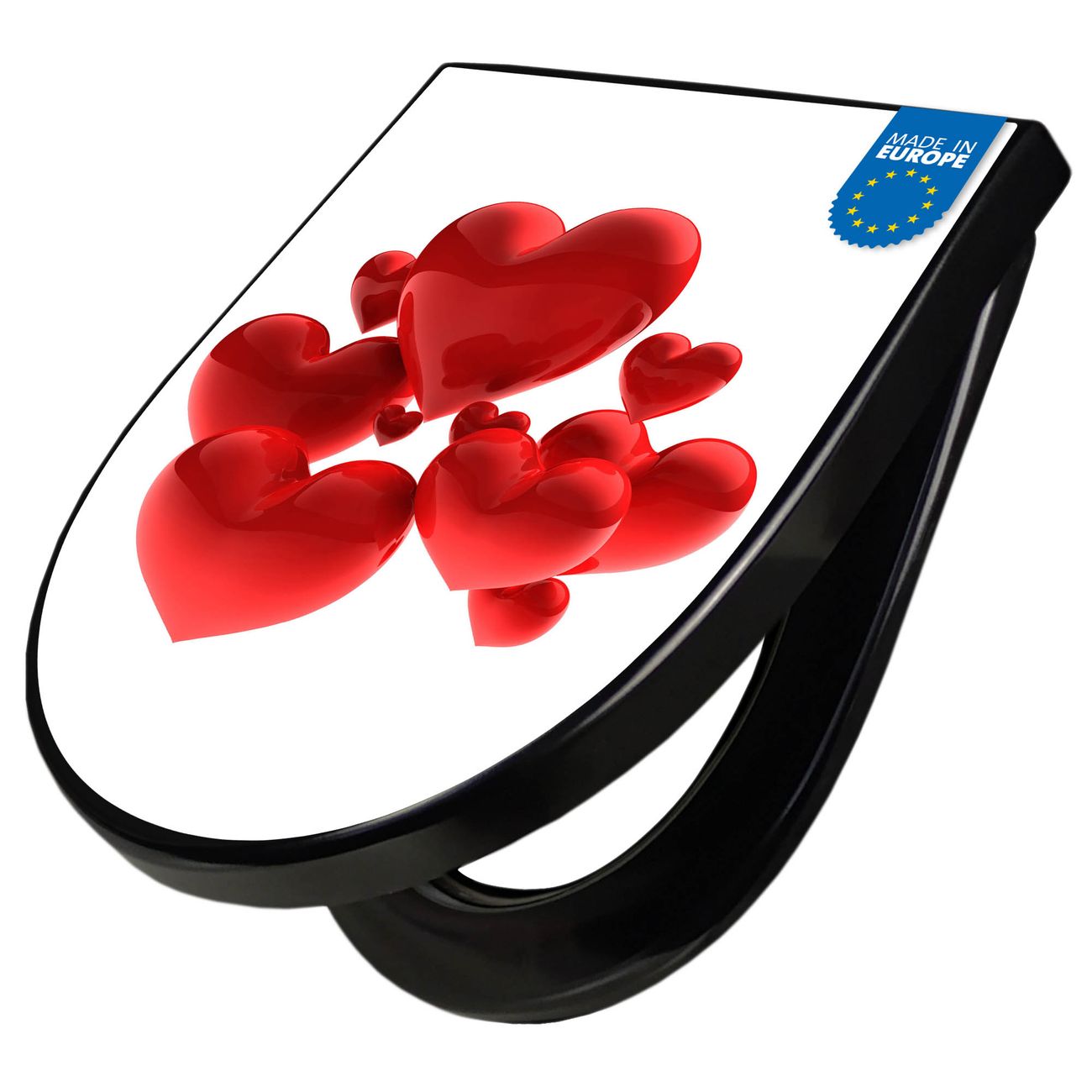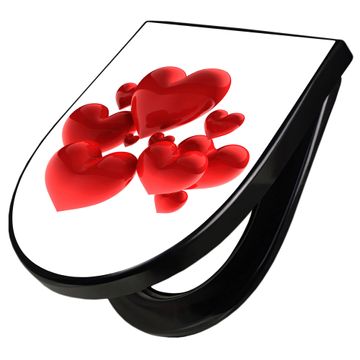 WC Sitz D-Form Schwarz mit Absenkautomatik Motiv Fliegende Herzen