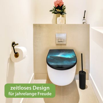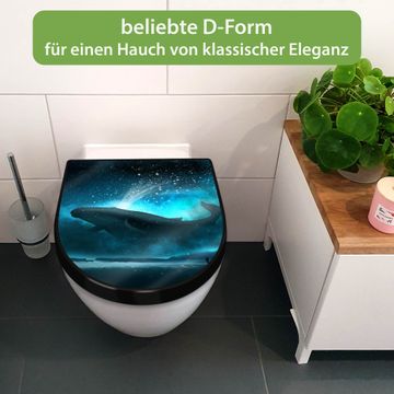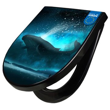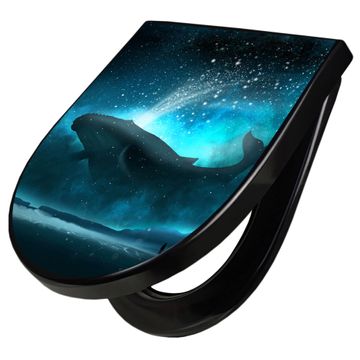 WC Sitz D-Form Schwarz mit Absenkautomatik Motiv fliegender Wal