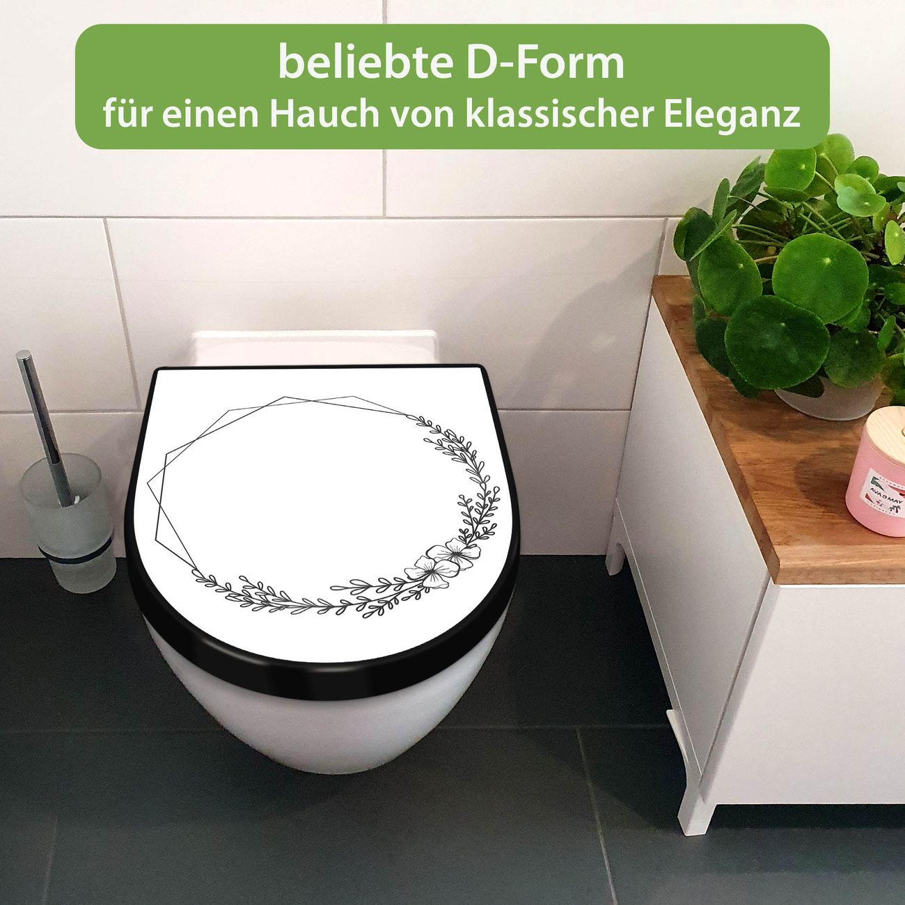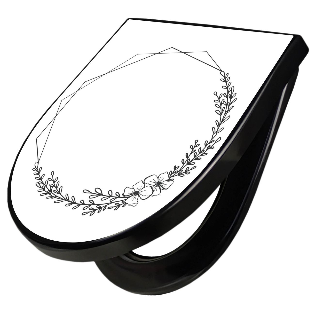 WC Sitz D-Form Schwarz mit Absenkautomatik Motiv Floral Geometric Frame