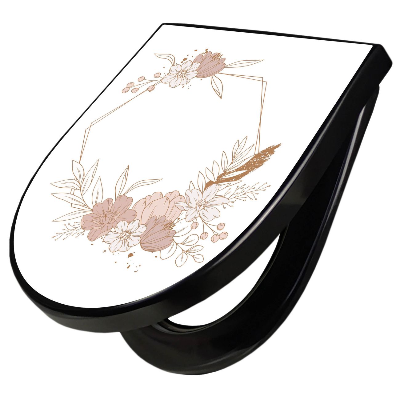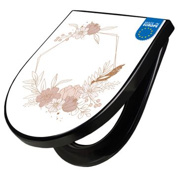 WC Sitz D-Form Schwarz mit Absenkautomatik Motiv Floral Geometrie