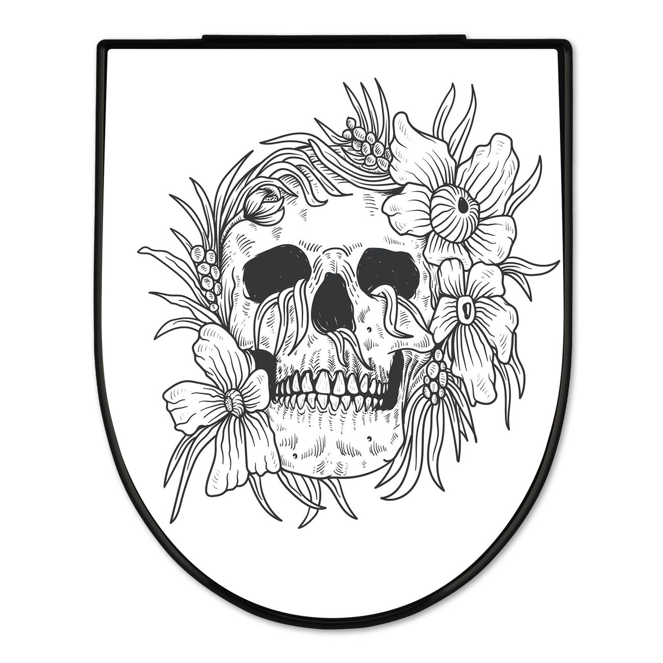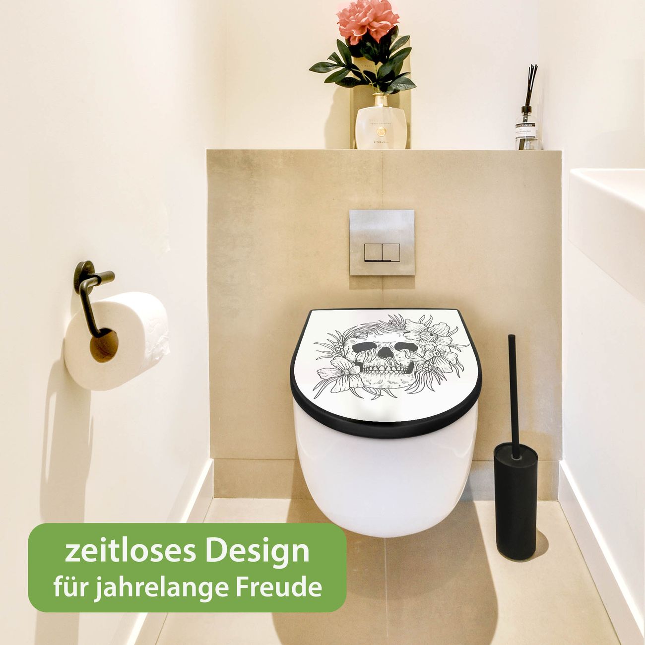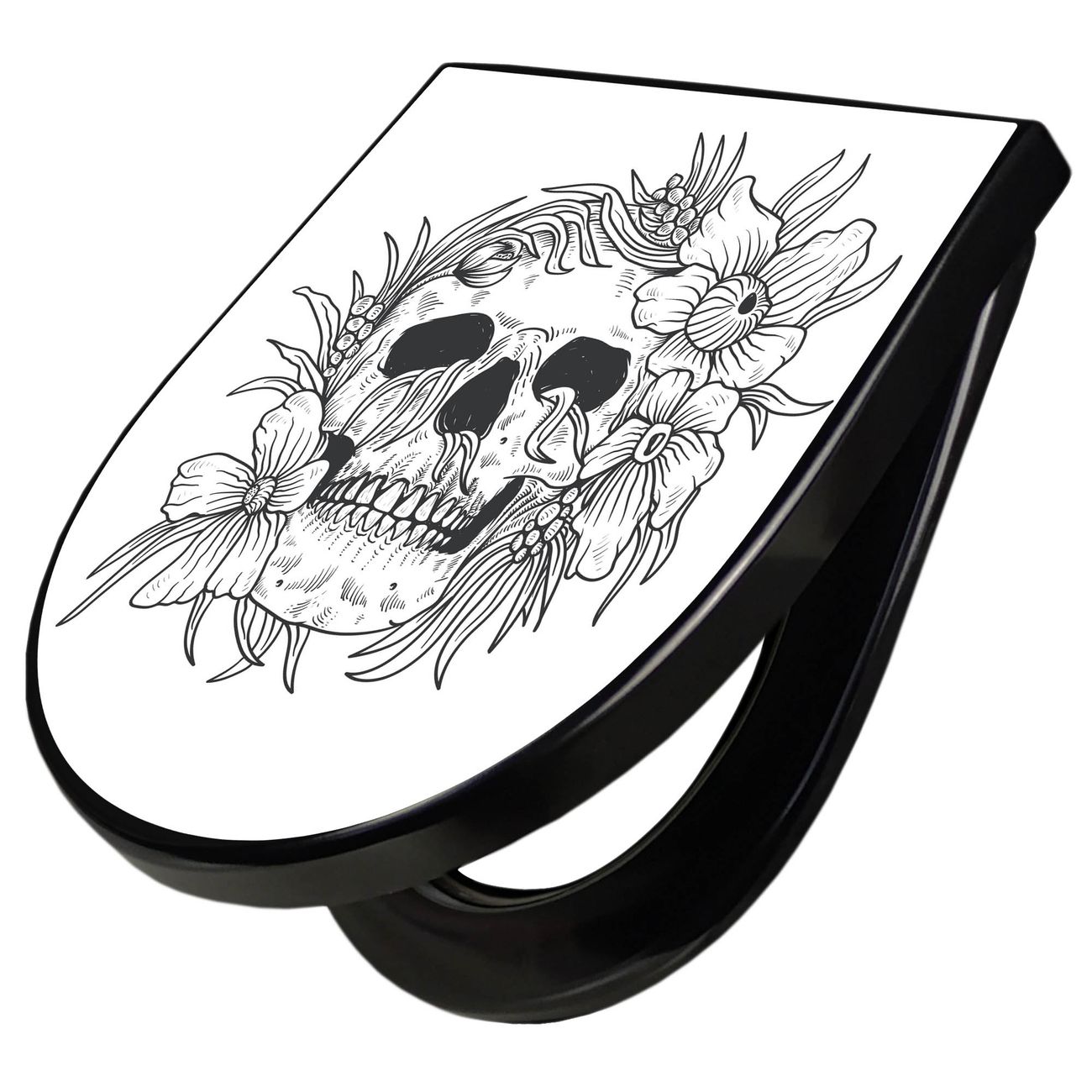 WC Sitz D-Form Schwarz mit Absenkautomatik Motiv Floral Skull 2