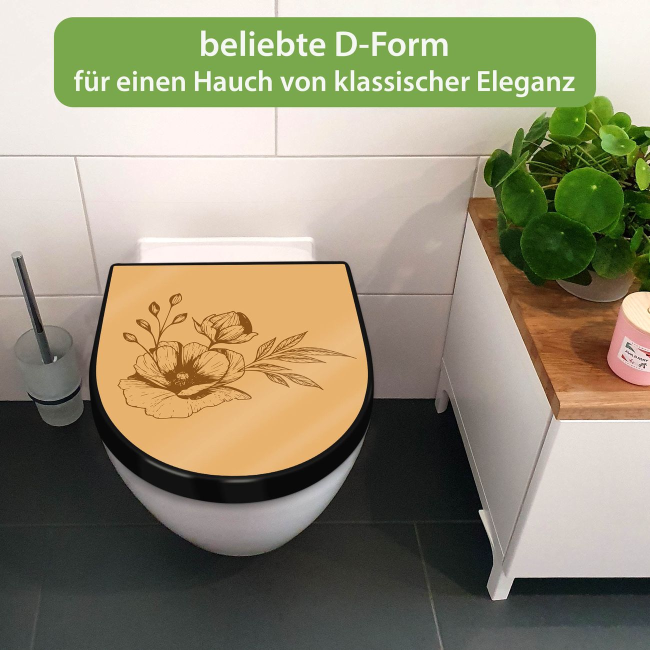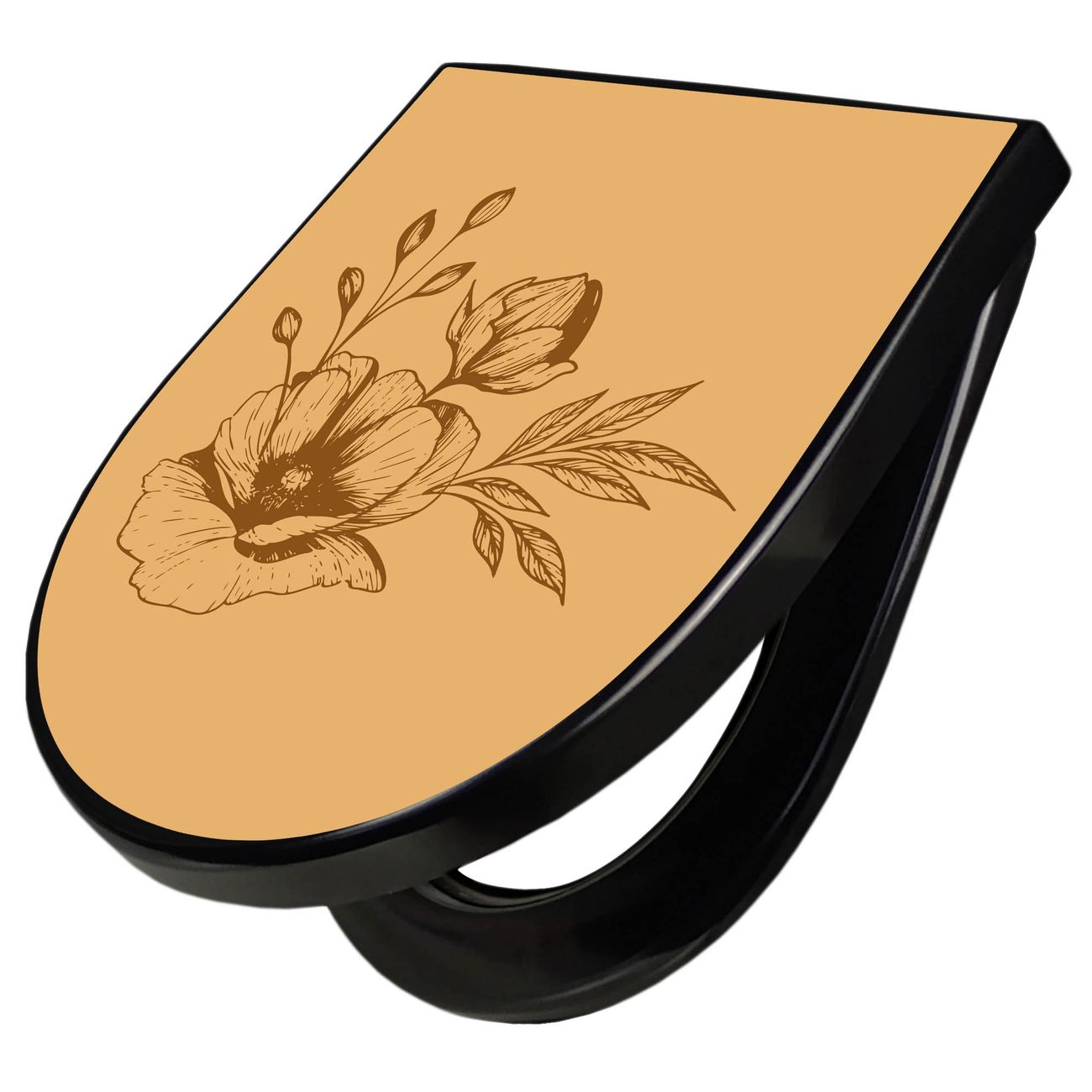 WC Sitz D-Form Schwarz mit Absenkautomatik Motiv Florale Eleganz 2