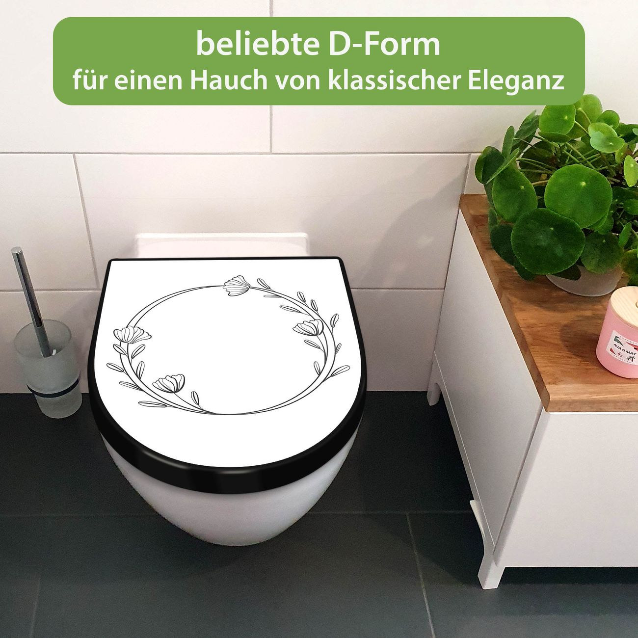 WC Sitz D-Form Schwarz mit Absenkautomatik Motiv Florale Eleganz 3