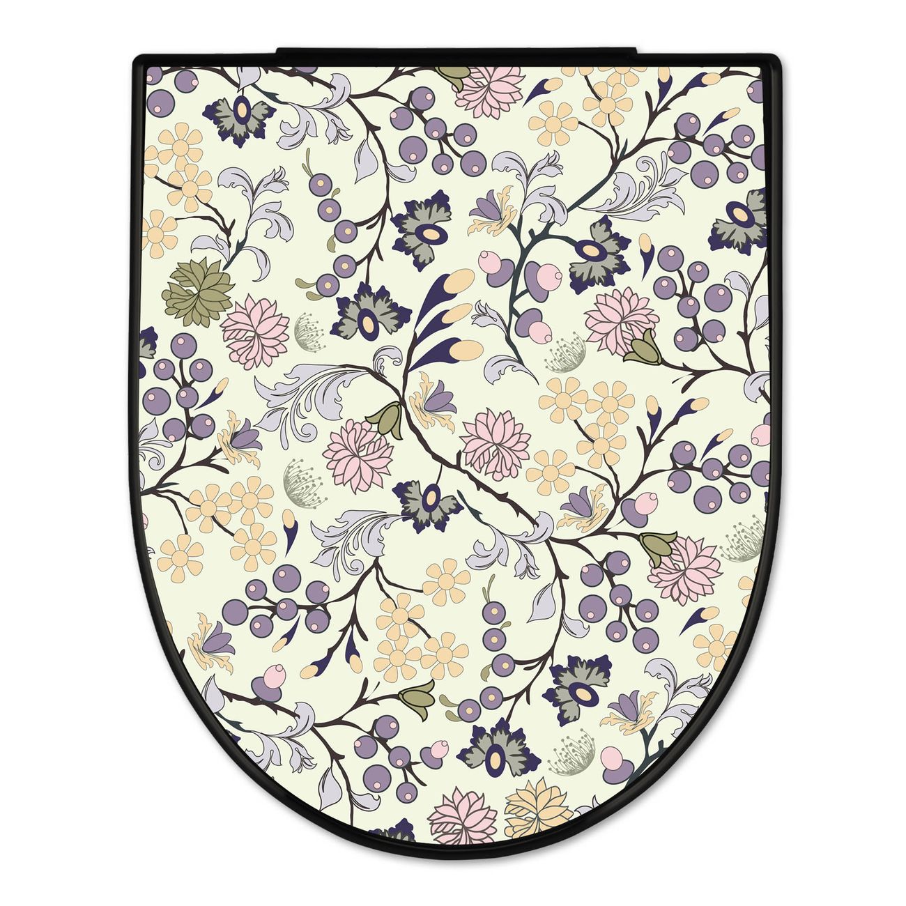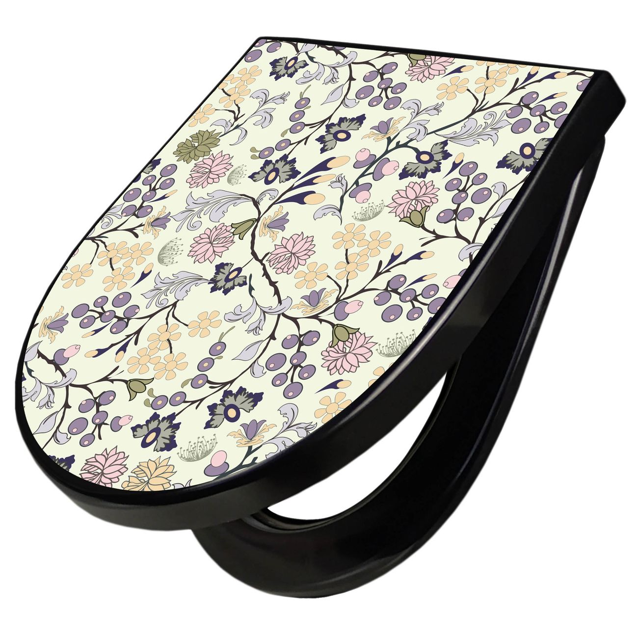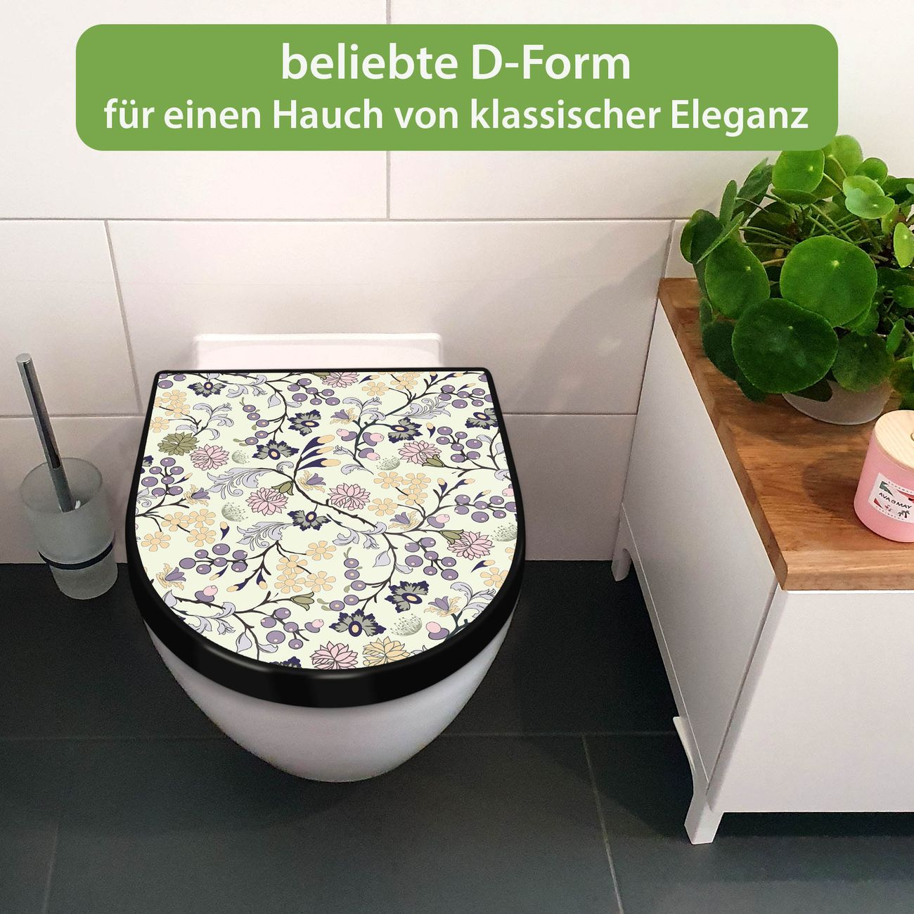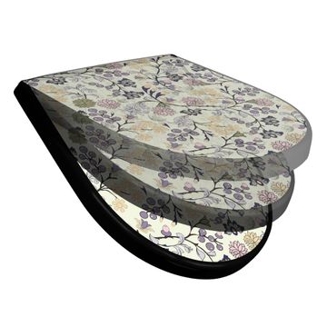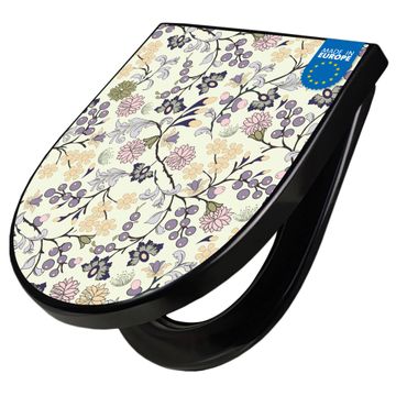 WC Sitz D-Form Schwarz mit Absenkautomatik Motiv Florale Tapete