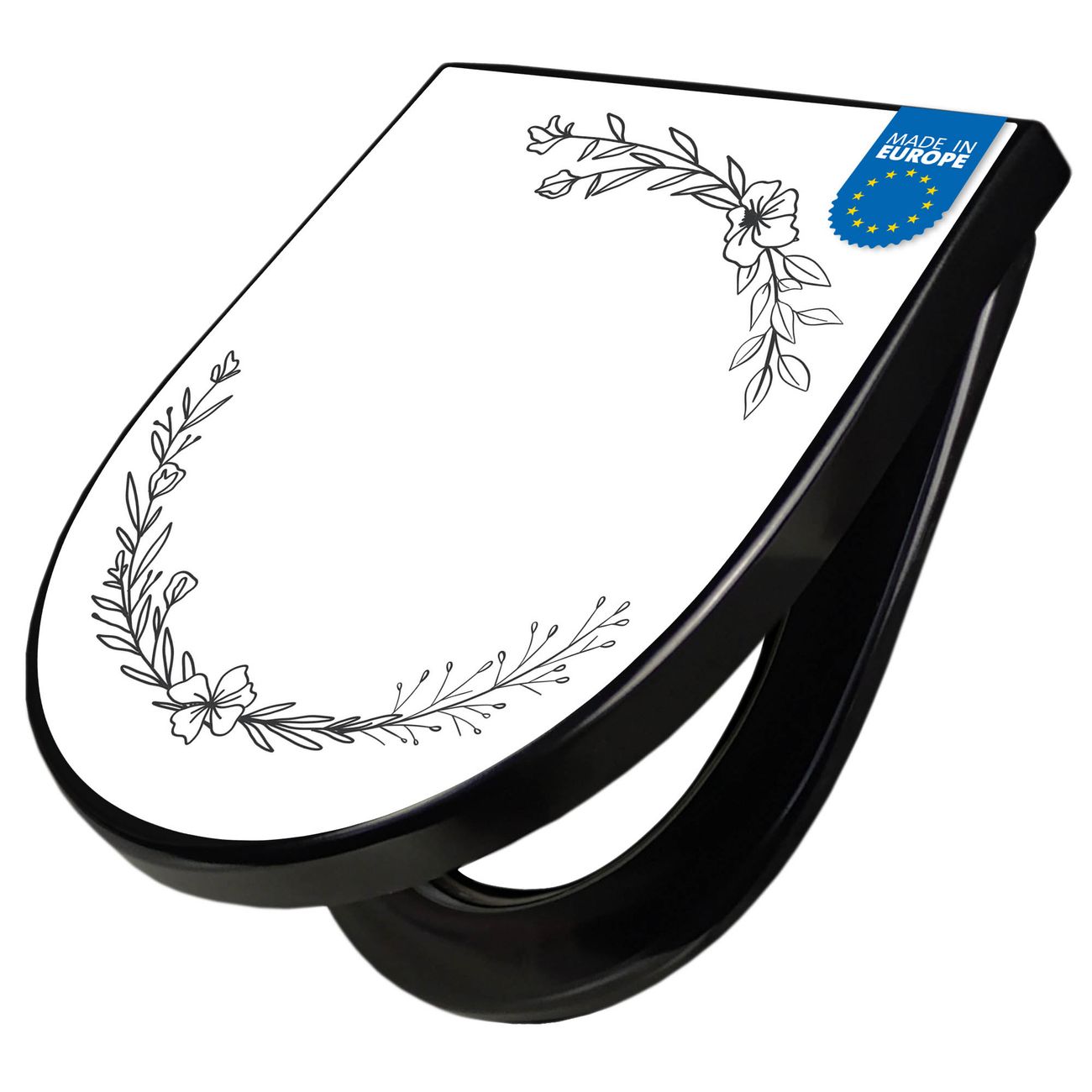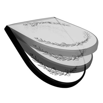 WC Sitz D-Form Schwarz mit Absenkautomatik Motiv Floraler Linienkranz