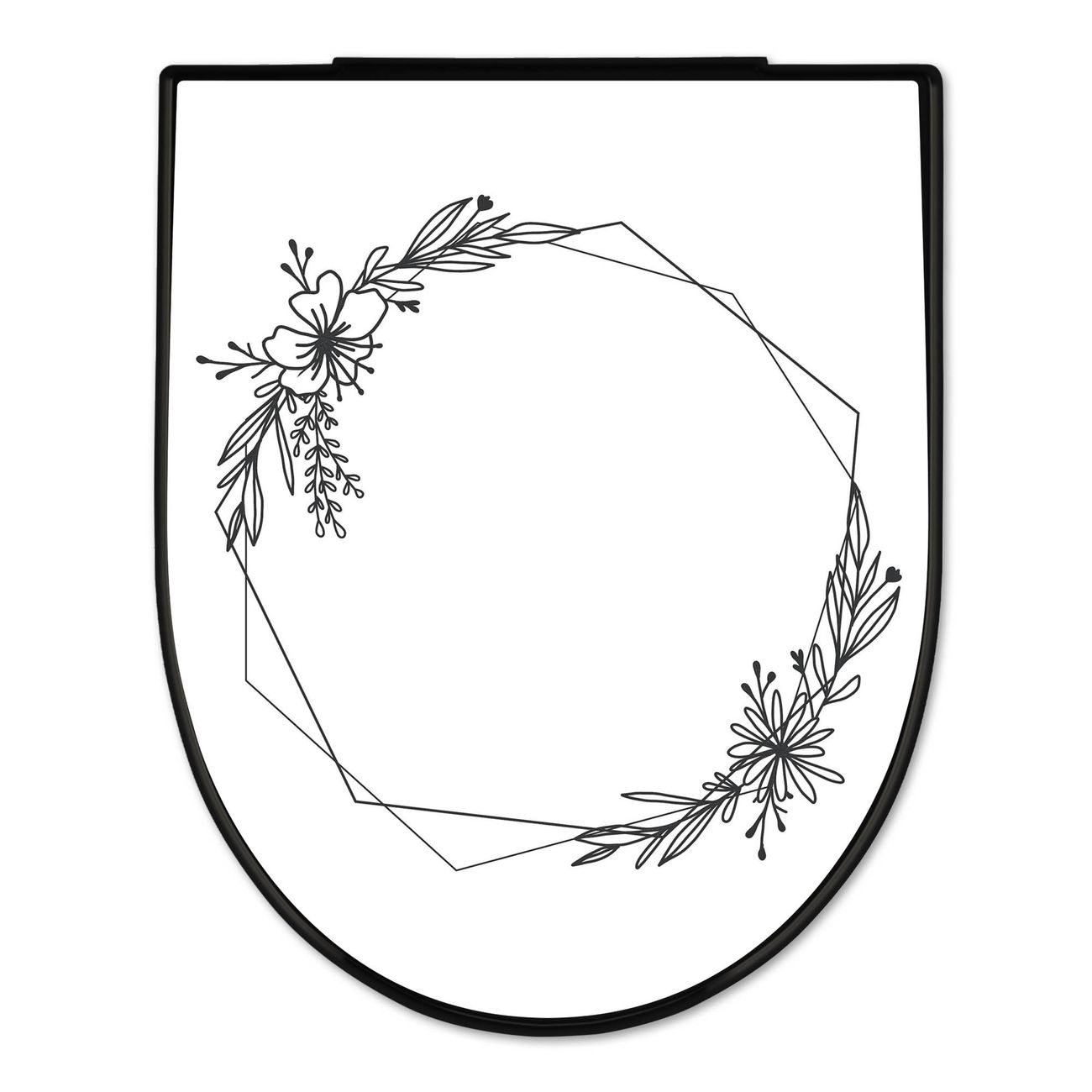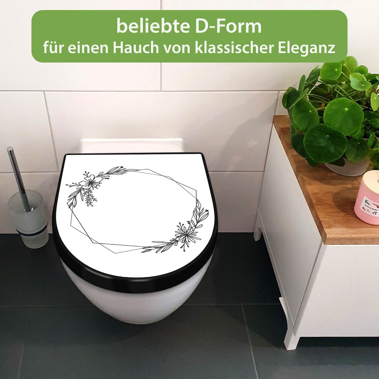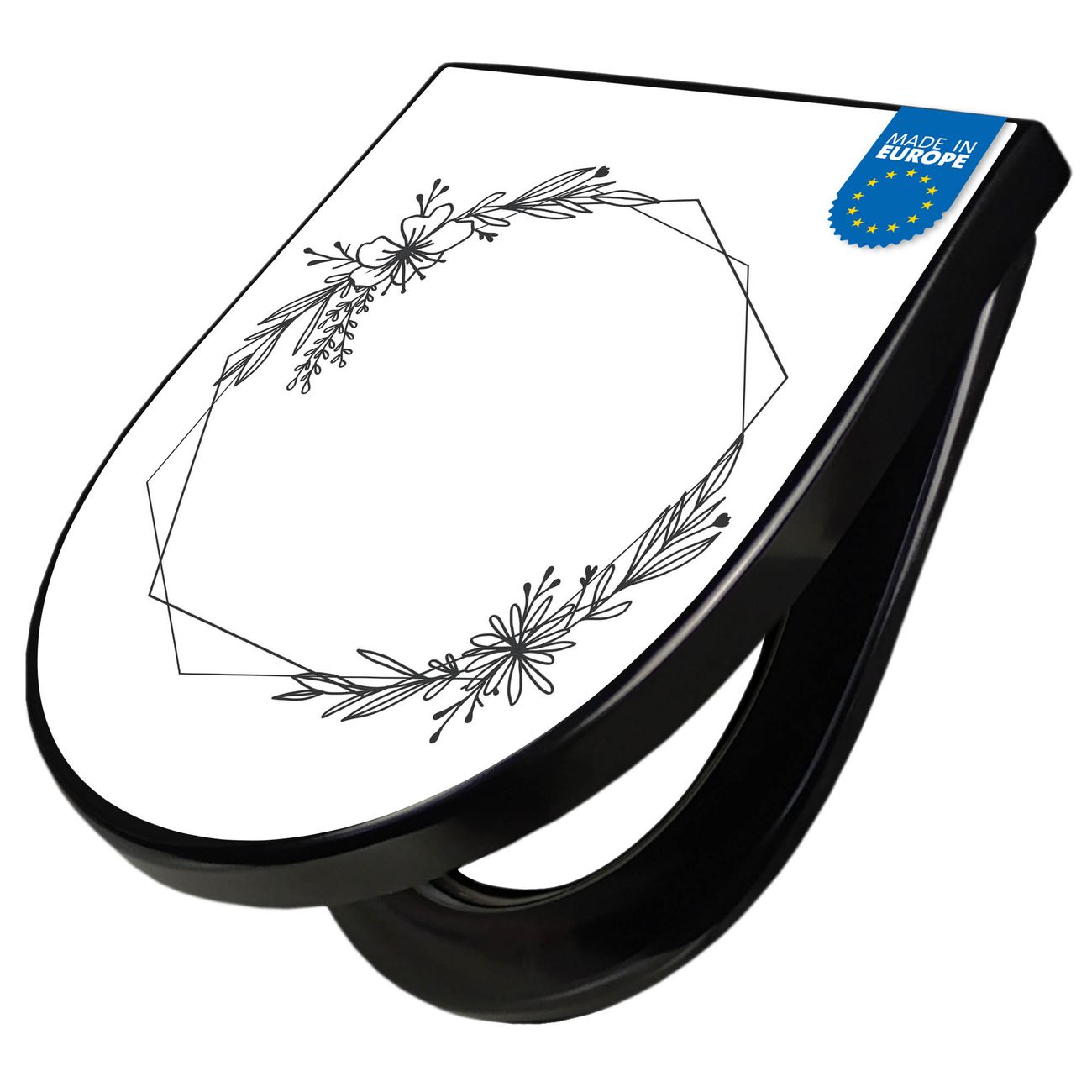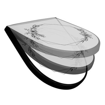 WC Sitz D-Form Schwarz mit Absenkautomatik Motiv Floraler Rahmen
