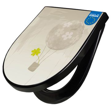 WC Sitz D-Form Schwarz mit Absenkautomatik Motiv Flüchtiges Glück