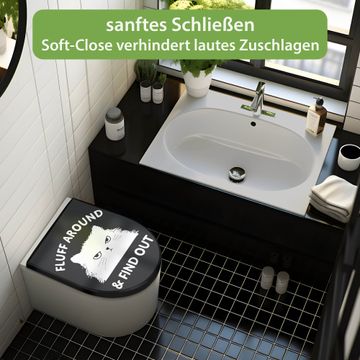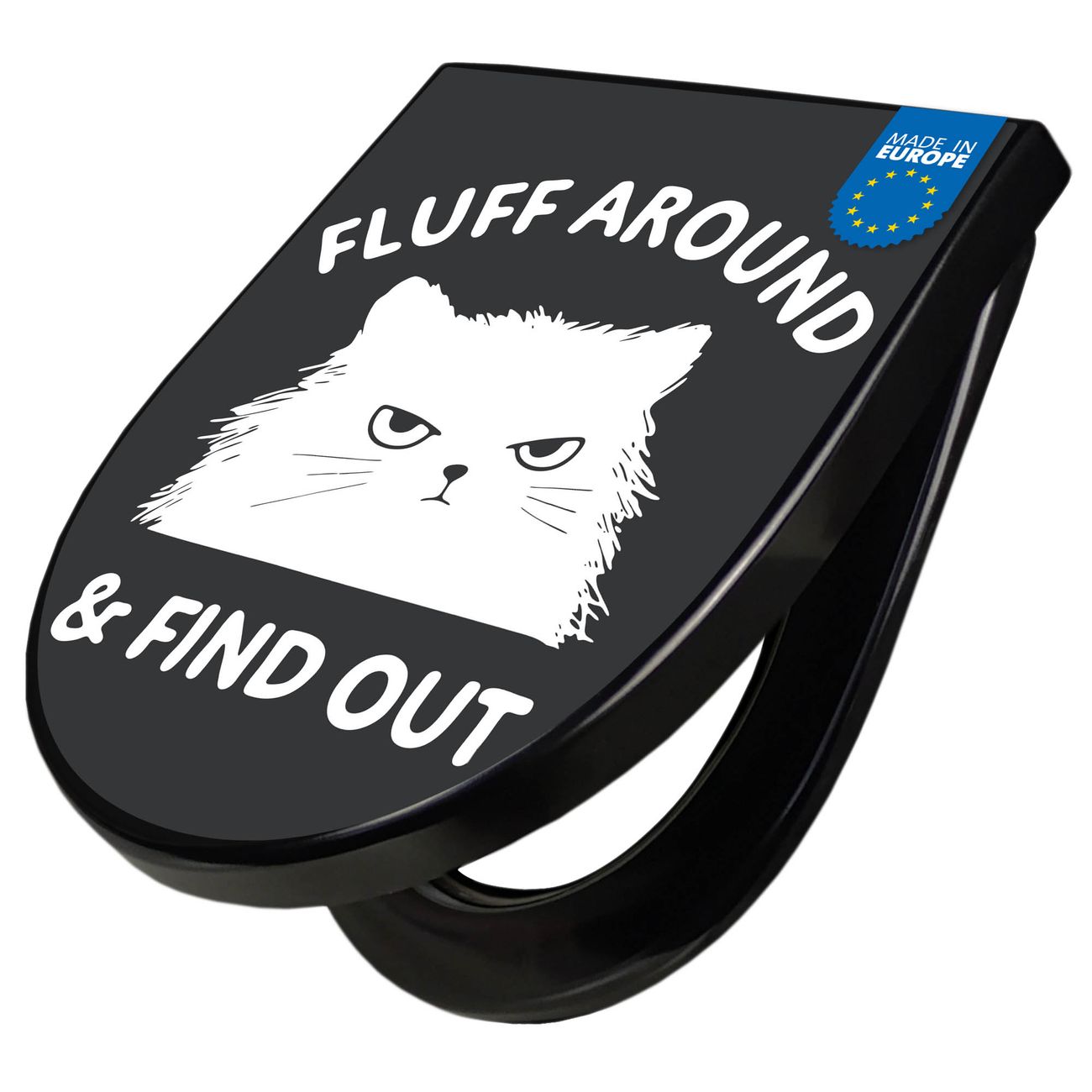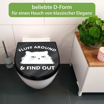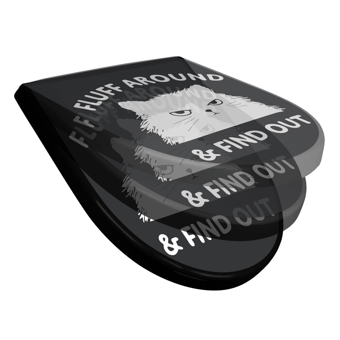 WC Sitz D-Form Schwarz mit Absenkautomatik Motiv Fluff Around Cat