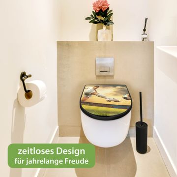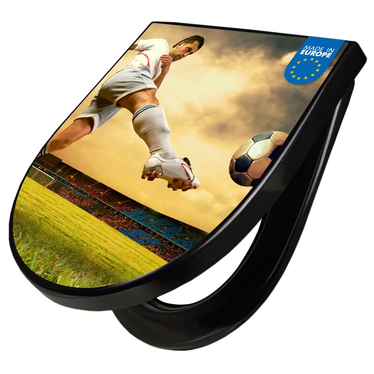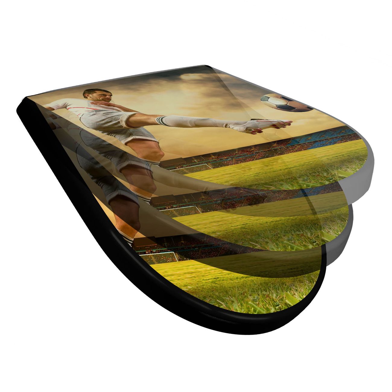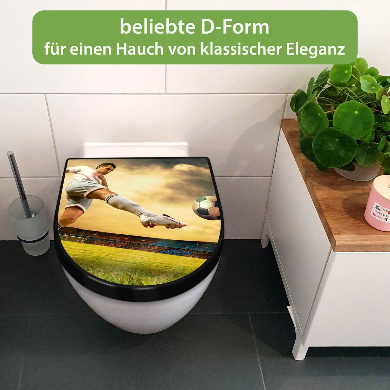 WC Sitz D-Form Schwarz mit Absenkautomatik Motiv Football