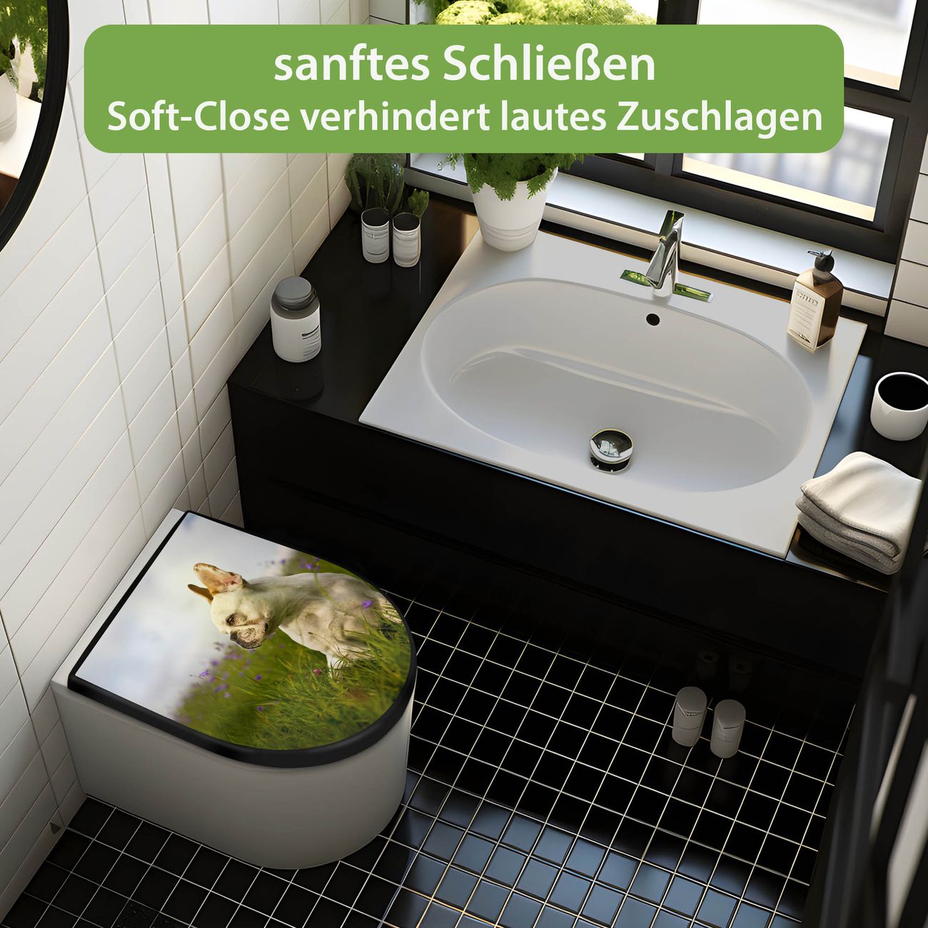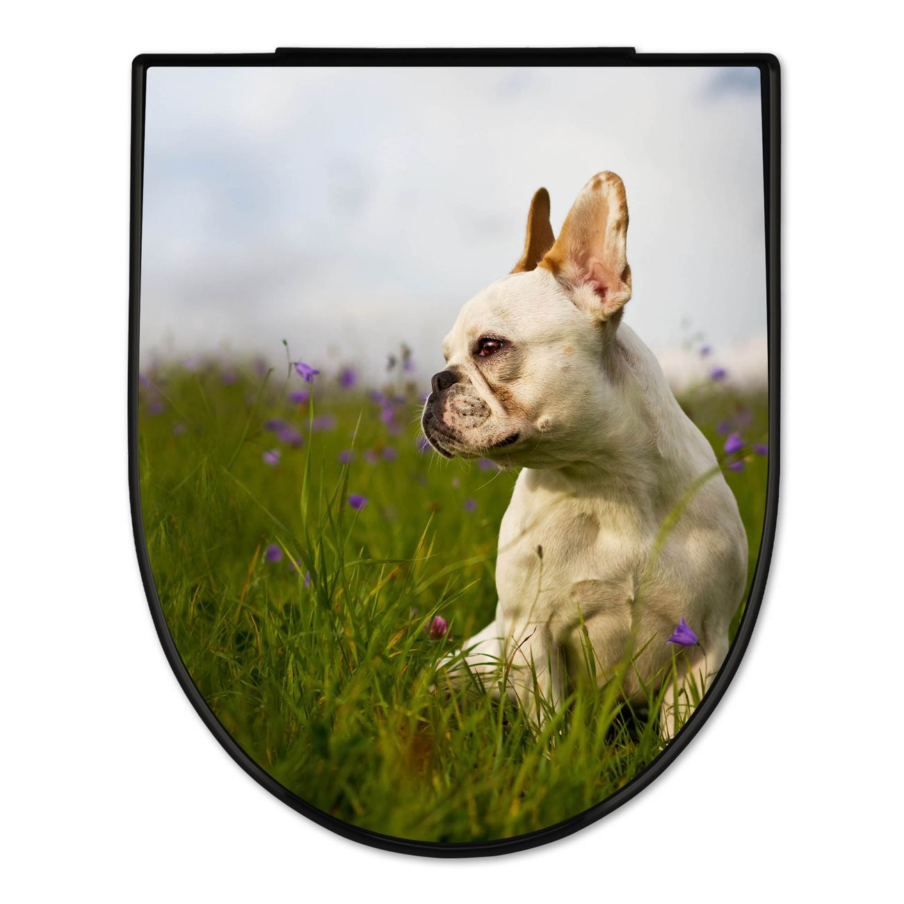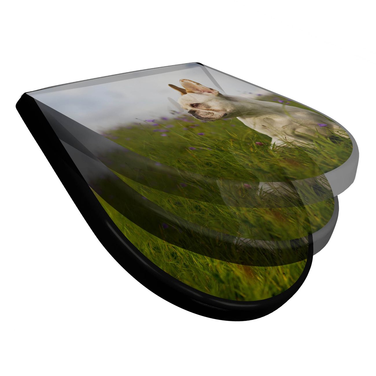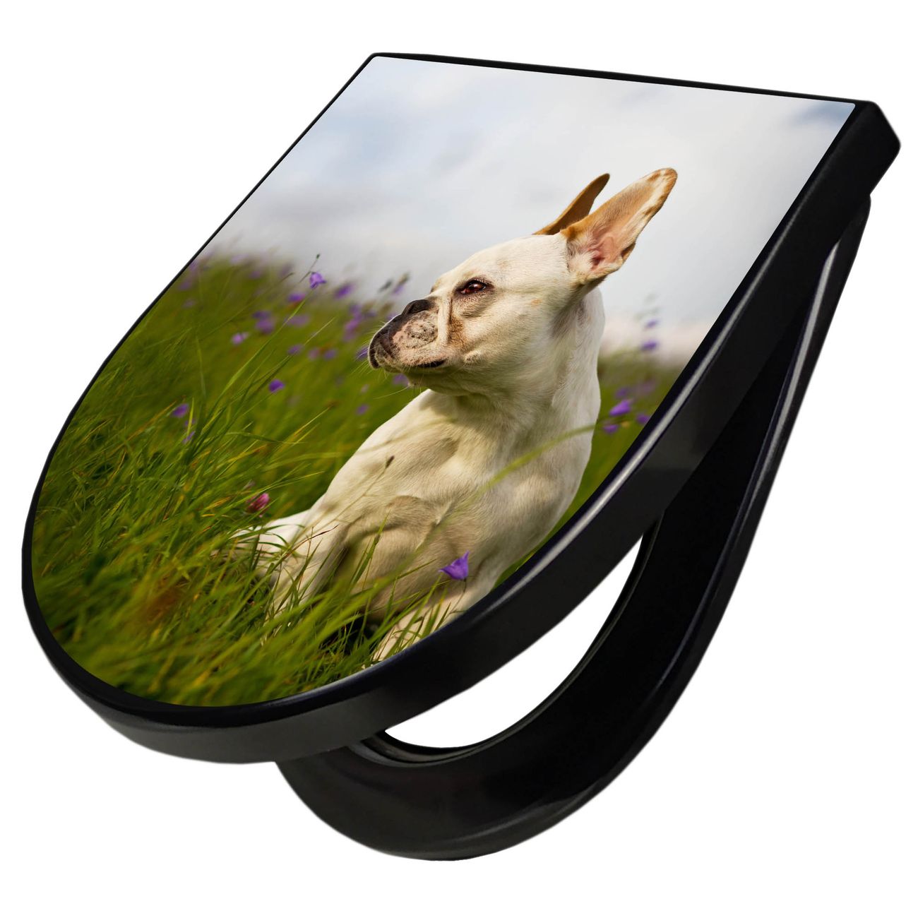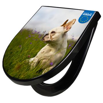 WC Sitz D-Form Schwarz mit Absenkautomatik Motiv Französische Bulldogge